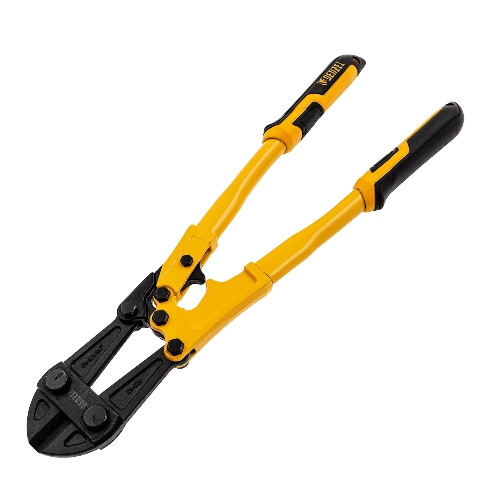 Болторез Denzel 78533 длиной 350 мм (14 дюймов), из стали Cr-Mo, предназначен для перекусывания стальных прутков диаметром 6,4 мм, болтов и шурупов, тросов, разнородной проволоки.