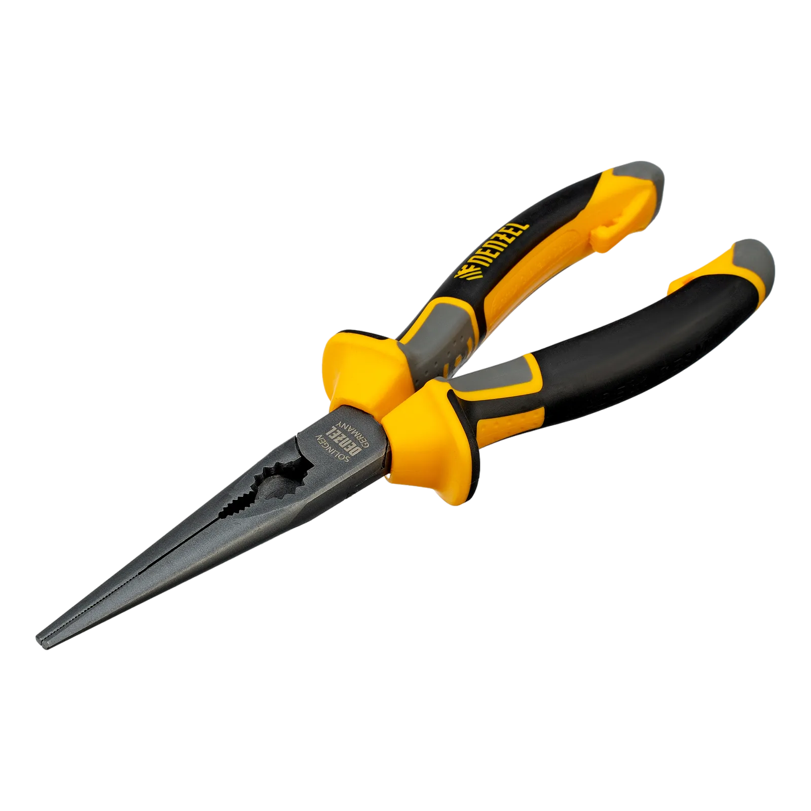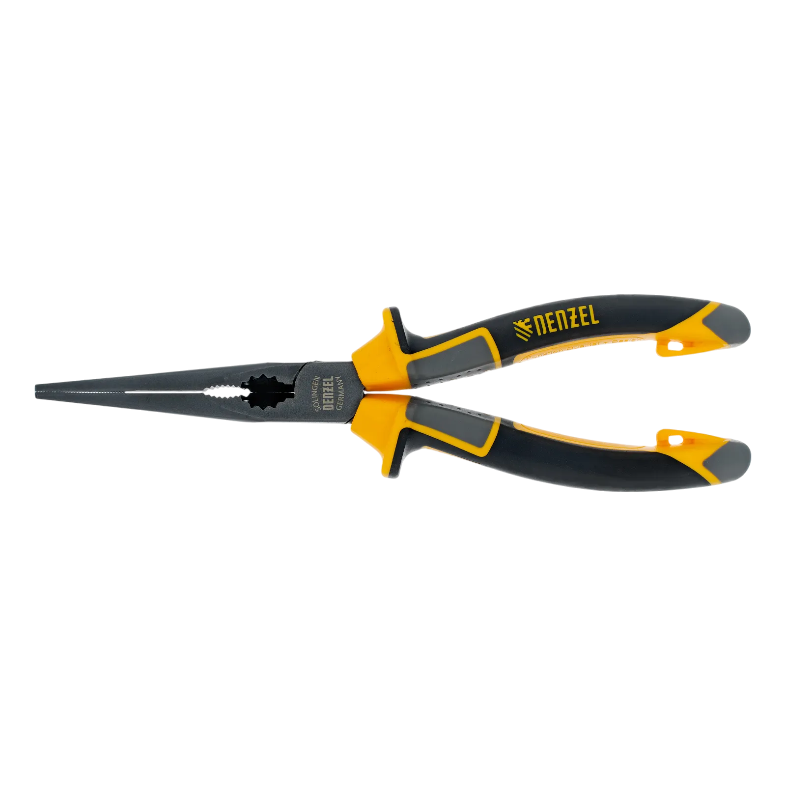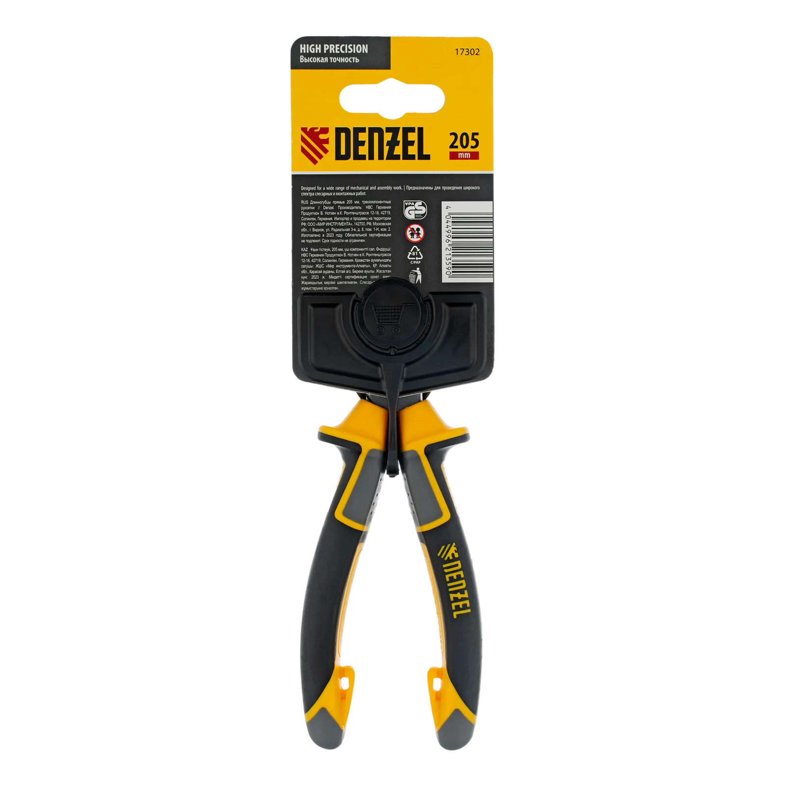 Прямые длинногубцы Denzel 17302 длиной 205 мм, с трехкомпонентными рукоятками, используются для работы с мелкими деталями и крепежом. Позволяют удерживать, сгибать и перекусывать провода или проволоку. Максимальный диаметр перерезаемой мягкой проволоки (алюминиевой, медной, с пределом прочности 220 Н/мм2) составляет 3,9 мм, проволоки средней жесткости и гвоздей (750 Н/мм2) — 3,2 мм, жесткой (1800 Н/мм2) — 2,2 мм. Инструмент оптимален для манипуляций в ограниченном пространстве. Ровные насечки на зажимных частях обеспечивают надежный захват и удержание деталей. Длинногубцы будут полезны во время проведения электромонтажных работ, ремонта оргтехники, техобслуживания автомобиля, пригодятся также в быту.
