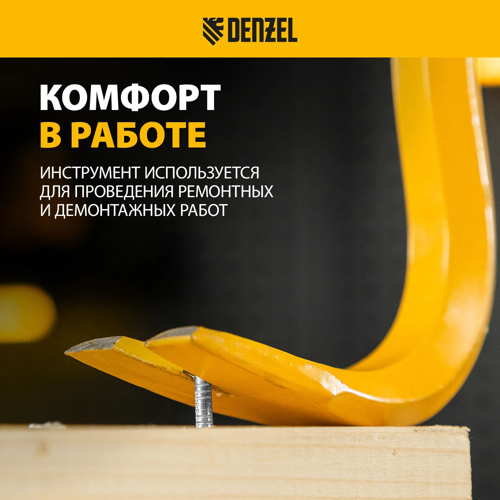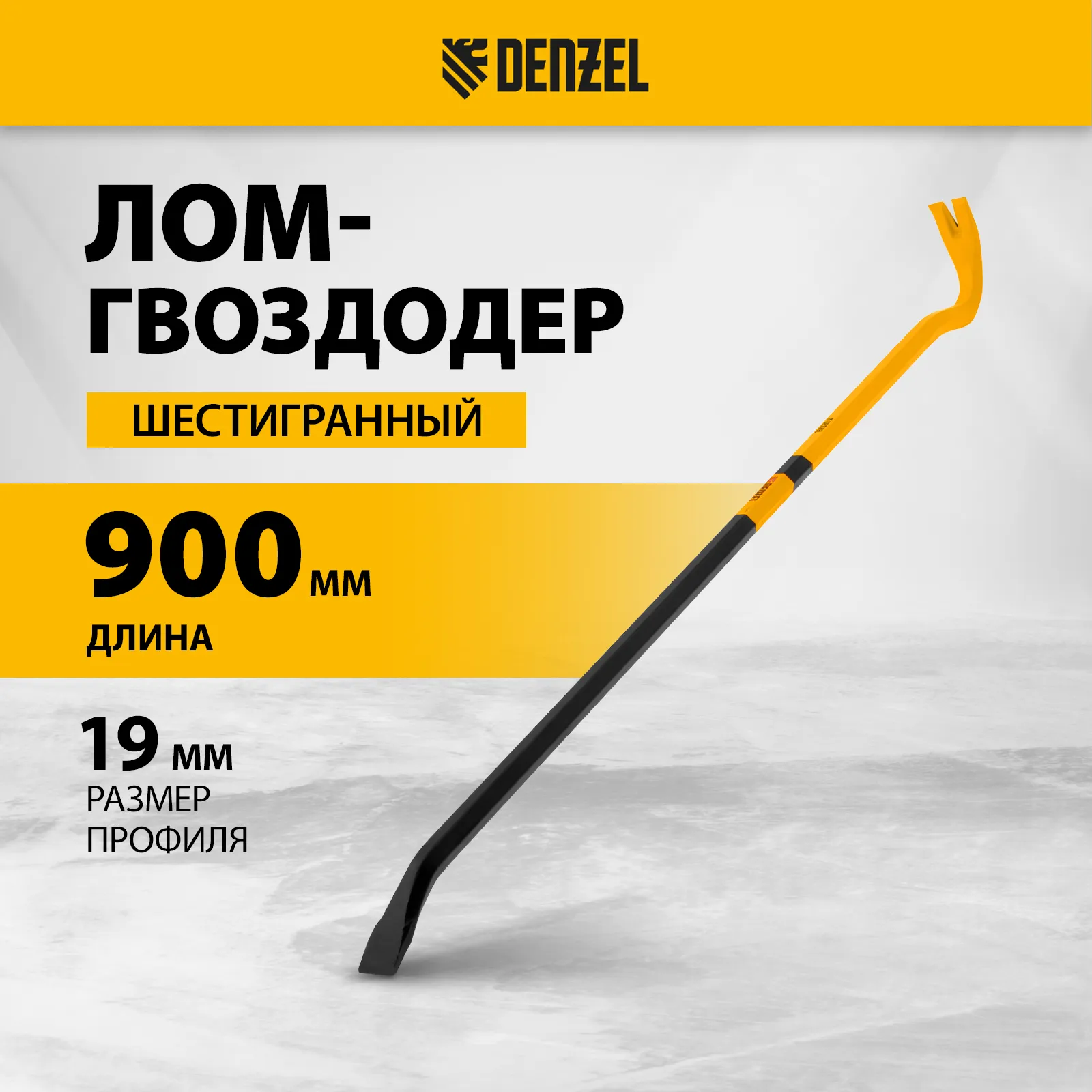 Лом-гвоздодер Denzel 25204 из стали 65, длиной 900 мм, с шестигранным профилем шириной 19 мм и окрашенной поверхностью, предназначен для извлечения гвоздей и разрушения различных конструкций. Изготовлен из проката шестигранного сечения и выдерживает повышенные нагрузки. Используется для проведения строительных и демонтажных работ.