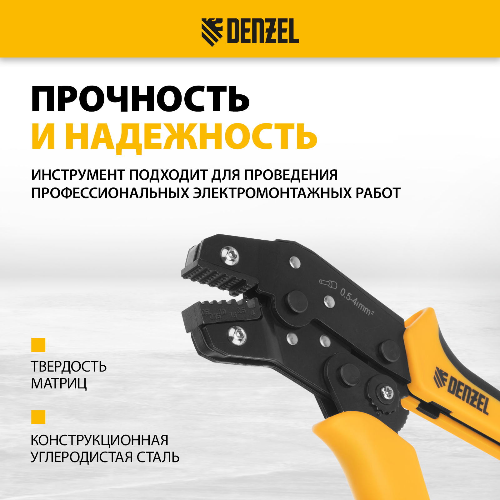 - Долговечность — инструмент выполнен из конструкционной углеродистой стали, матрица для обжима (губки) закалена до твердости 450-600 HV.