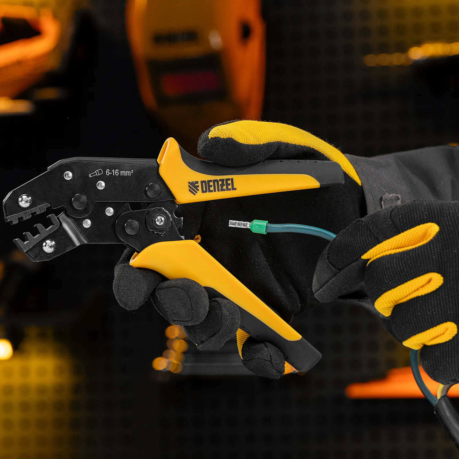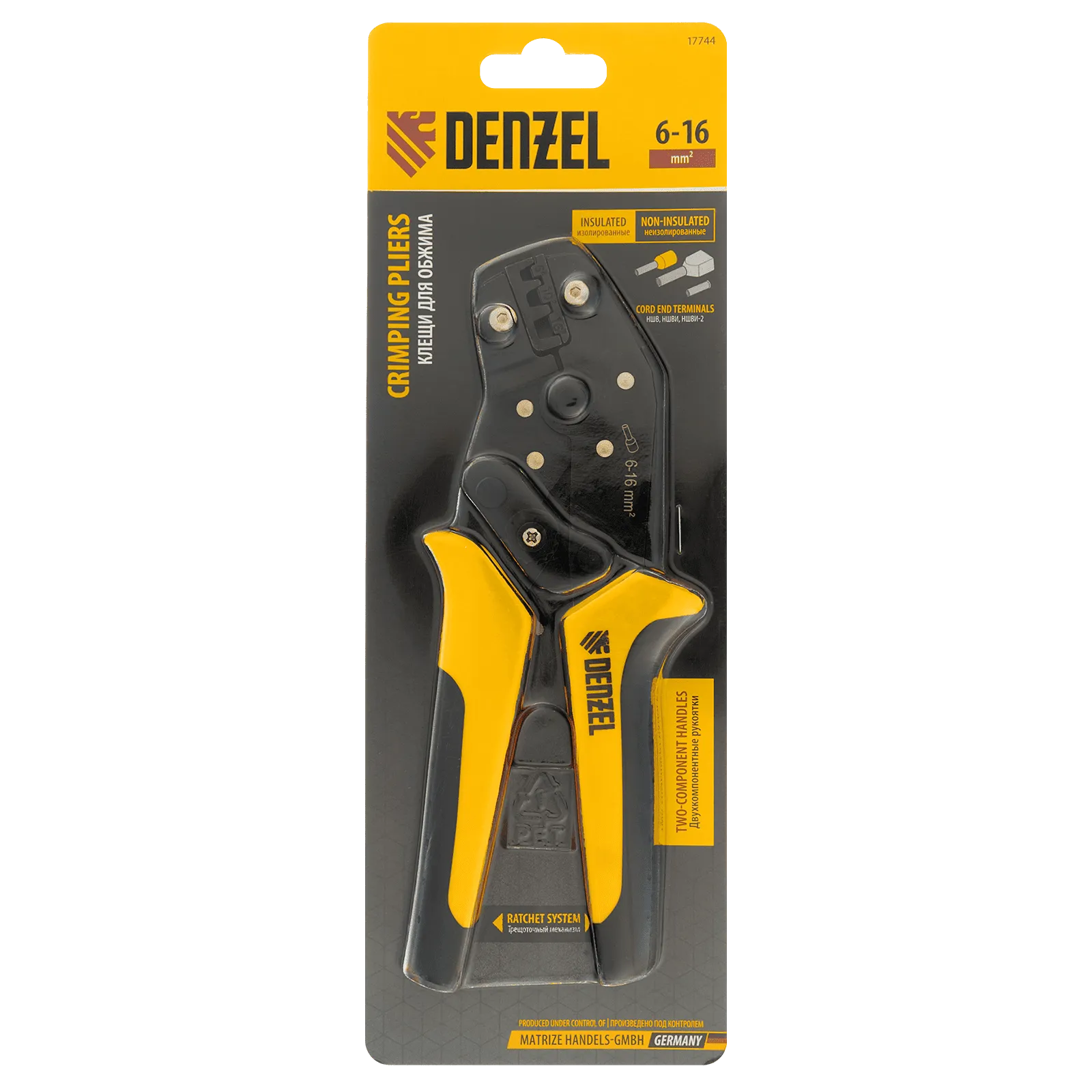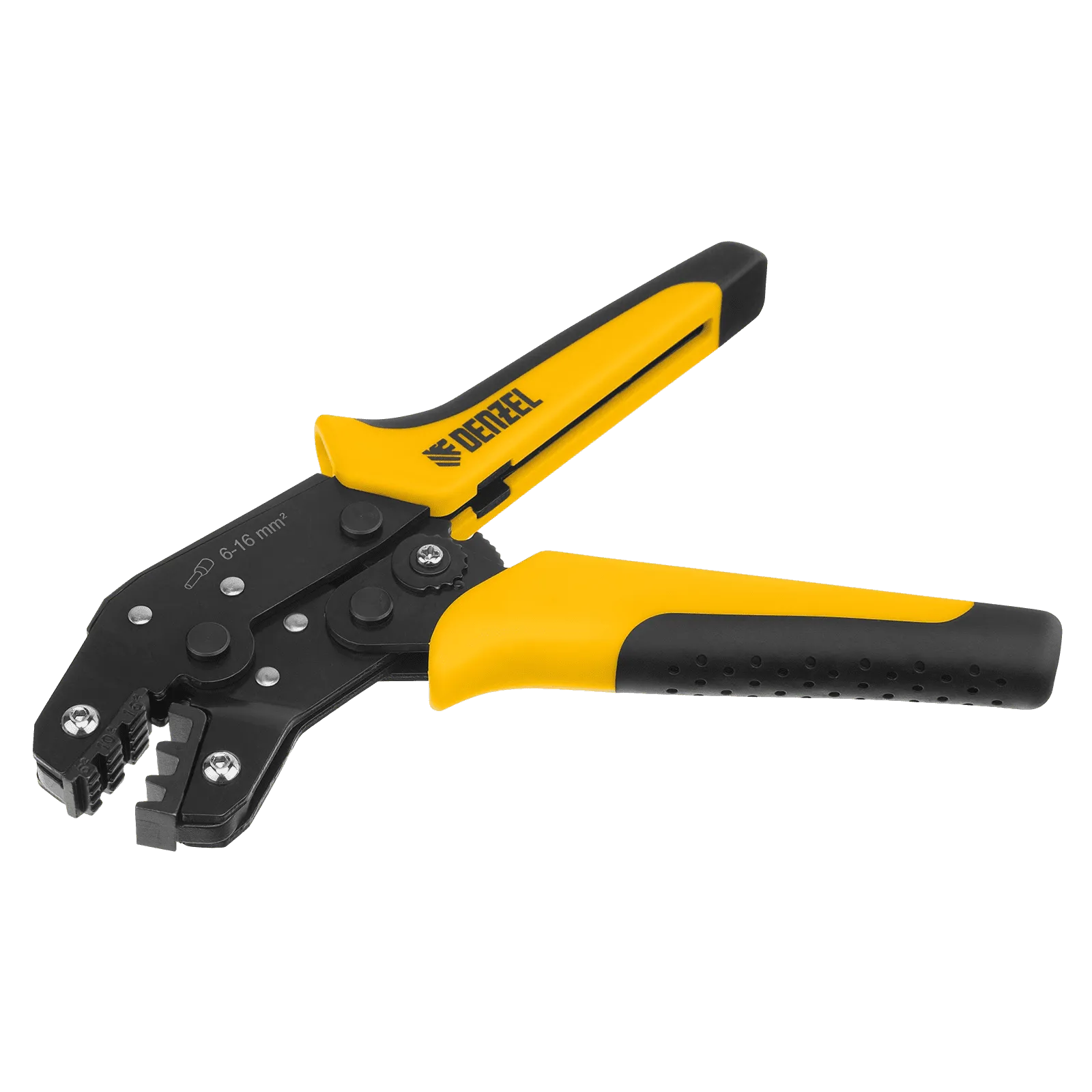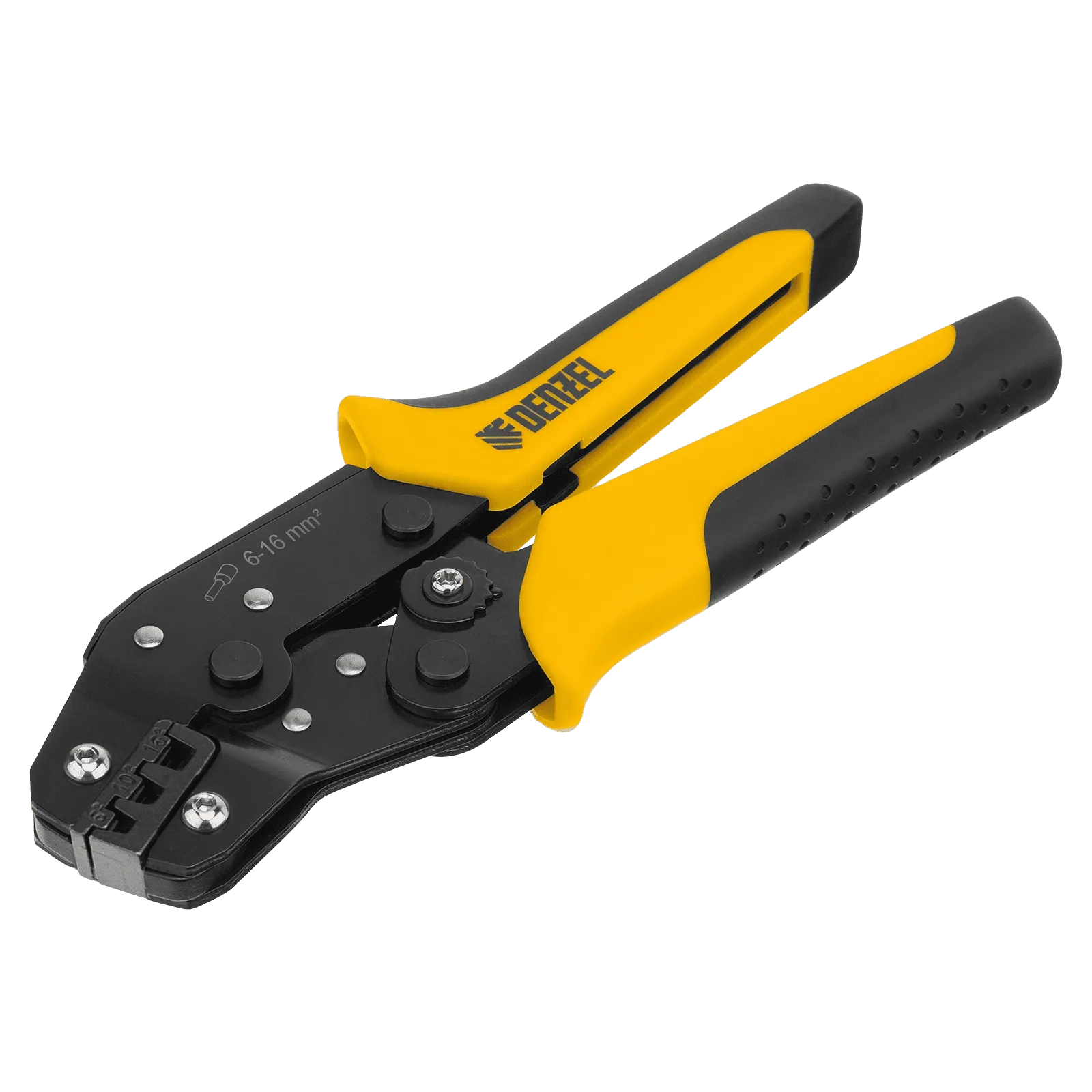 Клещи Denzel 17744 предназначены для обжима наконечников штыревых втулочных НШВ, НШВИ, НШВИ-2 сечением 6-16 мм². Двухрычажная передача усилия сжатия позволяет увеличить эффективность работы без дополнительный усилий мастера. Инструмент пригодится частным и профессиональным мастерам при проведении электромонтажных работ.