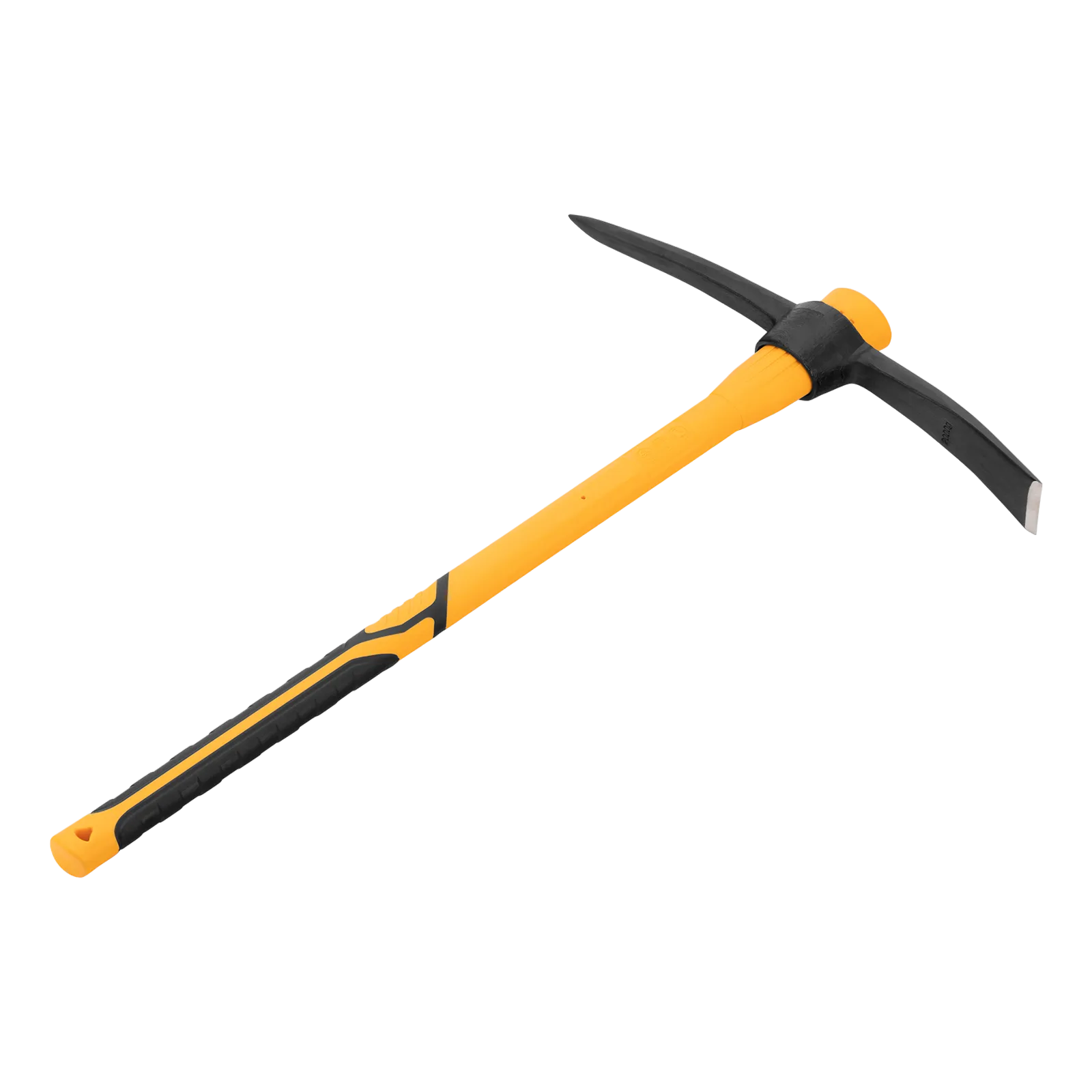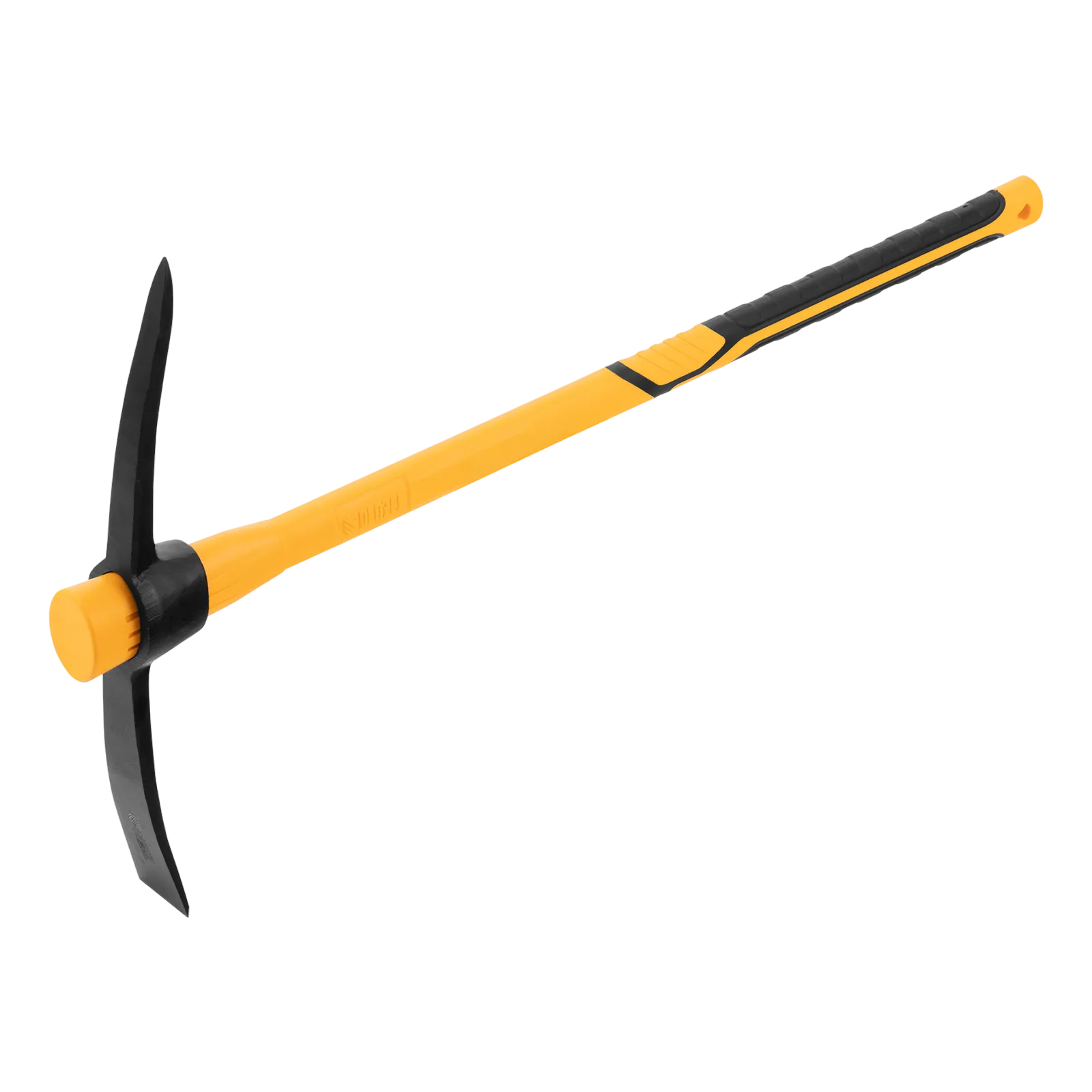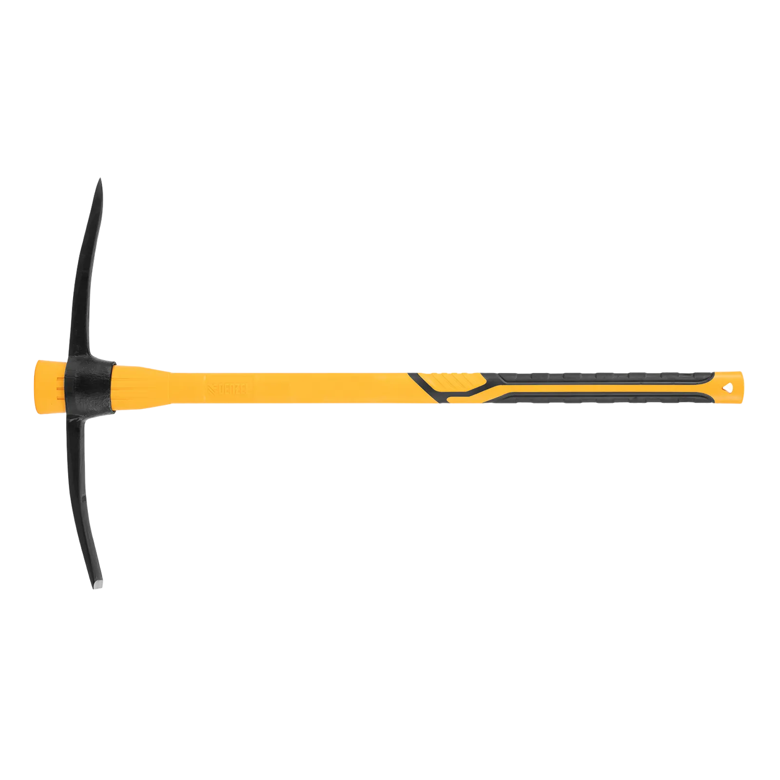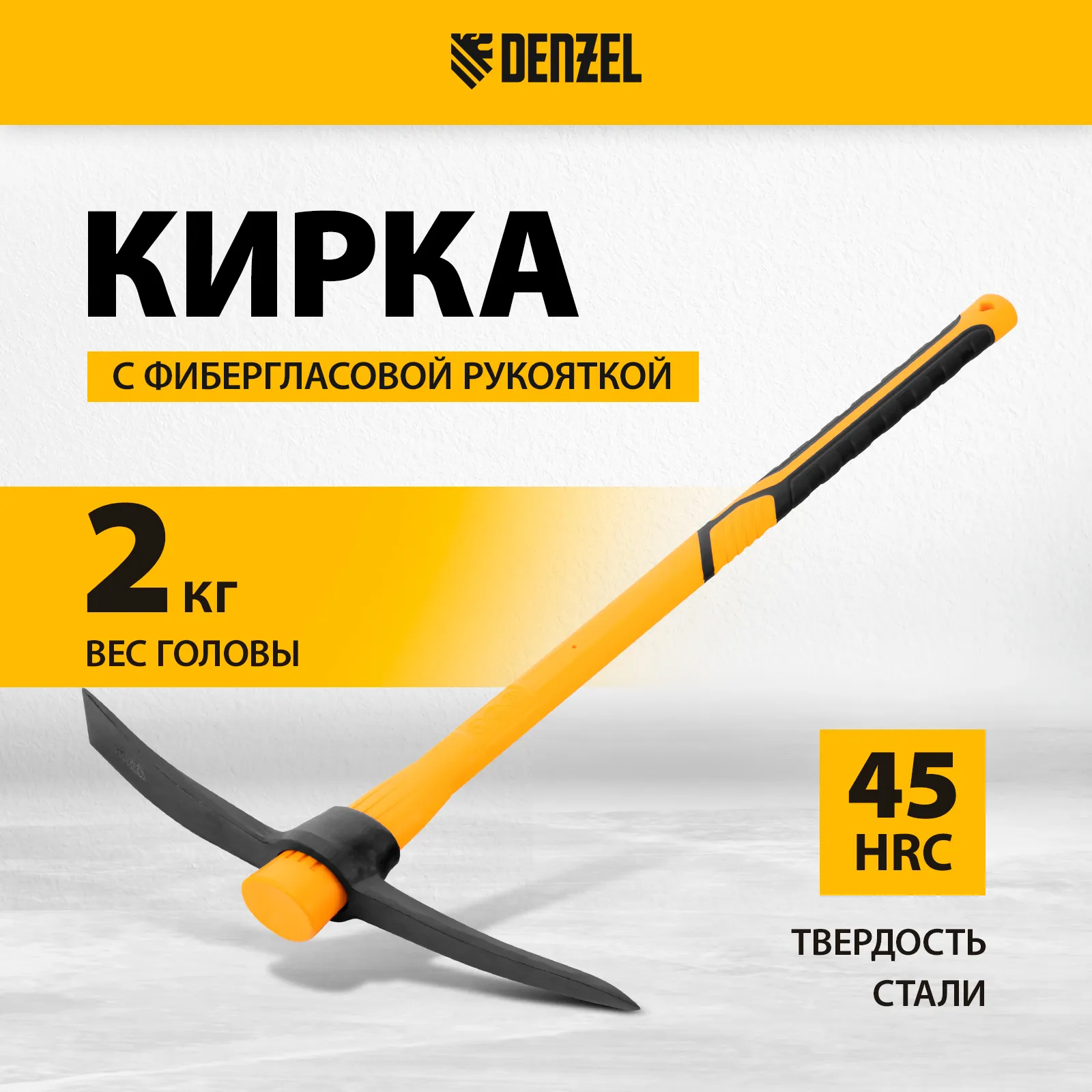 Кирка Denzel 21835 длиной 900 мм, с узкой рабочей частью, головой весом 2000 г и фибергласовой обрезиненной рукояткой, предназначена для работы по камню, рыхления каменистого, пересохшего земляного и глиняного грунта. Может использоваться для разрушения старой кирпичной кладки и колки льда. Инструмент будет полезен на строительной площадке и дачном участке.