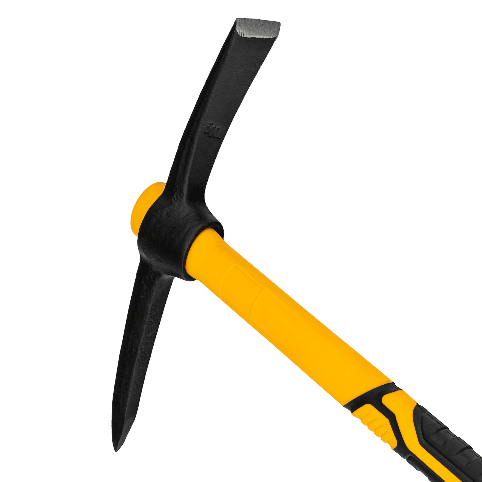 Кирка Denzel 21831 длиной 385 мм, с рабочей головой весом 700 г и фибергласовой обрезиненной рукояткой, предназначена для работы по камню, рыхления каменистого, пересохшего земляного и глиняного грунта. Может использоваться для разрушения старой кирпичной кладки и колки льда. Инструмент будет полезен на строительной площадке и дачном участке.