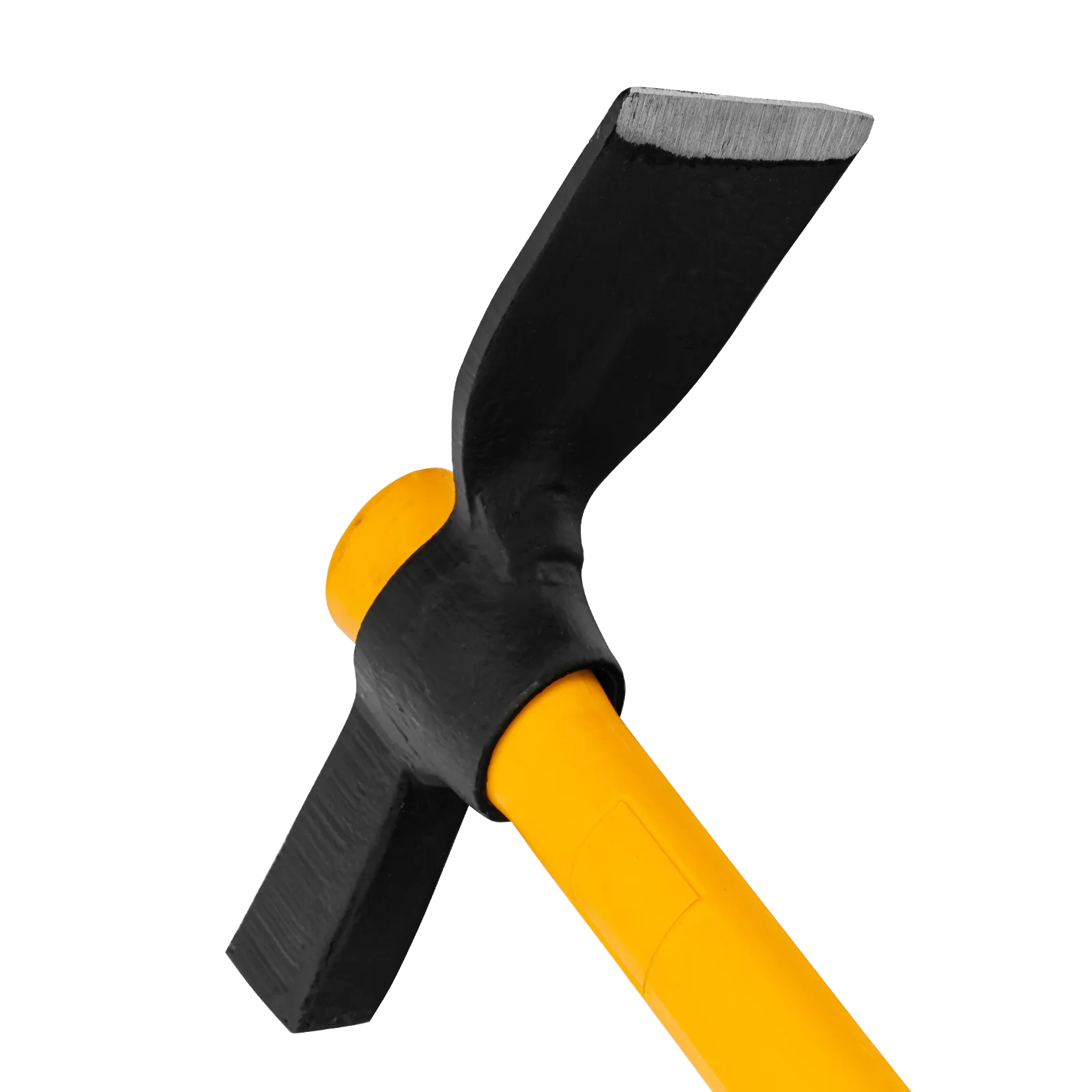 Кирка-молоток Denzel 21832 с рабочей частью весом 650 г и фибергласовой обрезиненной рукояткой длиной 385 мм оптимальна для работы по камню, каменистому, пересохшему земляному и глиняному грунту. Может использоваться для разрушения старой кирпичной кладки и колки льда. Инструмент будет полезен для проведения строительных и демонтажных работ.