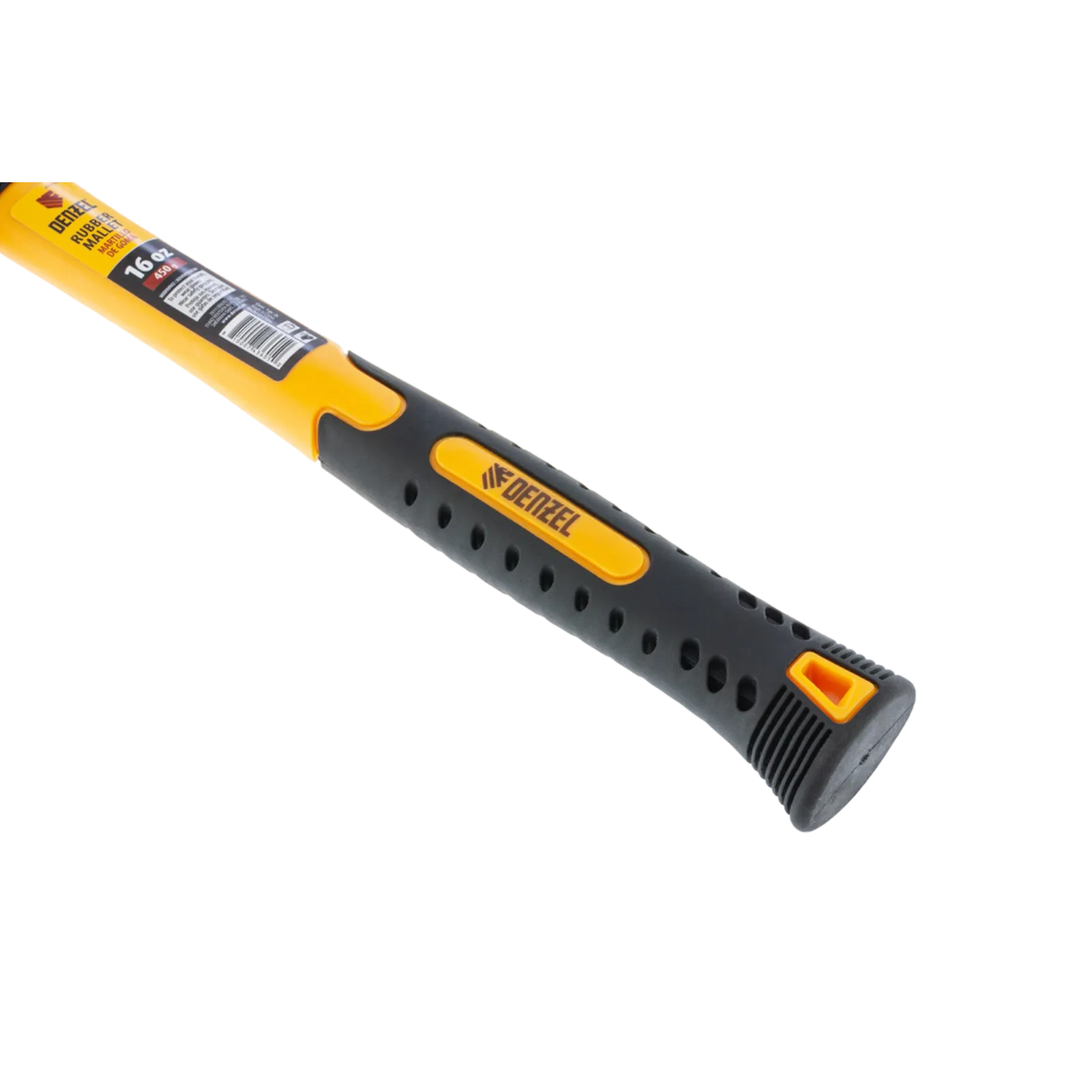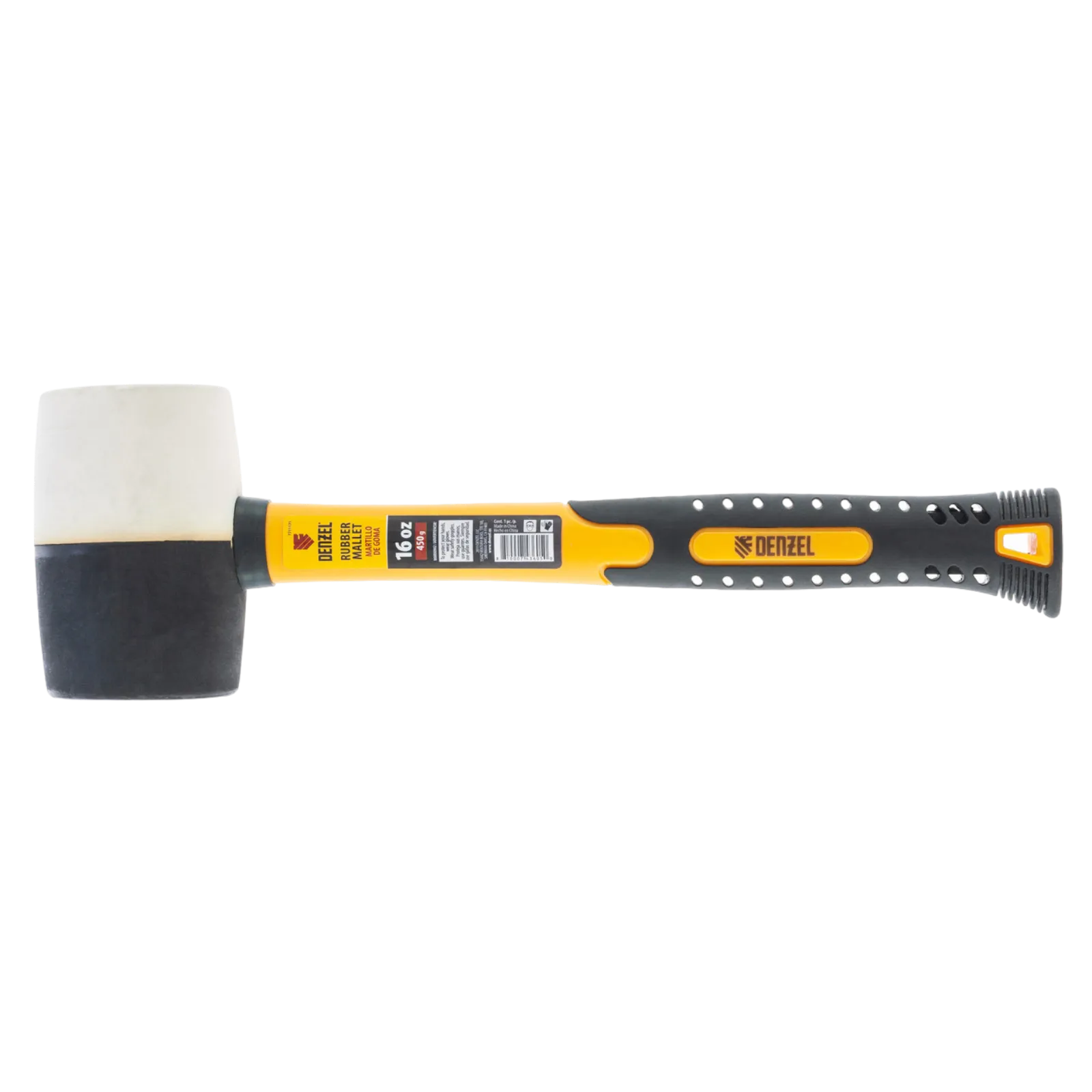Резиновая киянка Denzel из черно-белой резины с фибергласовой рукояткой, 16 oz(450 г), применяется при проведении монтажных, сборочных и кузовных работ, укладке плитки. Резиновый боек обладает высокими амортизирующими свойствами. Часть бойка из белой резины не оставляет следов, поэтому подходит для работы со светлыми материалами. Рукоятка обладает высоким рабочим ресурсом, т.к. выполнена из фибергласа с обрезиненным покрытием который обеспечивает надежный хват без проскальзывания. Киянка имеет высокий показатель прочности, устойчива к воздействию внешней агрессивной среды и хорошо поглащает вибрацию, поэтому подходит для профессионального применения.