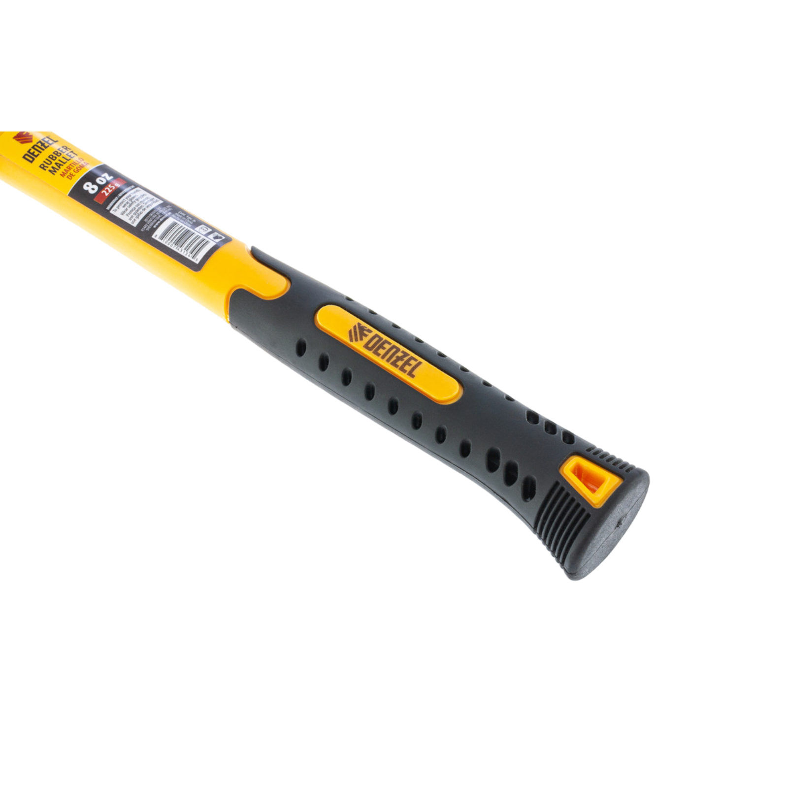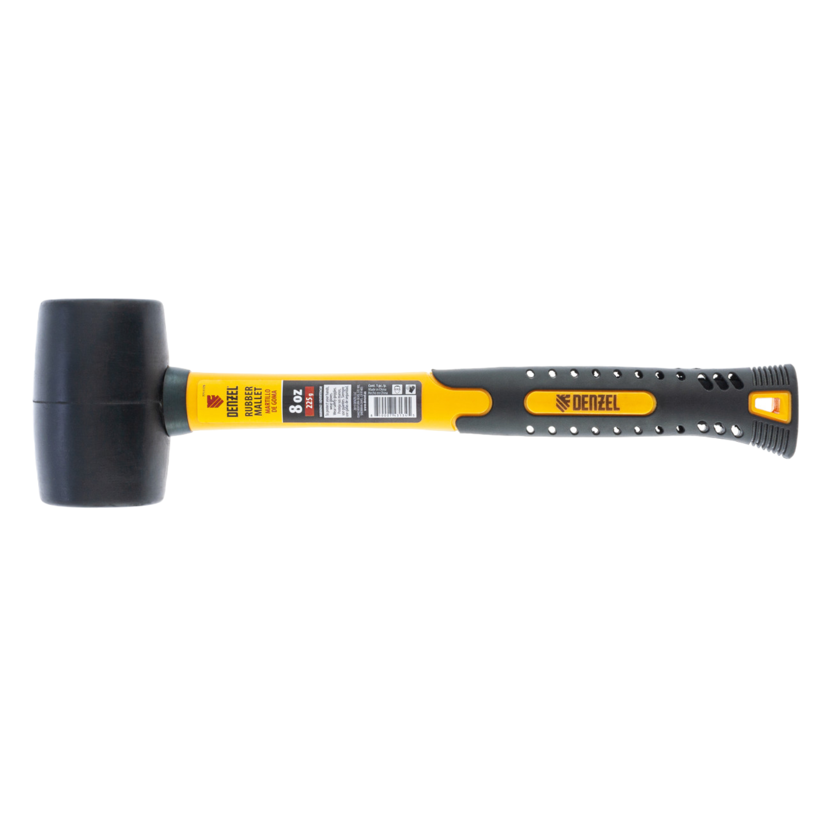 Резиновая киянка Denzel из черной резины с фибергласовой рукояткой,8 oz (225 г), применяется при проведении монтажных, сборочных и кузовных работ, укладке плитки. Резиновый боек обладает высокими амортизирующими свойствами. Рукоятка обладает высоким рабочим ресурсом, т.к. выполнена из фибергласа с обрезиненным покрытием, который обеспечивает надежный хват без проскальзывания. Киянка имеет высокий показатель прочности, устойчива к воздействию внешней агрессивной среды и хорошо поглащает вибрацию, поэтому подходит для профессионального применения.
