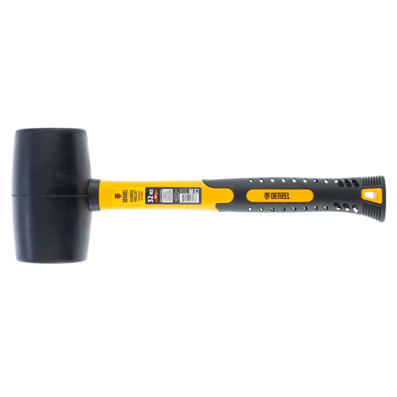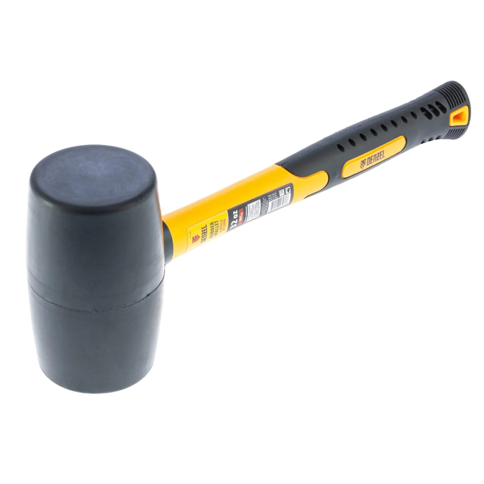 Резиновая киянка Denzel из черной резины с фибергласовой рукояткой,32 oz (910 г), применяется при проведении монтажных, сборочных и кузовных работ, укладке плитки. Резиновый боек обладает высокими амортизирующими свойствами. Рукоятка обладает высоким рабочим ресурсом, т.к. выполнена из фибергласа с обрезиненным покрытием, который обеспечивает надежный хват без проскальзывания. Киянка имеет высокий показатель прочности, устойчива к воздействию внешней агрессивной среды и хорошо поглащает вибрацию, поэтому подходит для профессионального применения.