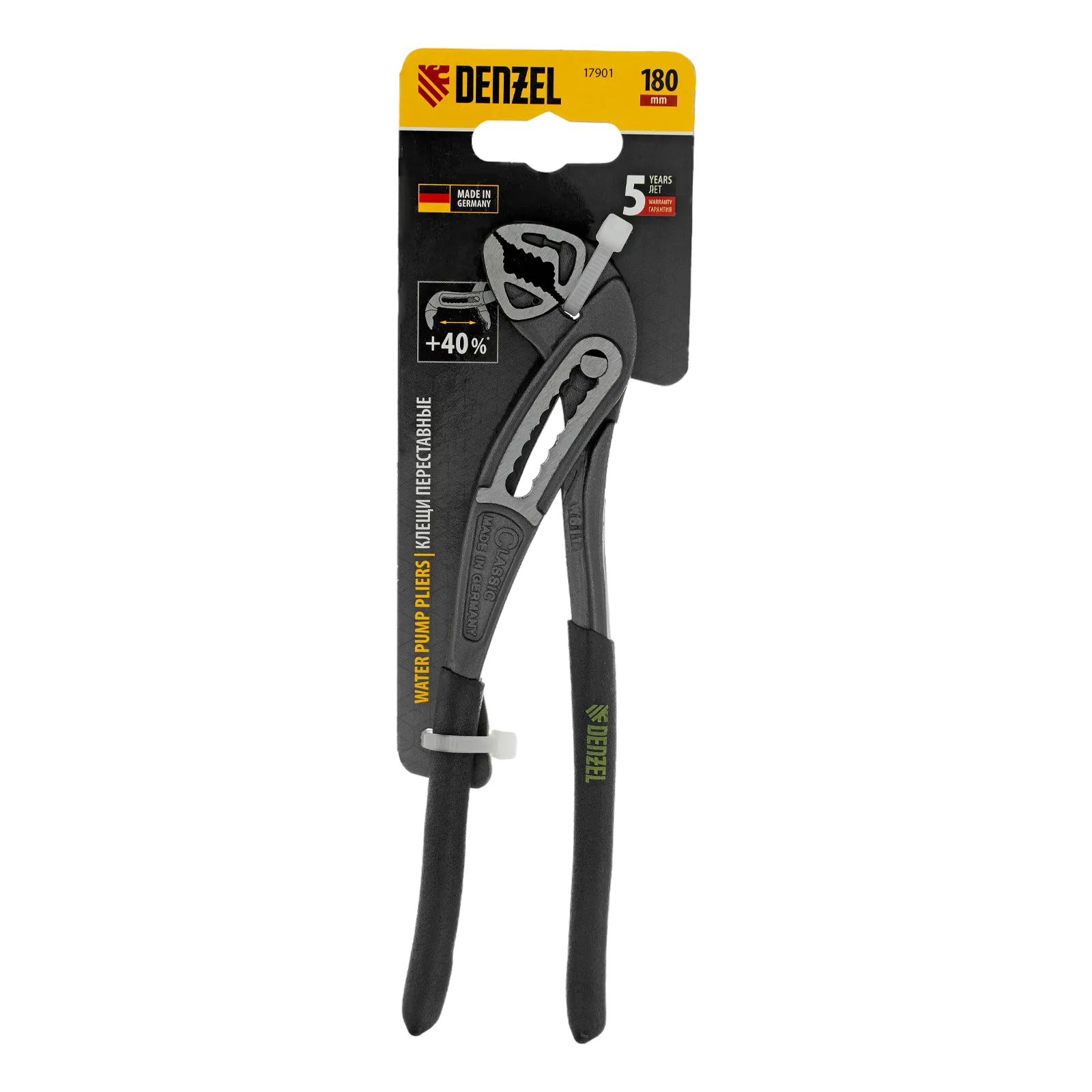 Переставные клещи Denzel 17901 длиной 180 мм, с обливными рукоятками, предназначены для фиксации и вращения деталей и заготовок различной формы. Подходят для захвата фитингов, труб, крепежных элементов. Инструмент используется при проведении ремонтных, монтажных, сантехнических работ.