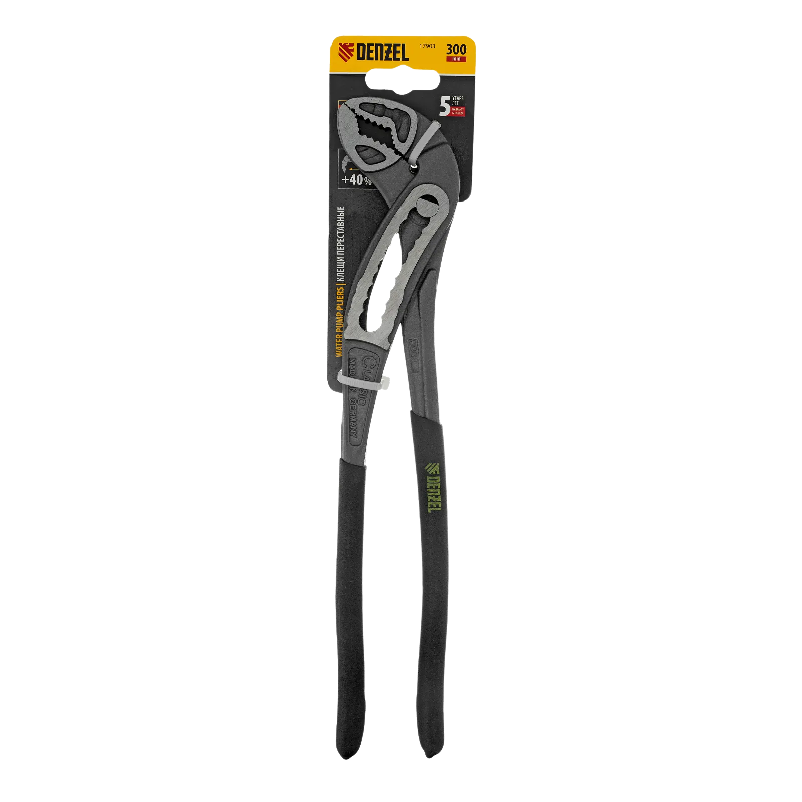 Переставные клещи Denzel 17903 длиной 300 мм, с обливными рукоятками, предназначены для фиксации и вращения деталей и заготовок различной формы. Подходят для захвата фитингов, труб, крепежных элементов. Инструмент используется при проведении ремонтных, монтажных, сантехнических работ.