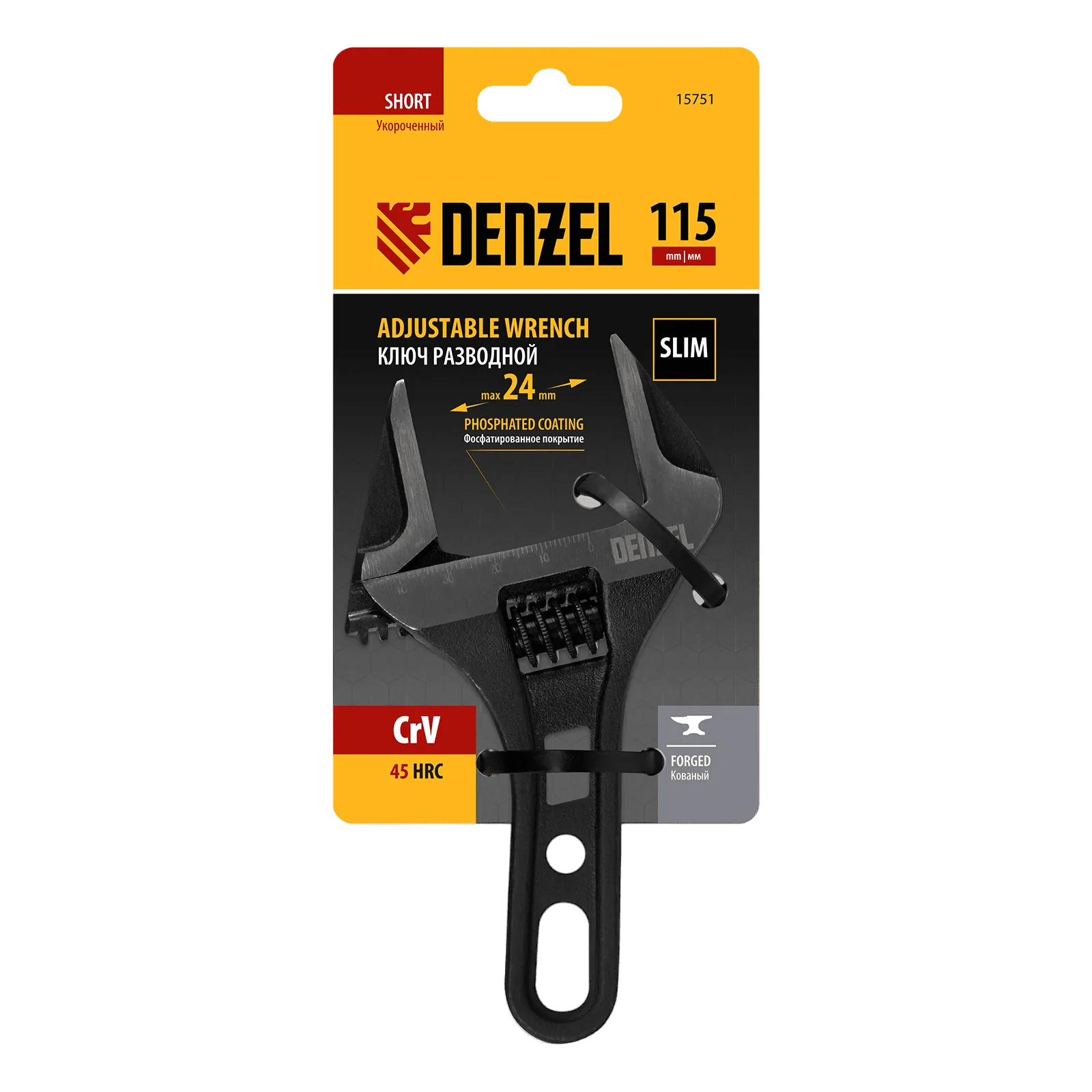 Ключ разводной кованый Denzel 15751 длиной 115 мм, из стали CrV, с укороченной рукояткой и увеличенным раскрытием губок, используется для монтажа и демонтажа крепежных элементов диаметром до 24 мм. Благодаря тонким губкам и укороченной рукоятке удобен для работы в труднодоступных местах. Имеет широкую область применения: сантехнические работы, мелкий бытовой ремонт, полупрофессиональная сфера и т. д.