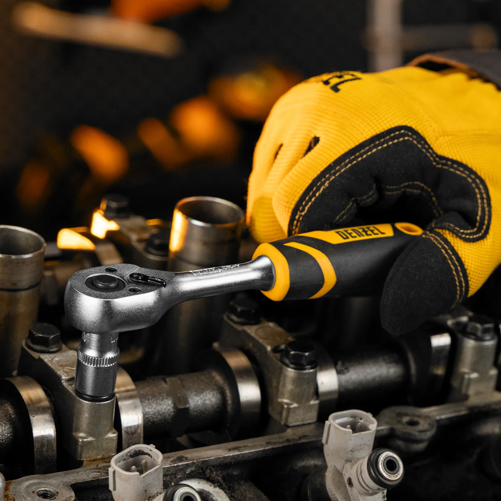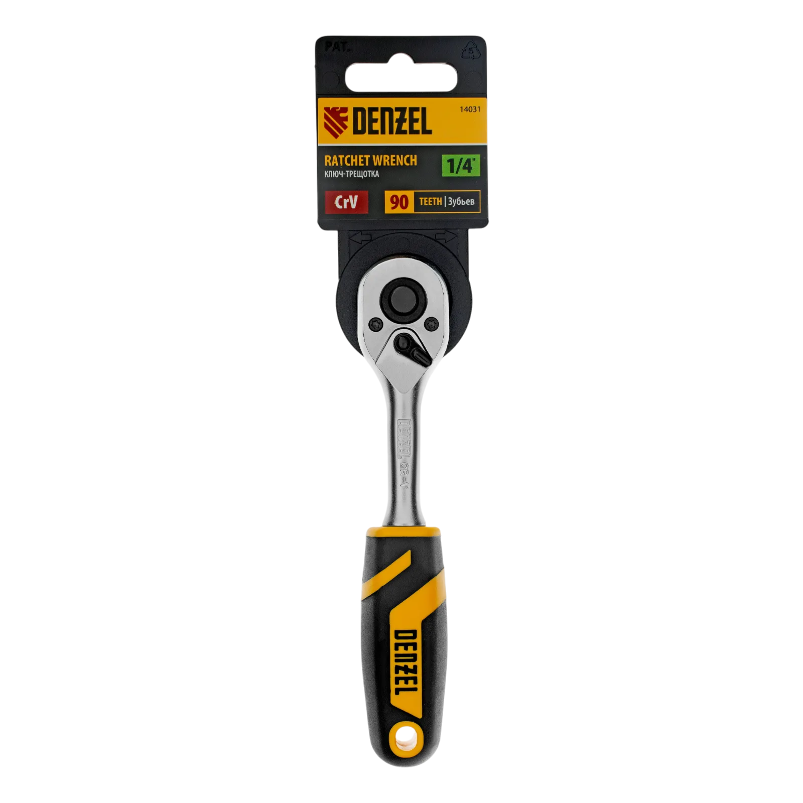Ключ-трещотка Denzel 14031 из стали CrV, с присоединительным квадратом 1/4", с быстрым сбросом и храповым механизмом с 90 зубьями, предназначен для установки торцевых головок, а также адаптеров и удлинителей с посадочным размером соответствующего размера. Угол поворота трещотки составляет всего 4°, что упрощает работу в труднодоступных местах. Инструмент будет полезен в сервисном центре, на СТО, а также пригодится дома или в поездке.