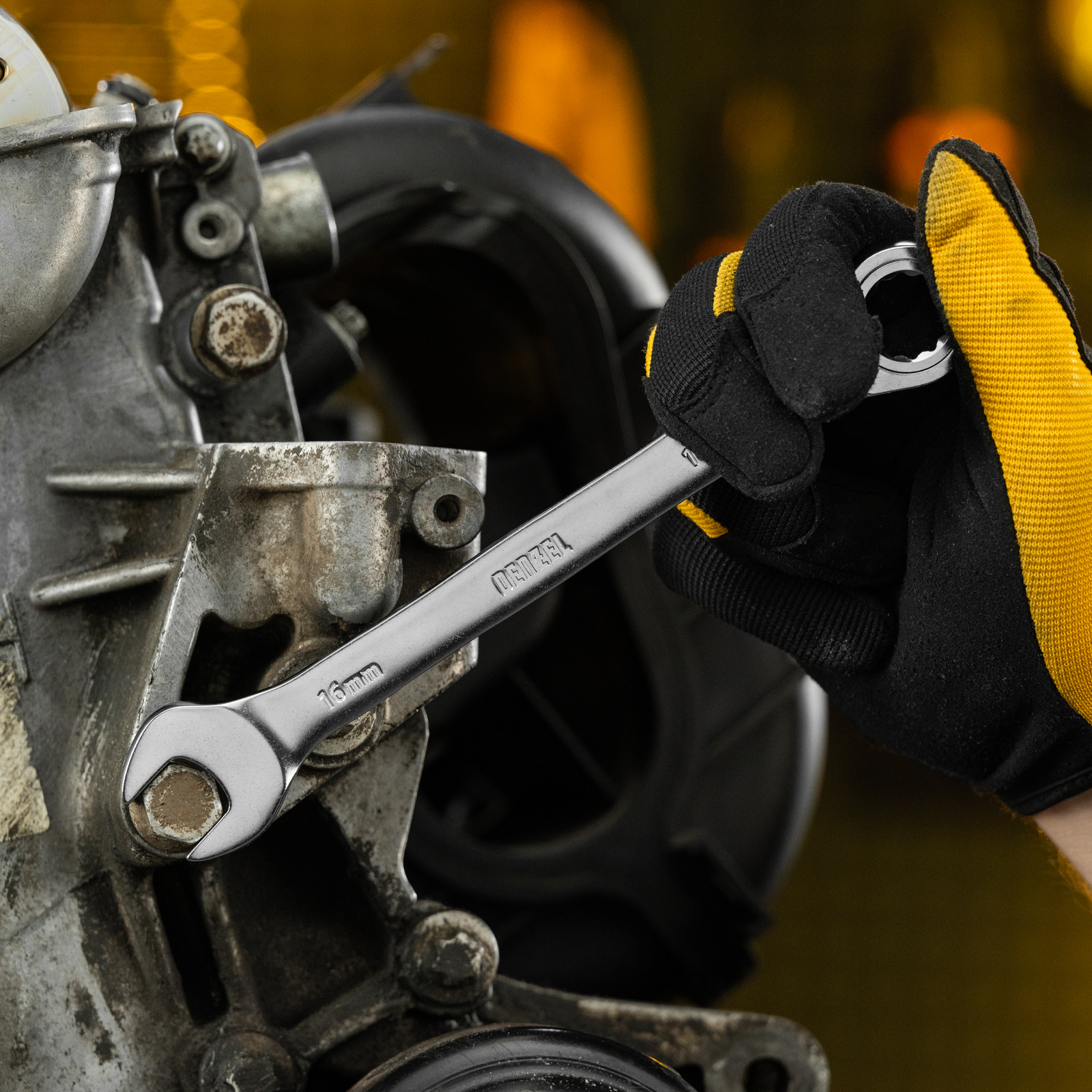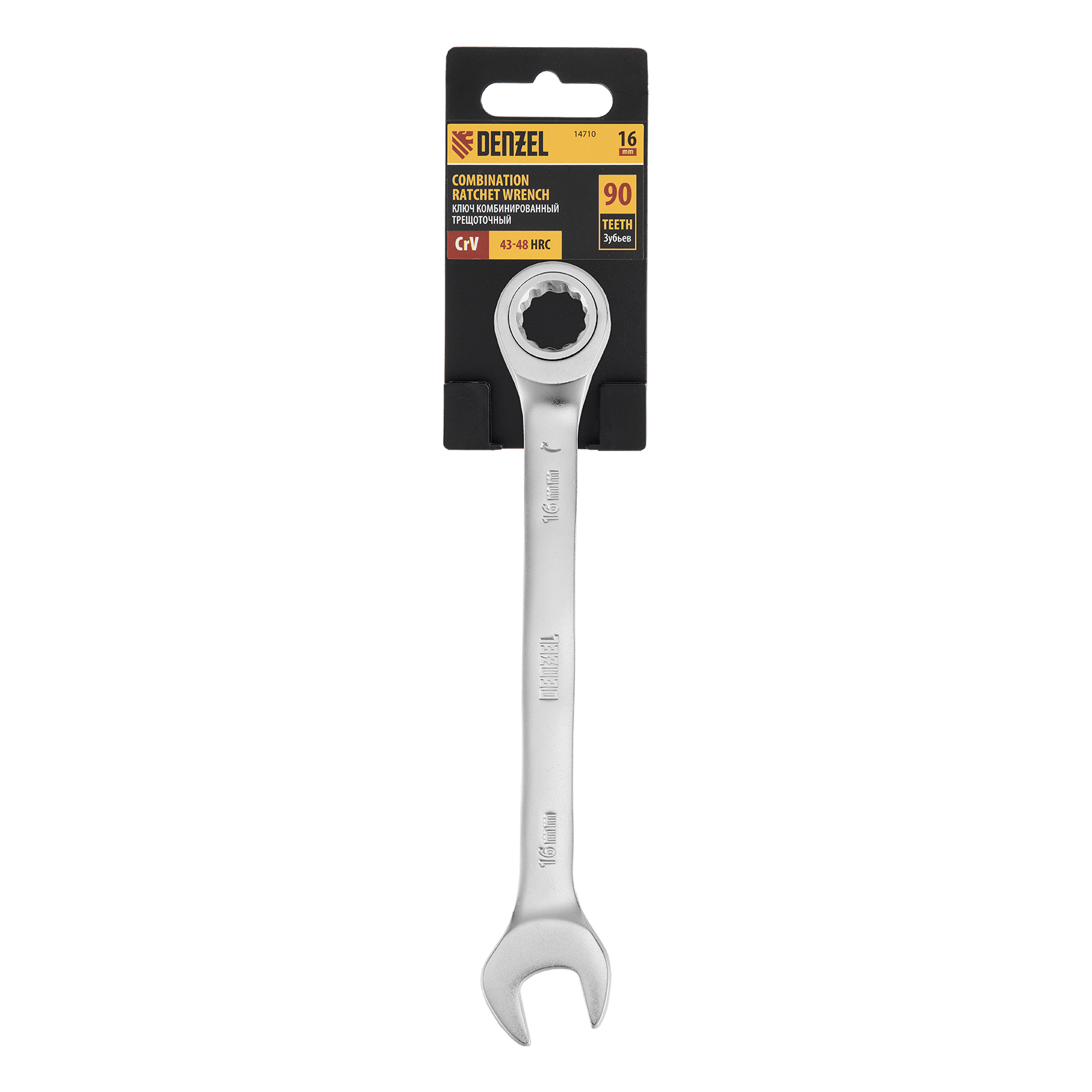 Комбинированный трещоточный ключ Denzel 14710 из стали CrV, с защитным покрытием «матовый хром», предназначен для работы с резьбовым крепежом размером 16 мм. Рожковый профиль упрощает работу в местах, где использование накидной рабочей части невозможно. Хромированное кольцо обеспечивает сохранность и долговечность инструмента. Ключ будет полезен дома, в мастерской и гараже.