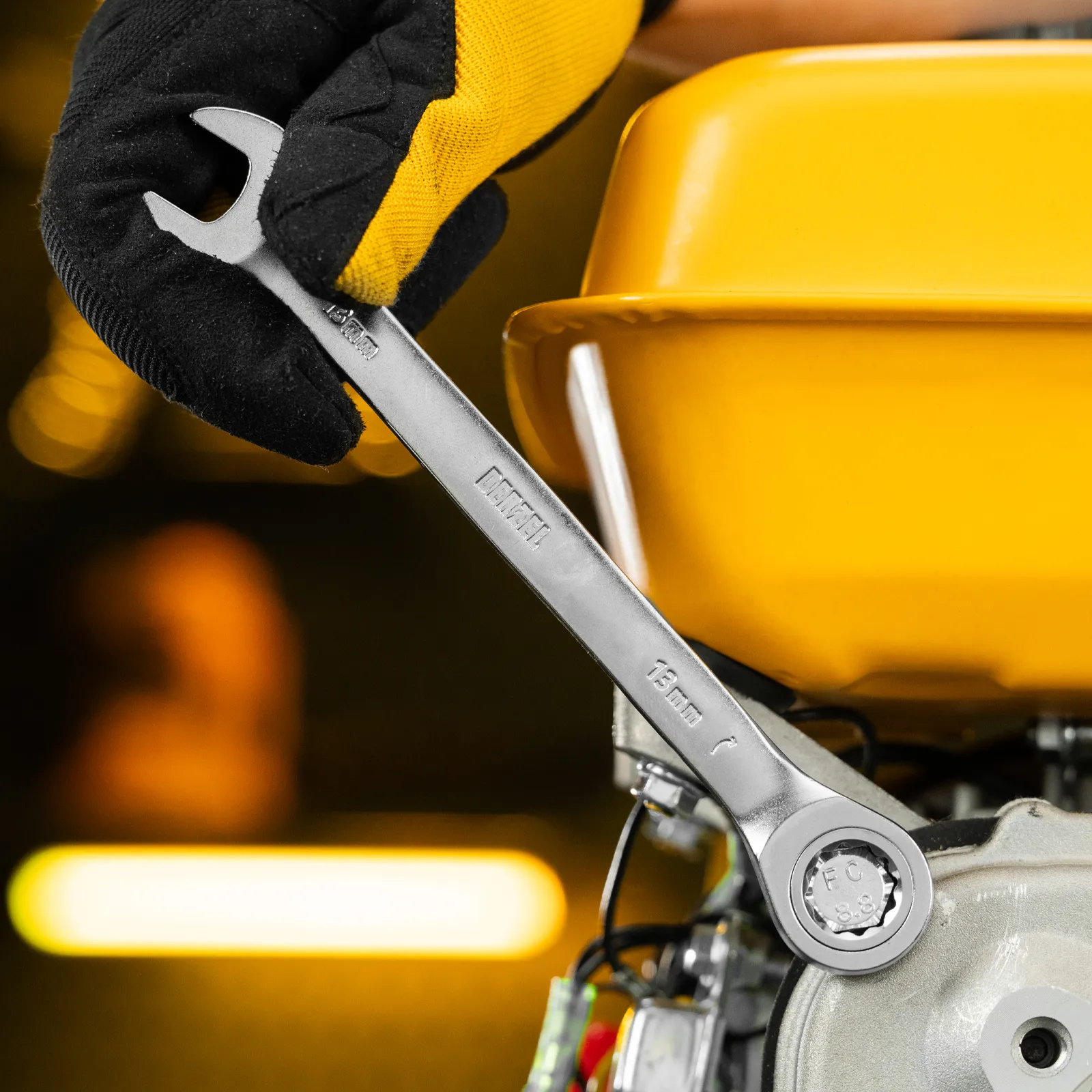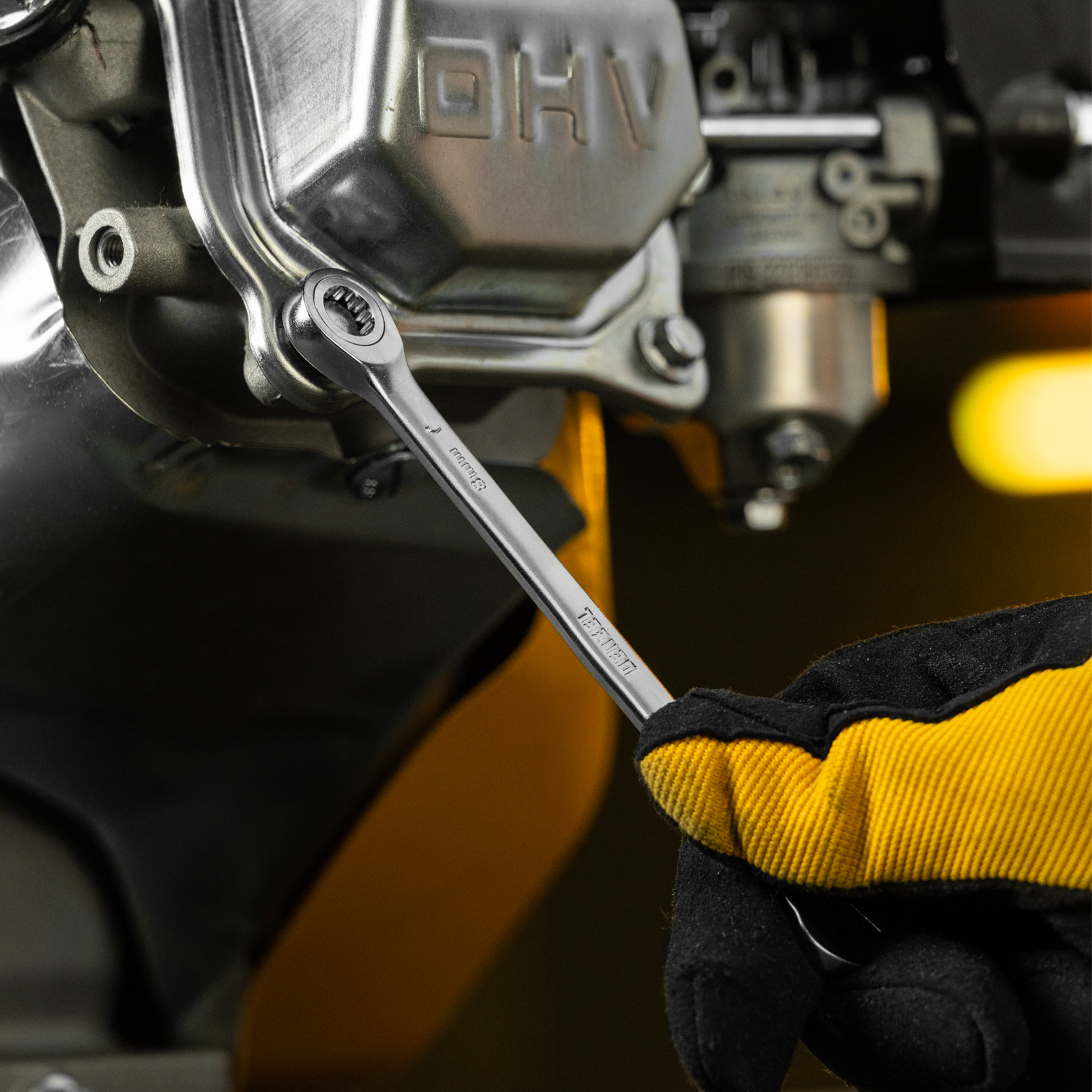 - Аккуратная работа — 12-гранная накидная часть увеличивает площадь соприкосновения с головкой крепежа и снижает риск ее деформации.