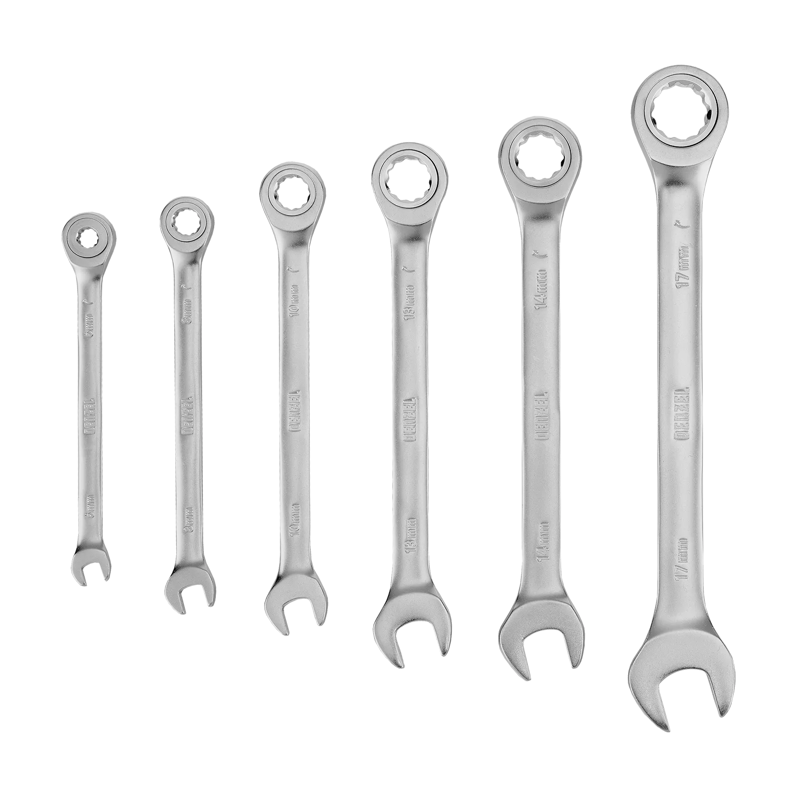Набор комбинированных трещоточных ключей Denzel 14720 состоит из 6 инструментов из стали CrV. Используется для проведения монтажных и демонтажных работ с резьбовыми соединениями диаметром от 6 до 17 мм. У каждого ключа 2 рабочих профиля, что расширяет возможности использования набора. Инструменты пригодятся дома и в гараже.