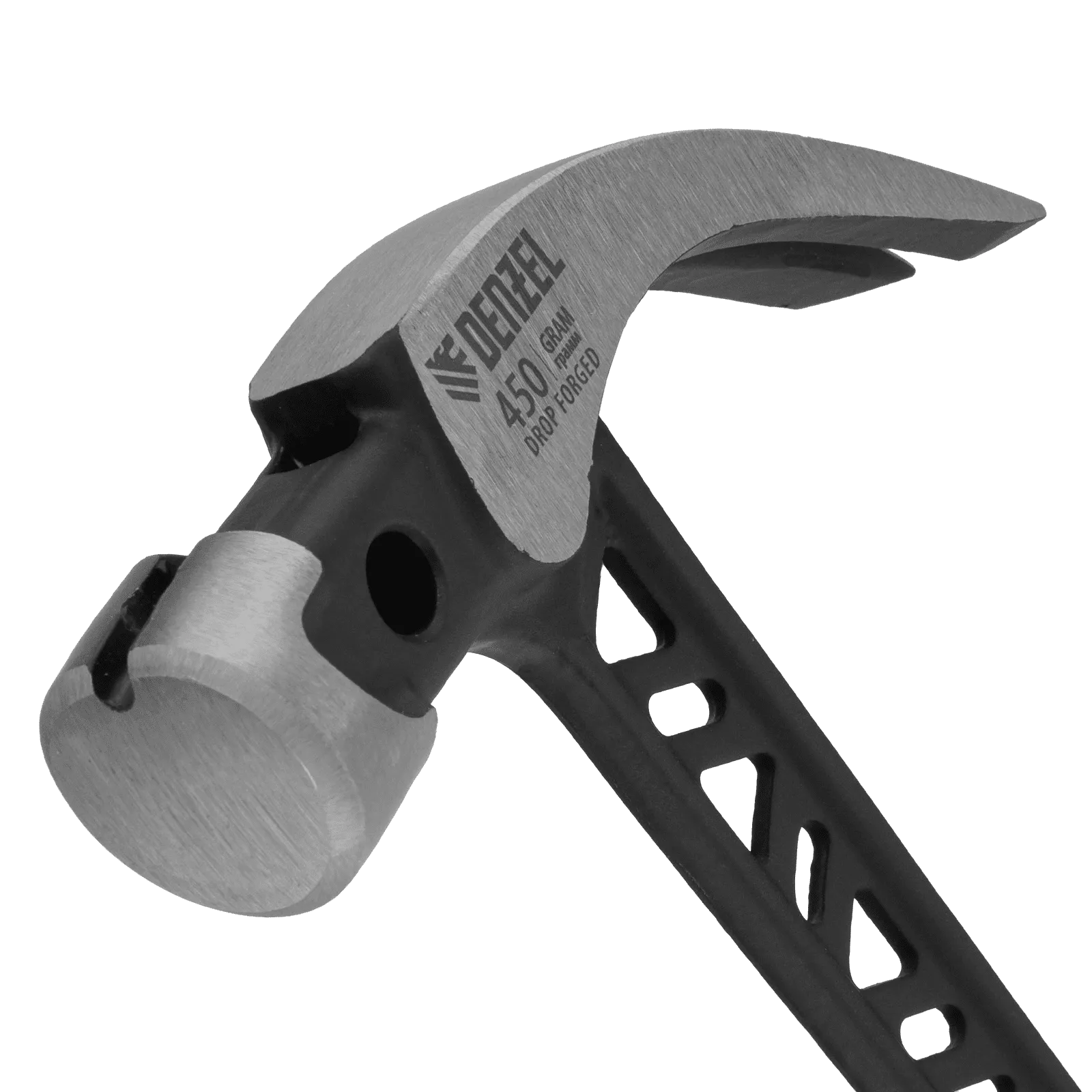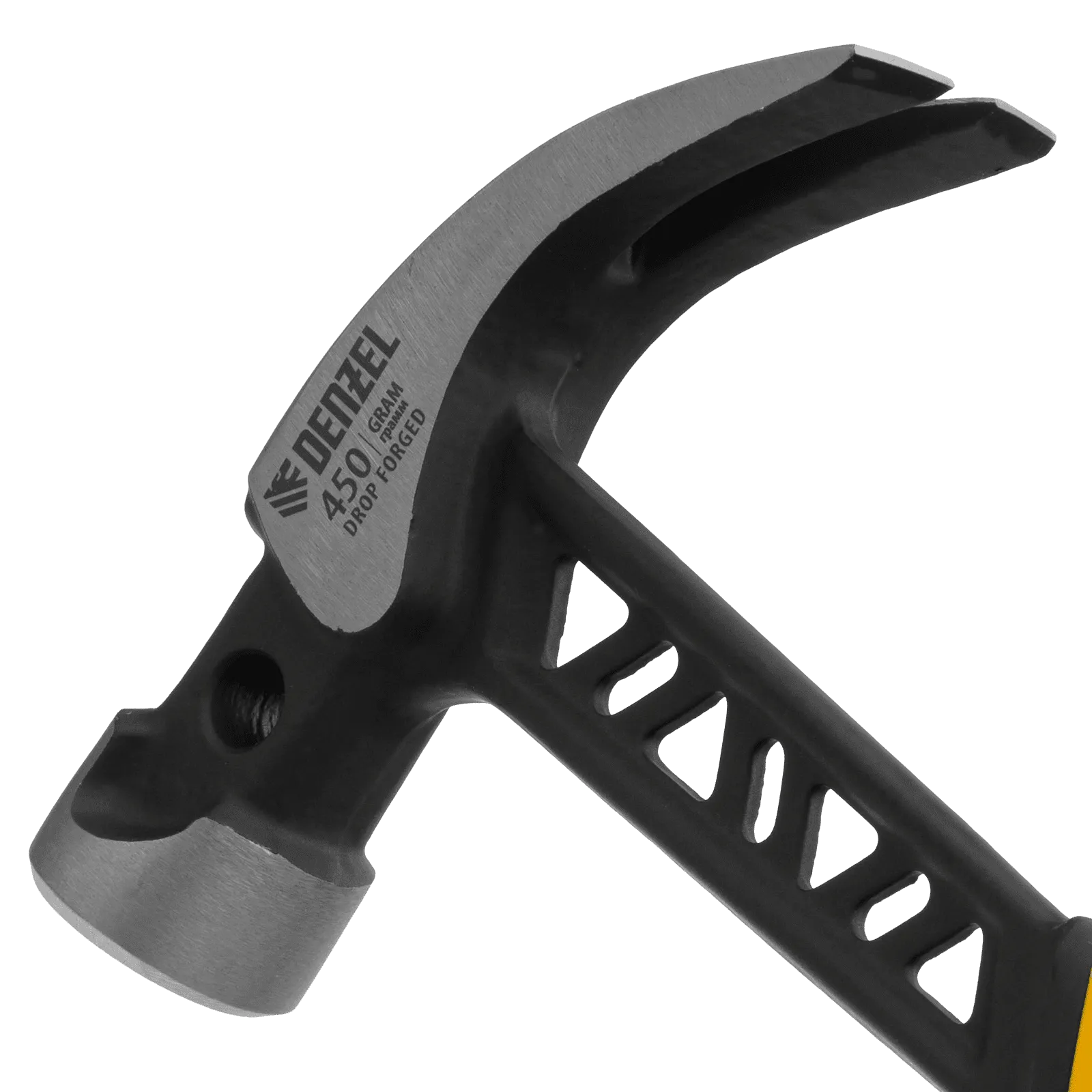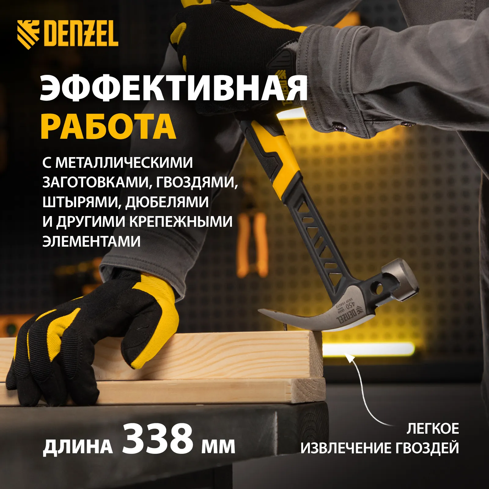 Цельнокованый молоток-гвоздодер Denzel 10466 с бойком весом 450 г, с магнитом и двухкомпонентной обрезиненной рукояткой, предназначен для забивания и извлечения гвоздей. Имеет рабочую часть специальной формы — с круглым бойком и плоским носком с клиновидной прорезью. Магнитный держатель в верхней части бойка позволяет установить гвоздь, не придерживая его рукой, что упрощает работу в труднодоступных местах. Молоток используется в профессиональной сфере, пригодится также и в быту.