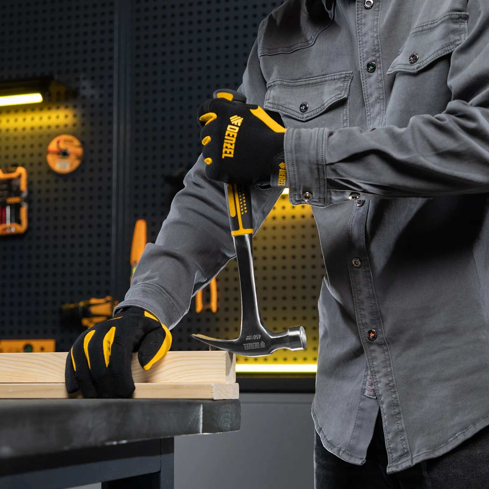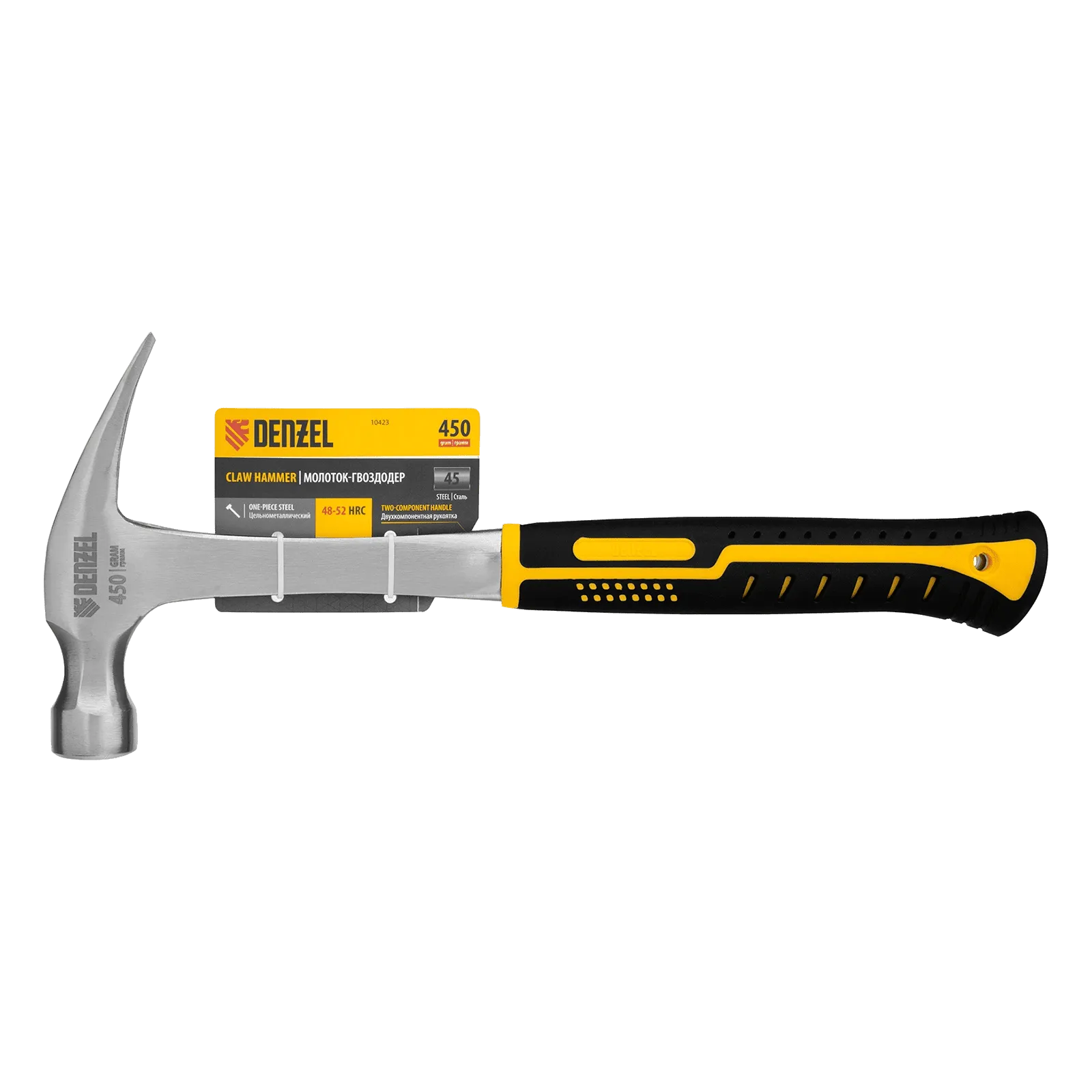 Цельнометаллический молоток-гвоздодер Denzel 10423 с головкой весом 450 г и двухкомпонентной рукояткой предназначен для забивания и извлечения гвоздей. Рекомендован как для домашнего, так и для профессионального применения, пригодится в слесарной мастерской, на даче, в гараже.