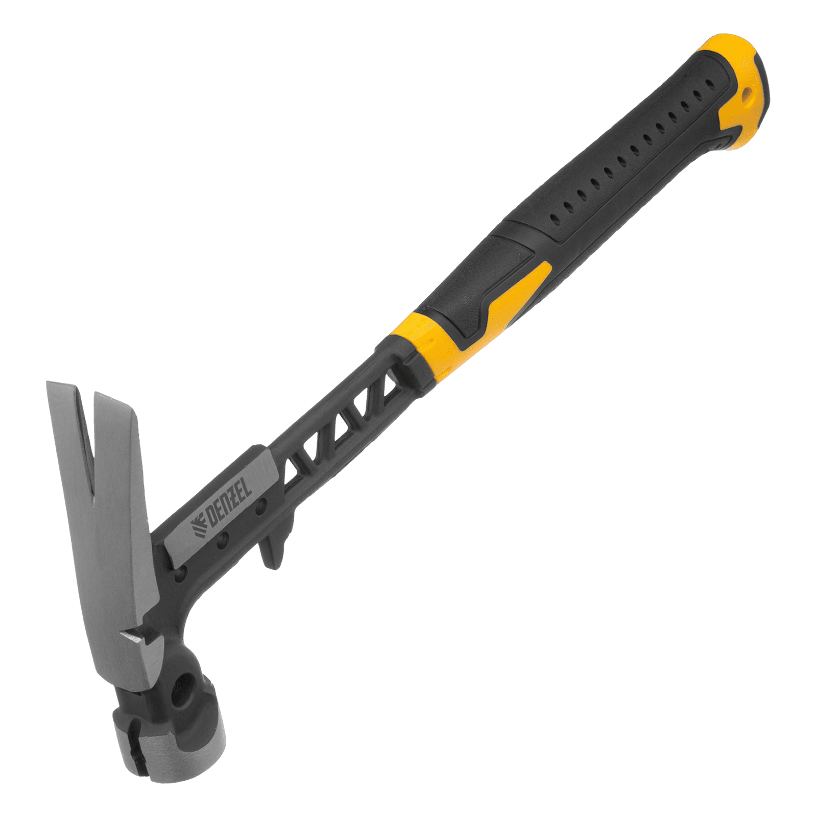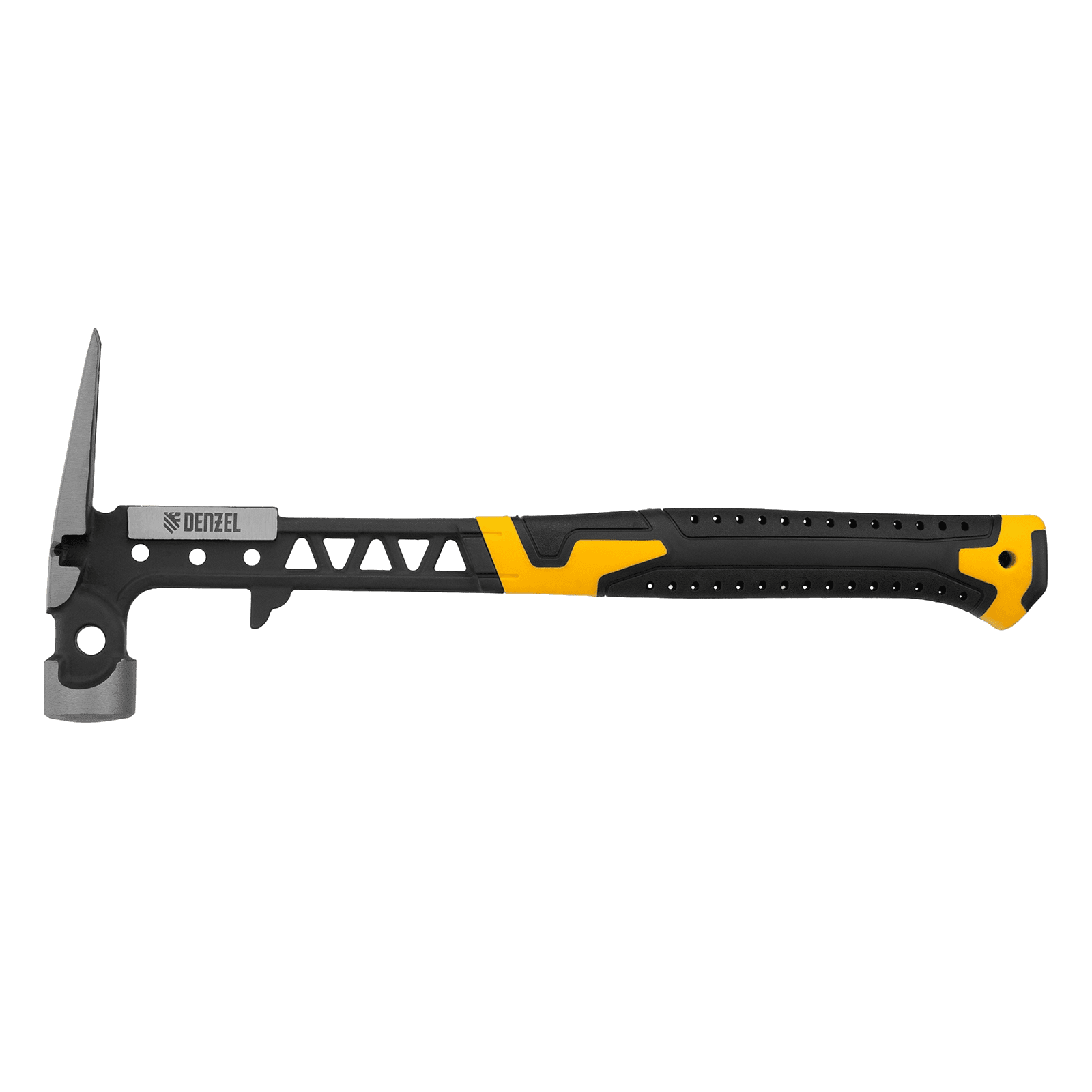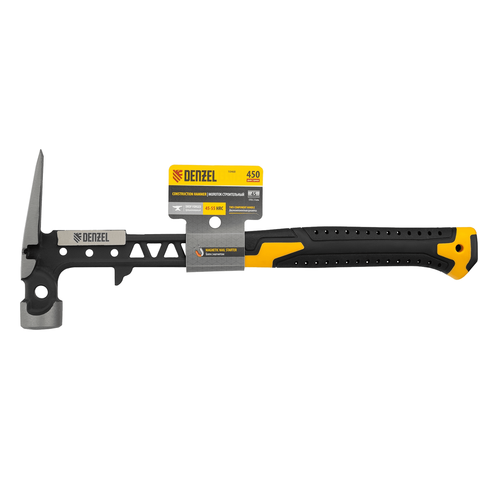 Цельнокованый строительный молоток-гвоздодер Denzel 10468 с бойком весом 450 г, с магнитом и двухкомпонентной обрезиненной рукояткой, используется при проведении строительных и монтажных работ. Благодаря магнитному фиксатору инструмент позволяет наживить гвоздь, не придерживая его рукой.
