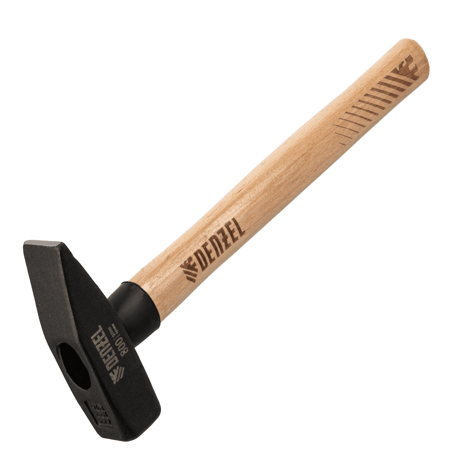 Слесарный молоток Denzel 10435 с квадратным кованым бойком весом 800 г предназначен для забивания гвоздей и другого крепежа и для работы с металлическими заготовками. Инструмент применяется во время слесарных или столярных работ в быту, также будет полезен профессионалам.