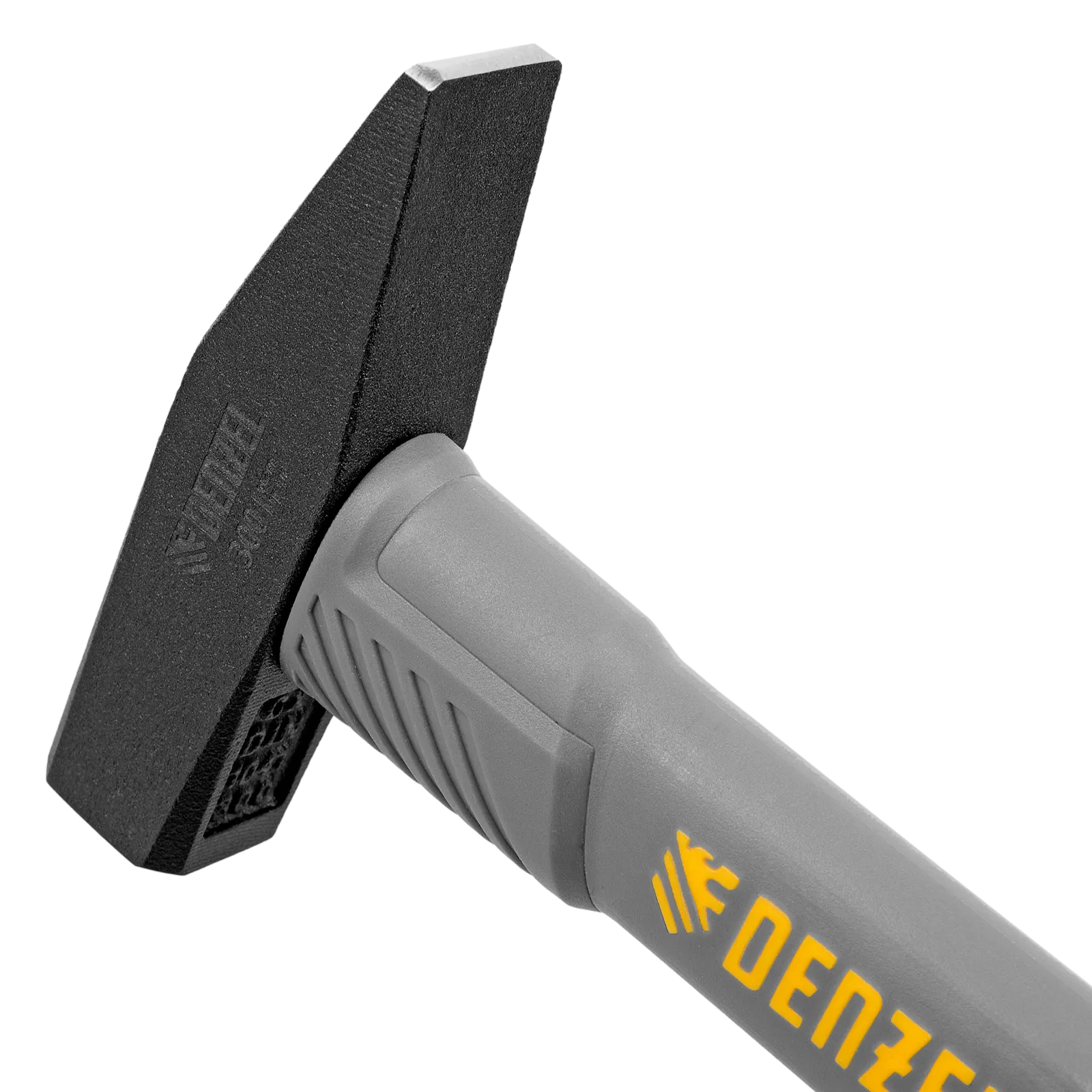 Молоток слесарный кованый Denzel 10483 с квадратным бойком весом 300 г и трехкомпонентной фибергласовой рукояткой с TPR-покрытием предназначен для работы с металлическими заготовками, забивания гвоздей, штырей, дюбелей и другого крепежа. Рукоятка выполнена в эксклюзивном дизайне. Молоток рекомендован для профессионального и домашнего применения.