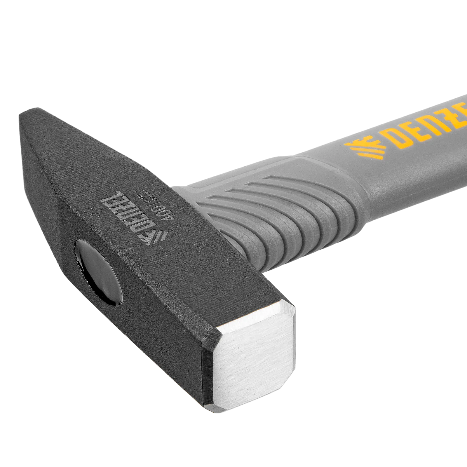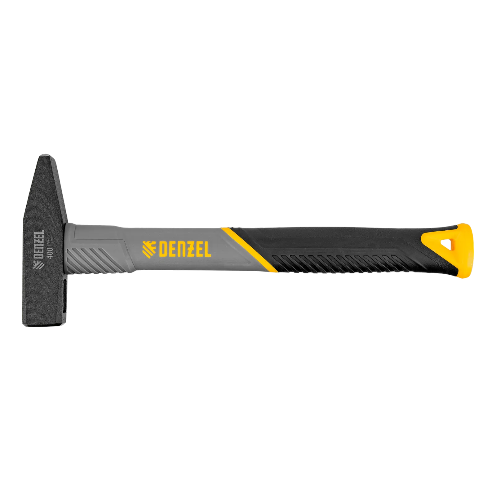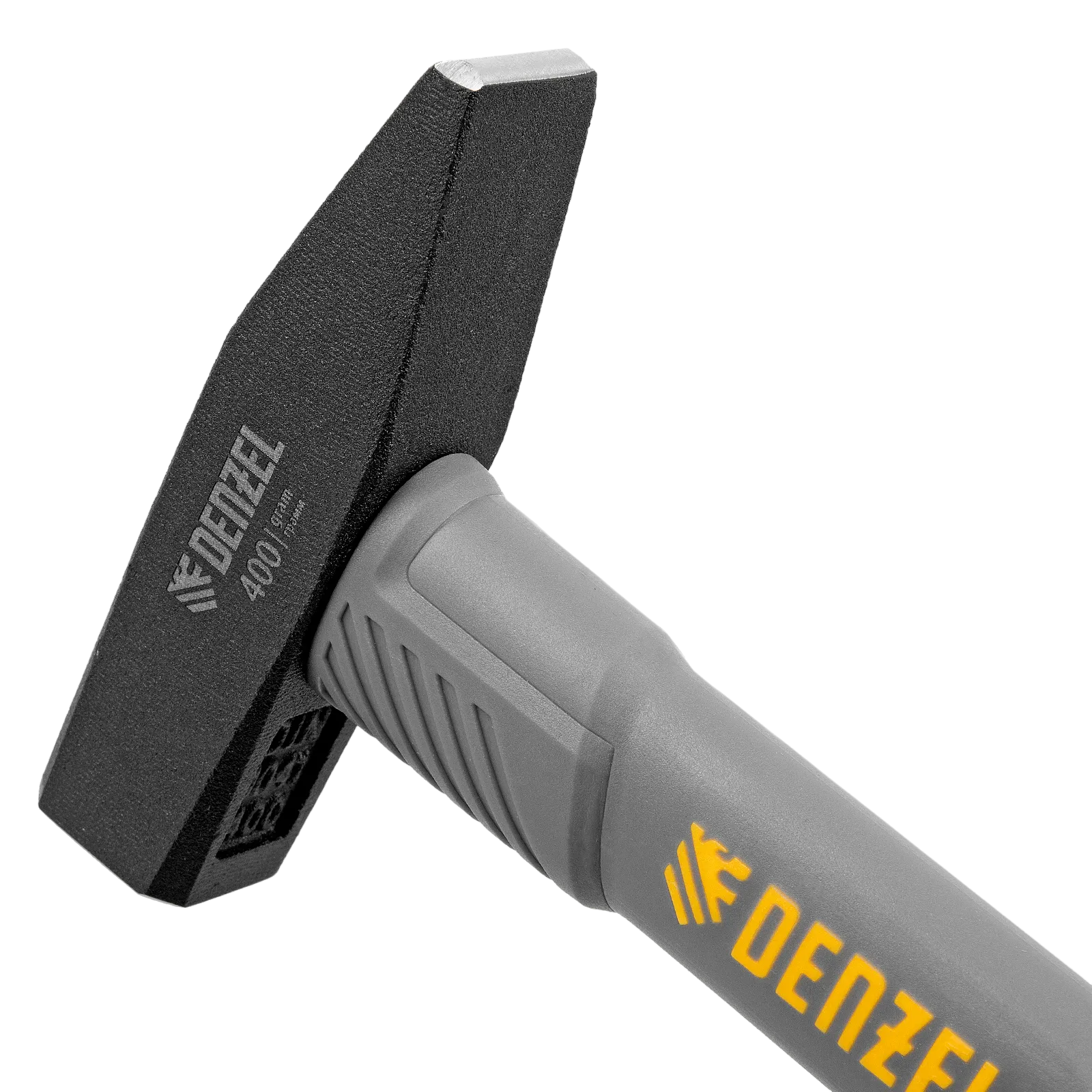 Молоток слесарный кованый Denzel 10484 с квадратным бойком весом 400 г и трехкомпонентной фибергласовой рукояткой с TPR-покрытием предназначен для работы с металлическими заготовками, забивания гвоздей, штырей, дюбелей и другого крепежа. Рукоятка выполнена в эксклюзивном дизайне. Молоток рекомендован для профессионального и домашнего применения.