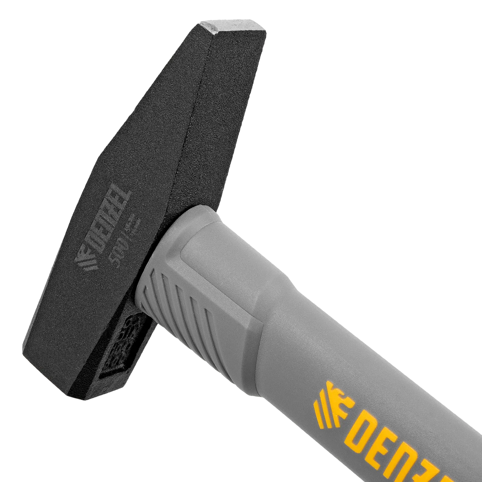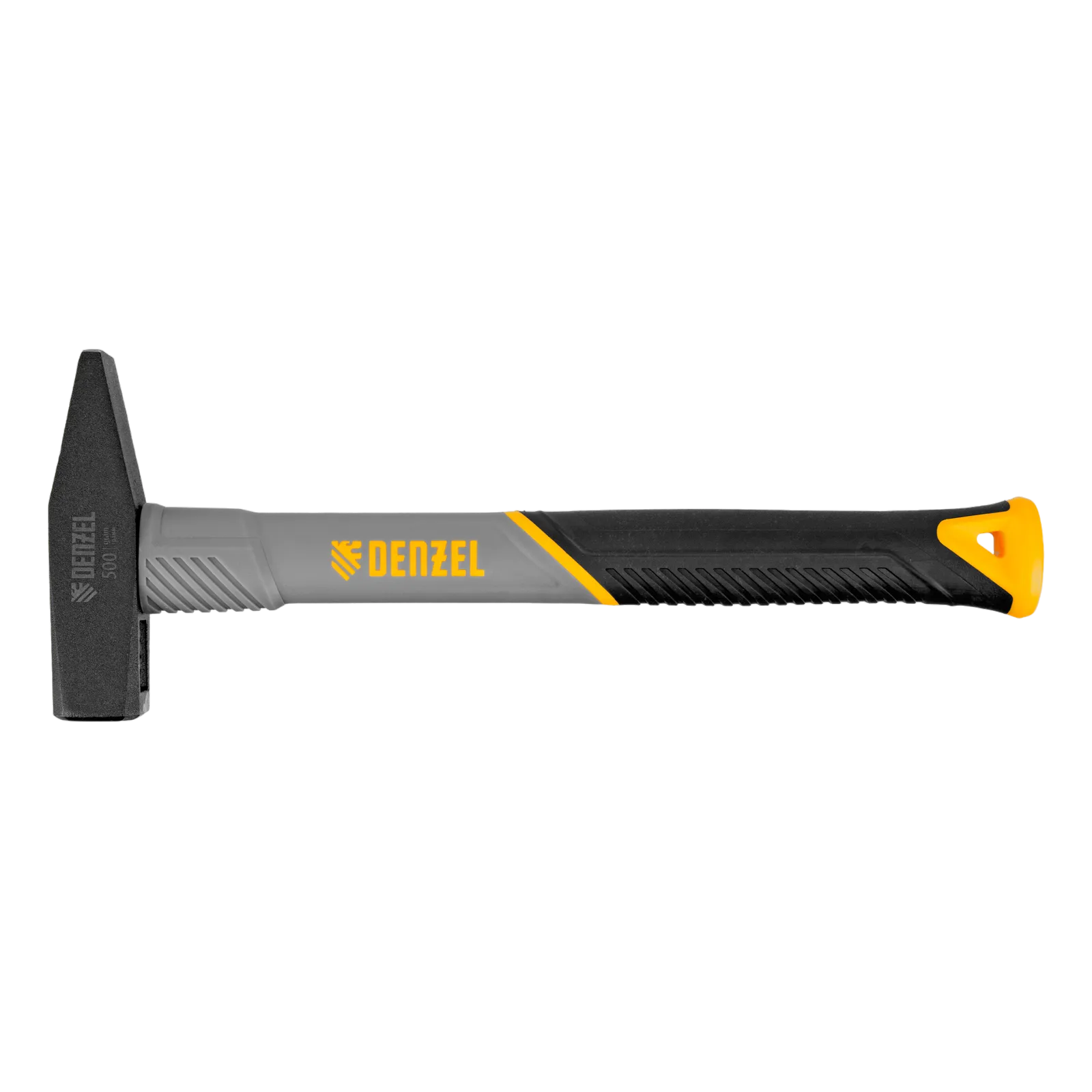 Молоток слесарный кованый Denzel 10485 с квадратным бойком весом 500 г и трехкомпонентной фибергласовой рукояткой с TPR-покрытием предназначен для работы с металлическими заготовками, забивания гвоздей, штырей, дюбелей и другого крепежа. Рукоятка выполнена в эксклюзивном дизайне. Молоток рекомендован для профессионального и домашнего применения.