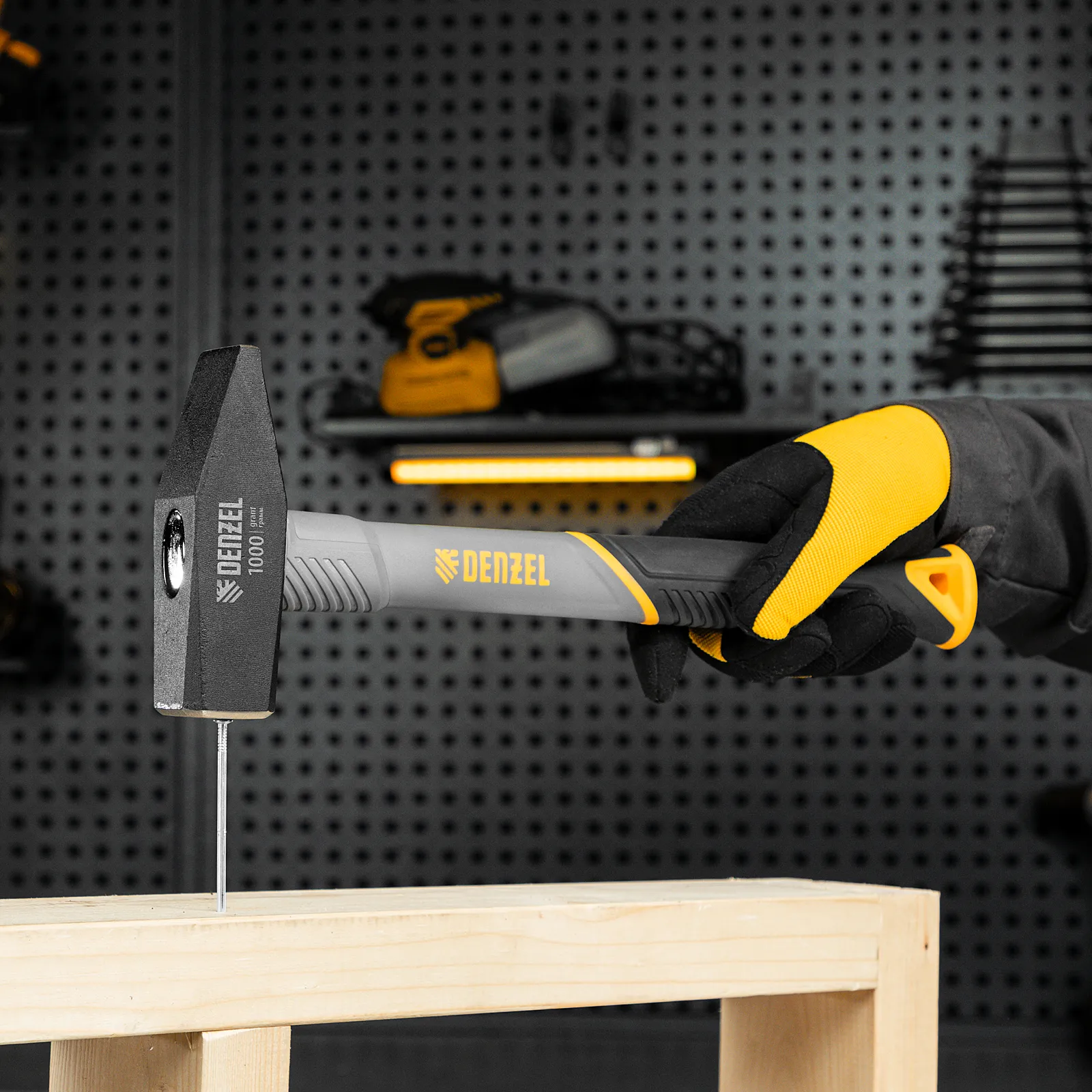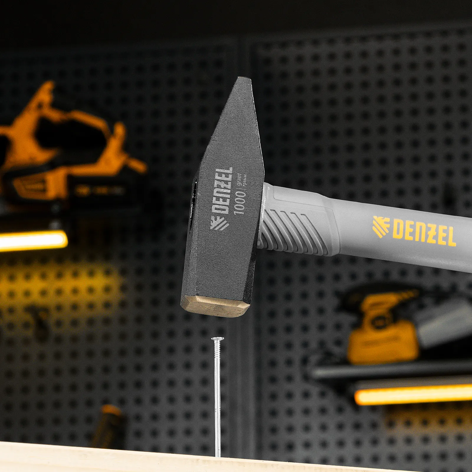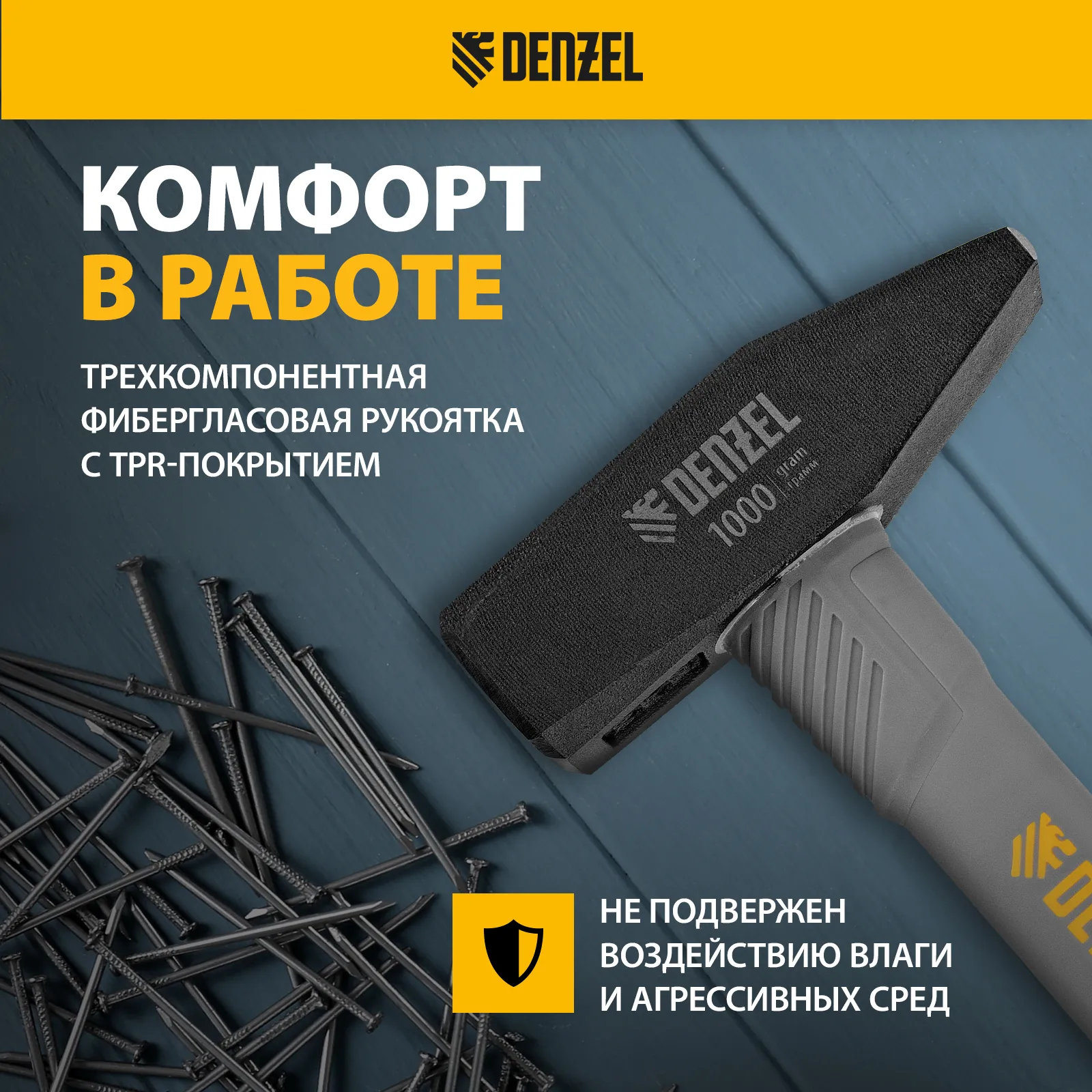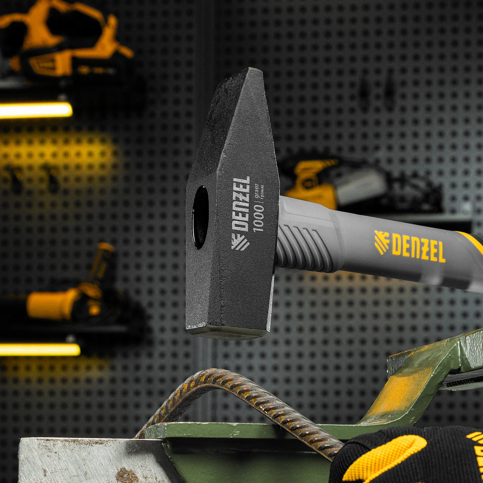 Молоток слесарный кованый Denzel 10490 с квадратным бойком весом 1000 г и трехкомпонентной фибергласовой рукояткой с TPR-покрытием предназначен для работы с металлическими заготовками, забивания гвоздей, штырей, дюбелей и другого крепежа. Рукоятка выполнена в эксклюзивном дизайне. Молоток рекомендован для профессионального и домашнего применения.