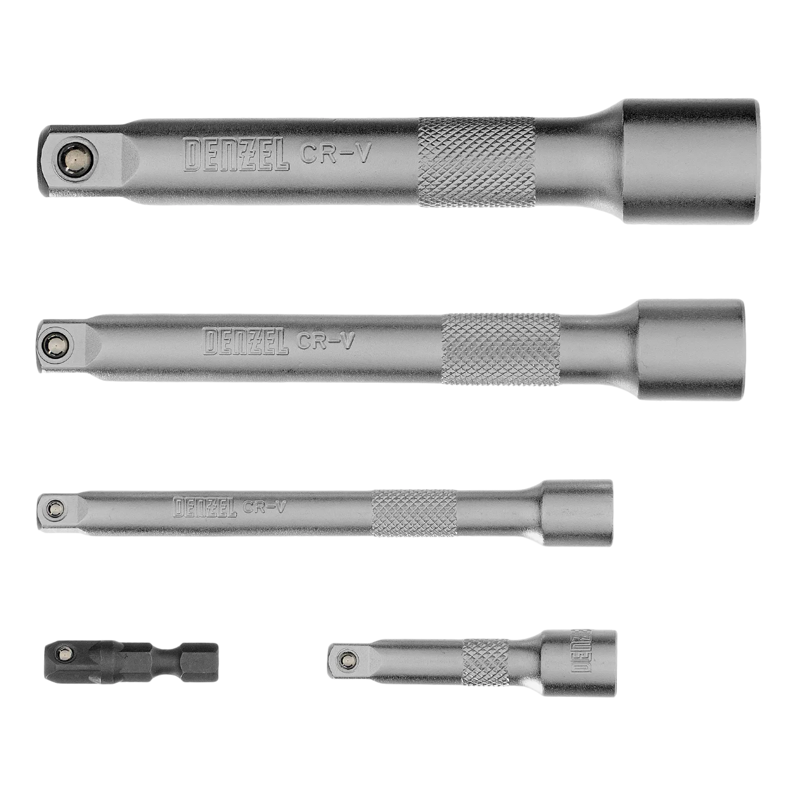Удлинители 1/4": 50, 100 мм - 2 шт, 3/8": 125 мм - 1 шт, 1/2": 125, 250 мм - 2 шт