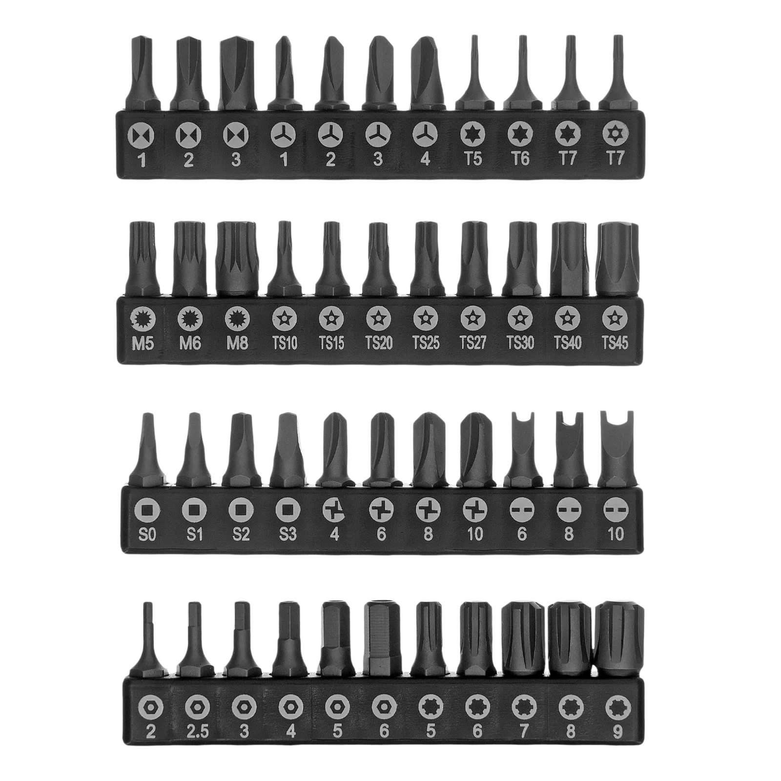 Биты с головками H3, 4, 5, 6; TT8, 9, 10, 15, 20, 25, 27, 30
