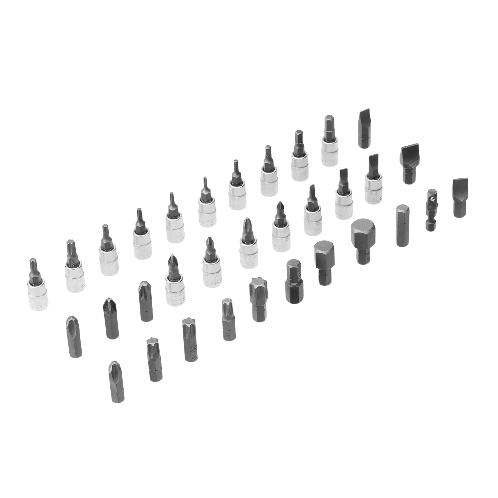 - Устойчивость к высоким нагрузкам — инструменты изготовлены из высокопрочной закаленной стали CrV, биты выполнены из японской стали S2.
