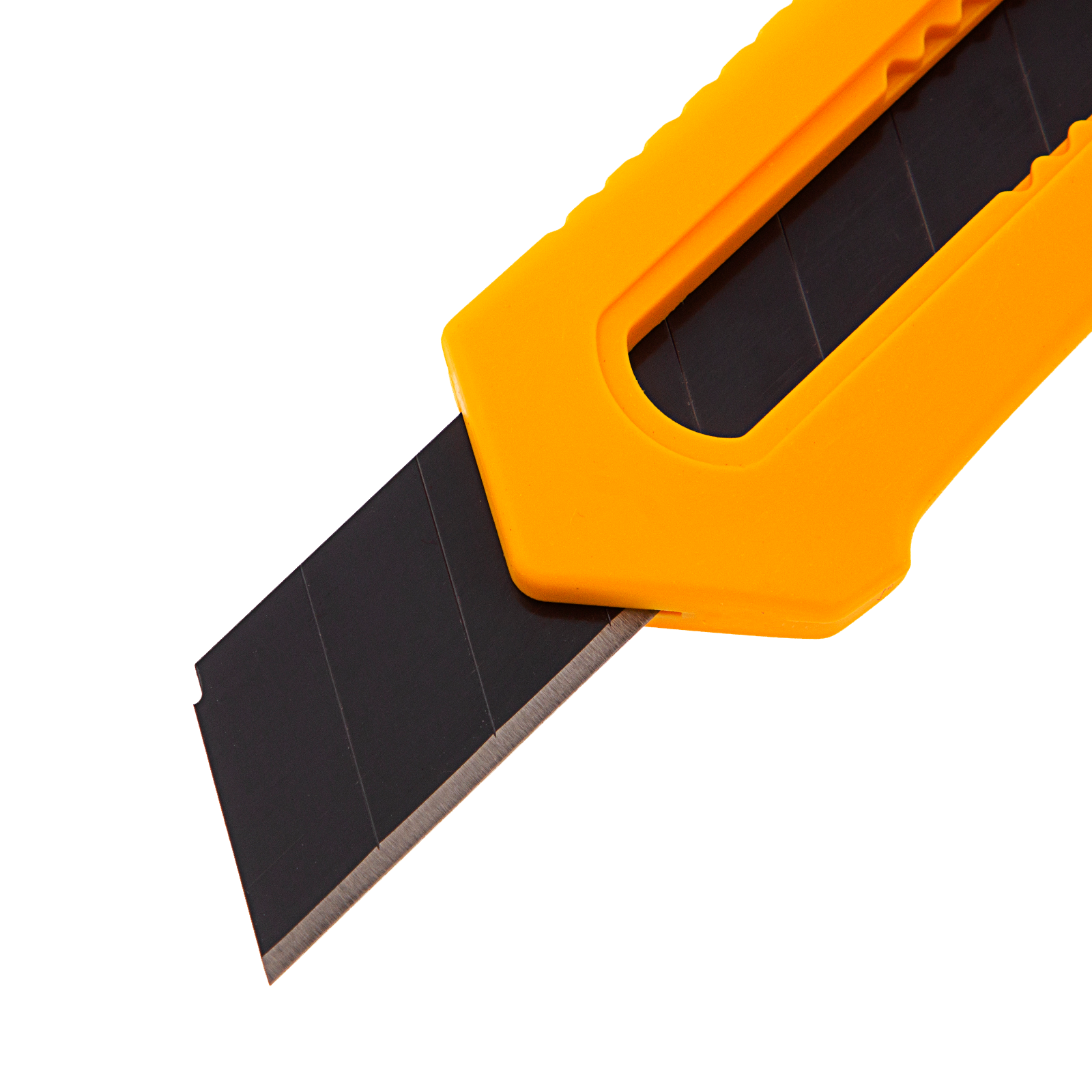 - Удобное использование — нажимной фиксатор удерживает лезвие в нужном положении.