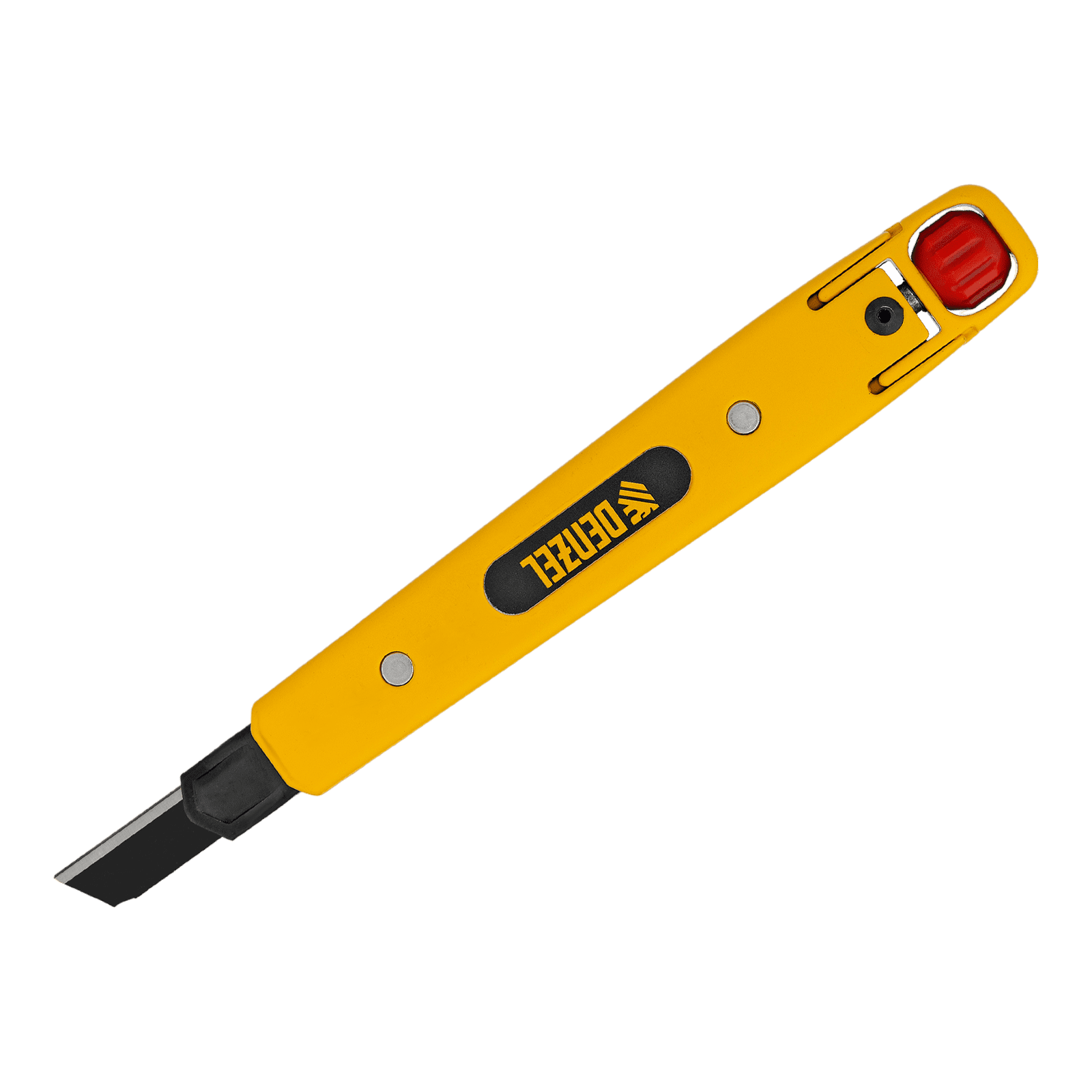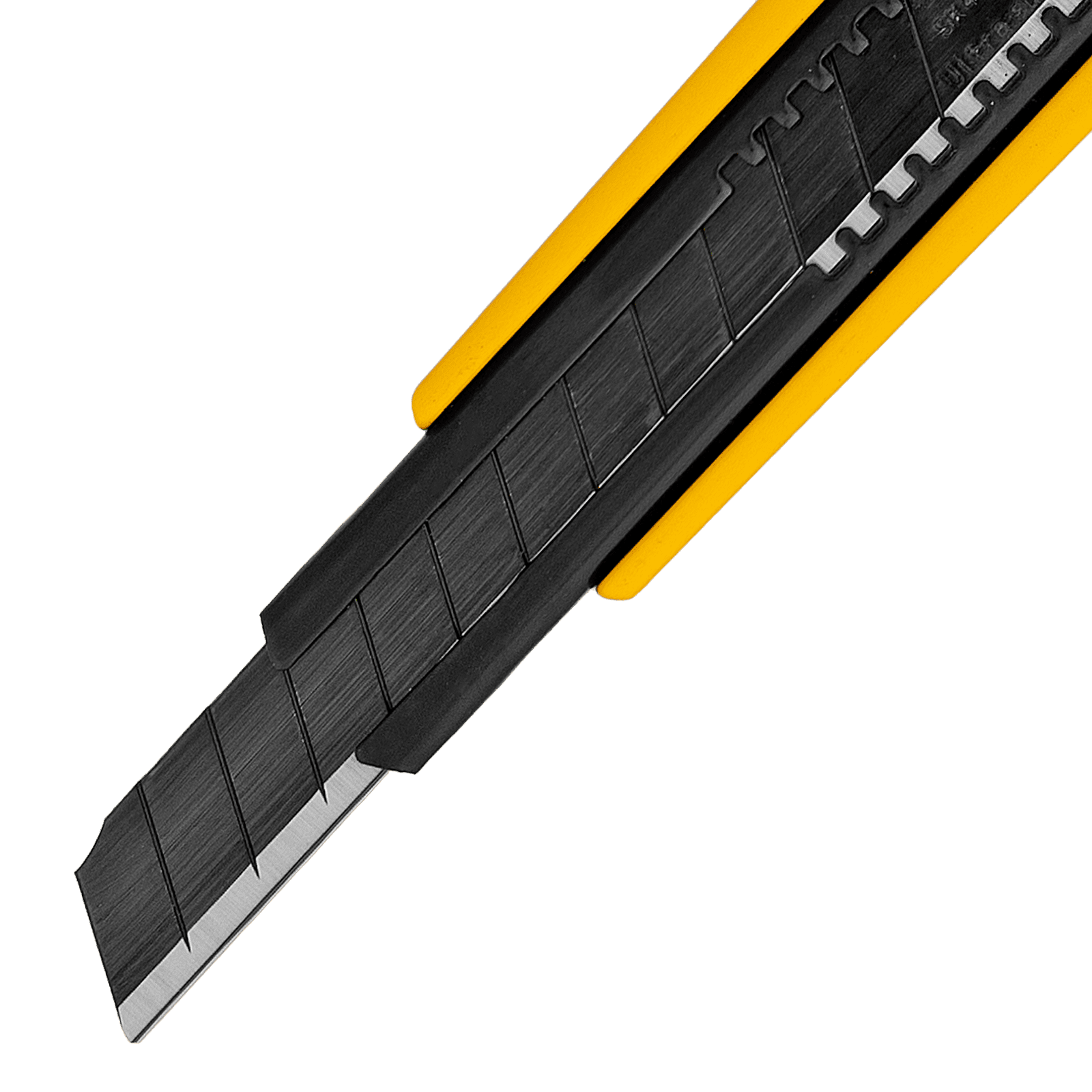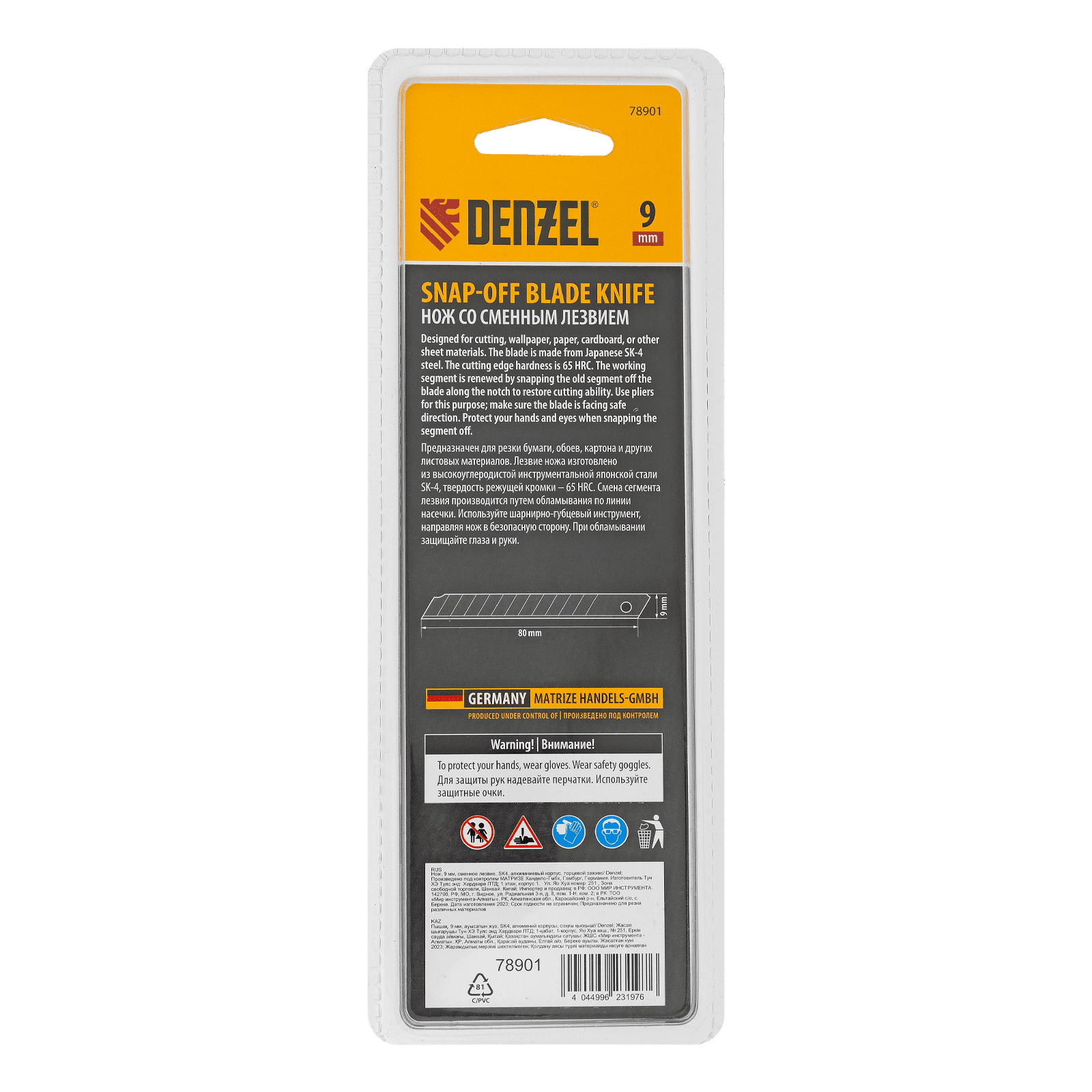 Нож Denzel 78901 выполнен в алюминиевом корпусе, оснащен сменным лезвием шириной 9 мм, изготовленным из стали SK4 по технологии UltraSharp, и торцевым зажимом. Острое выдвижное лезвие легко режет бумагу, обои, картон и другие листовые материалы. Нож будет полезен для проведения профессиональных ремонтных и отделочных работ, пригодится также в домашнем хозяйстве.
