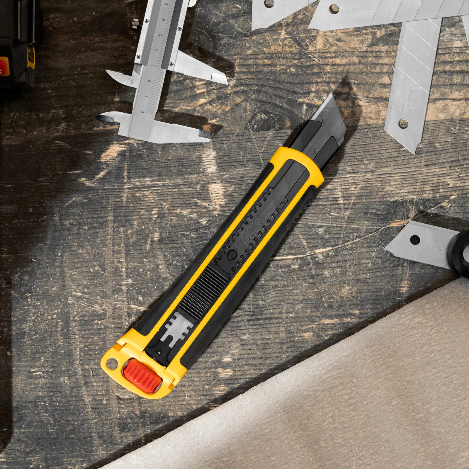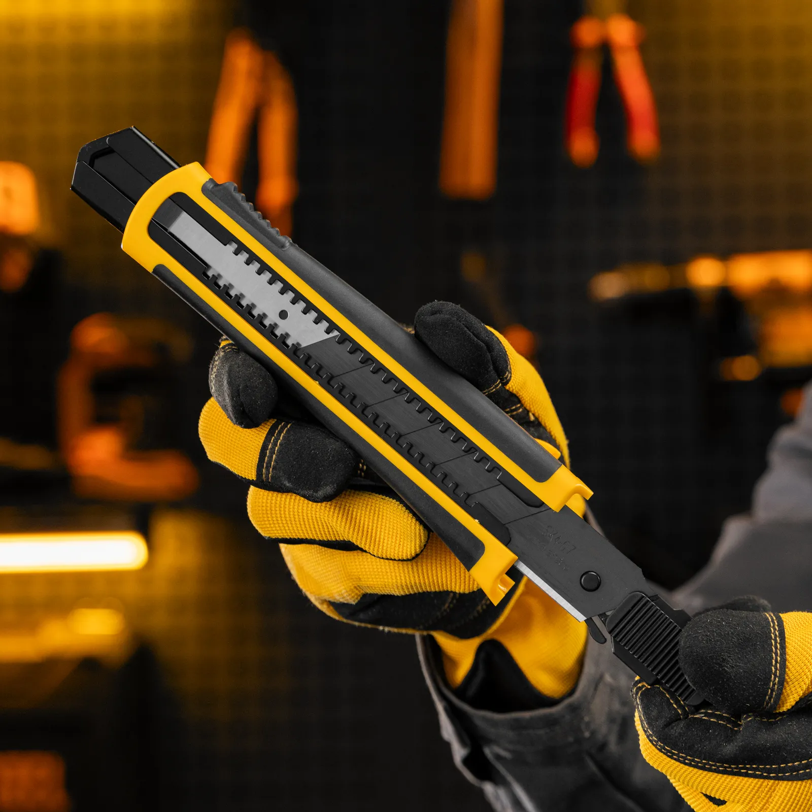 - Повышенная прочность — за счет увеличенного количества материала корпуса (ABS + TPR) можно работать со значительным усилием без риска поломки ножа.