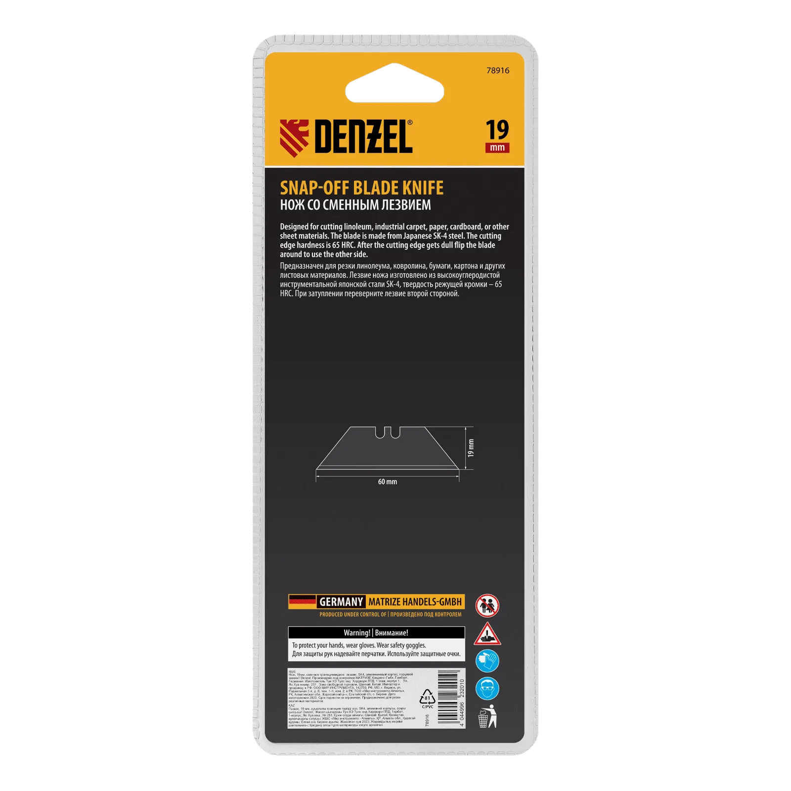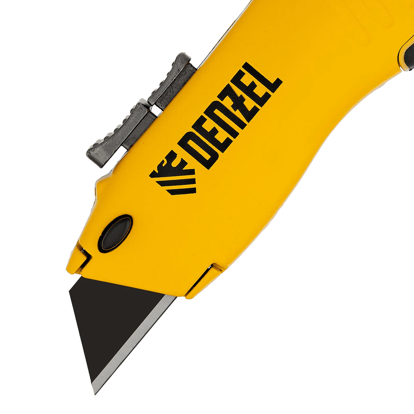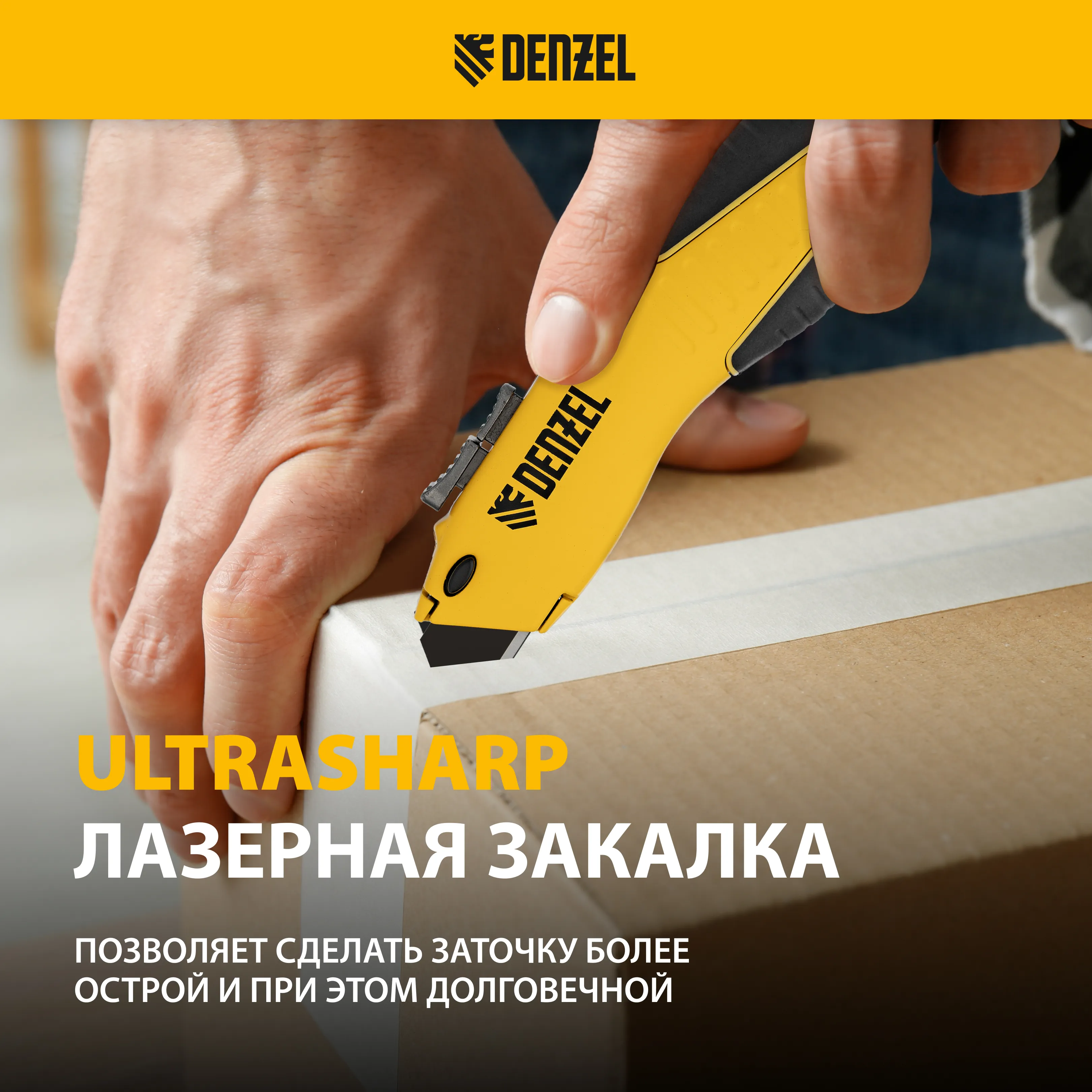 Нож Denzel 78916 выполнен в алюминиевом корпусе, оснащен сменным трапециевидным лезвием шириной 19 мм, изготовленным из стали SK4 по технологии UltraSharp, и торцевым зажимом. Сверхострое выдвижное лезвие легко режет бумагу, картон, кожу и другие нетвердые материалы. Нож станет незаменимым помощником на строительной площадке, на кухне, в офисе.