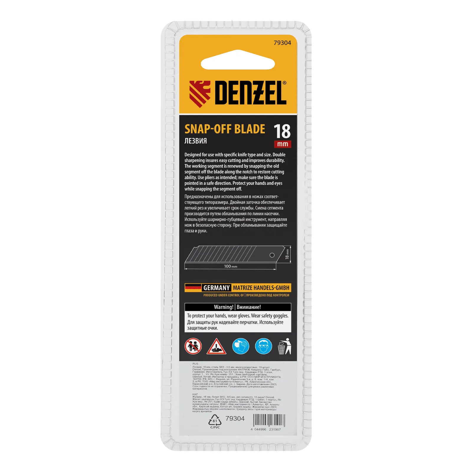 Многосегментные лезвия Denzel 79304 шириной 18 мм, изготовленные из стали SK5 толщиной 0,5 мм, 10 шт. в упаковке, — сменные рабочие элементы для монтажных ножей соответствующего типоразмера. Подходят для разрезания твердых материалов, линолеума, пластика, гипсокартона, а также картона, пленки, обоев. Обеспечивают легкий рез. Отличаются повышенной прочностью и долговечностью по сравнению с аналогами других торговых марок. Лезвия остро заточены и хорошо гнутся, могут применяться для проведения строительных и отделочных работ, а также в бытовых целях.
