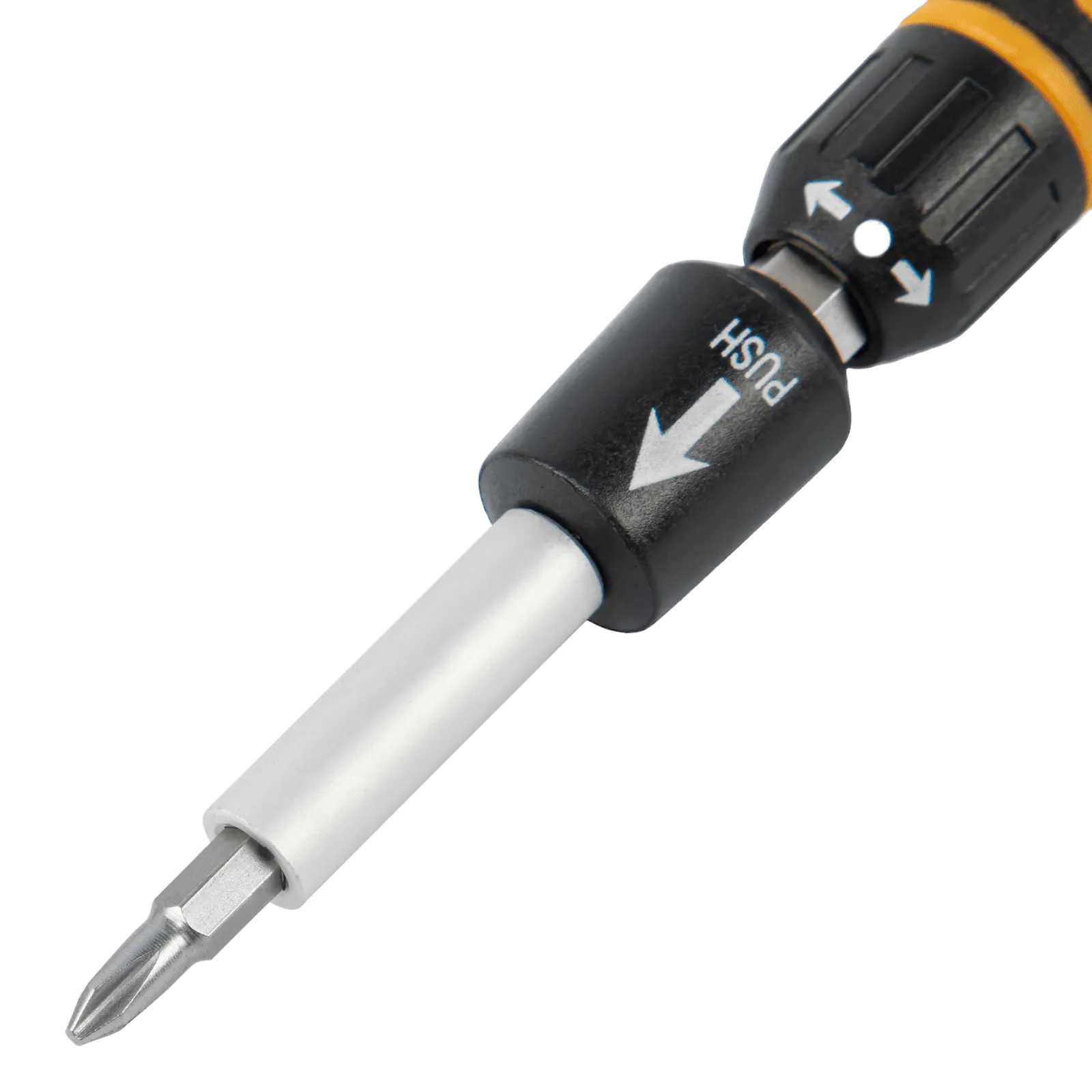 - Удобная эксплуатация — реверсивный механизм значительно повышает скорость работы, а вращающийся затыльник позволяет поворачивать отвертку перебором пальцев.