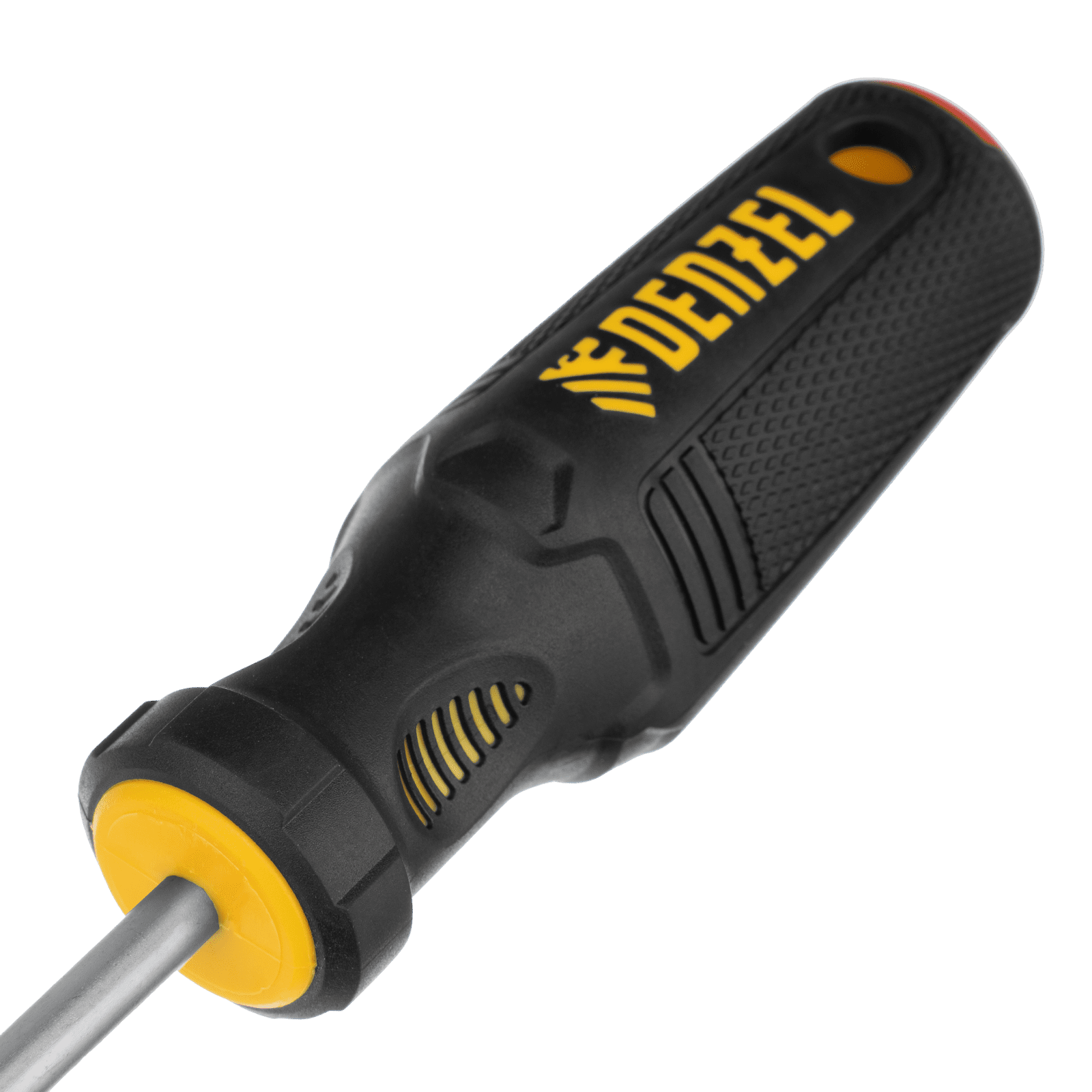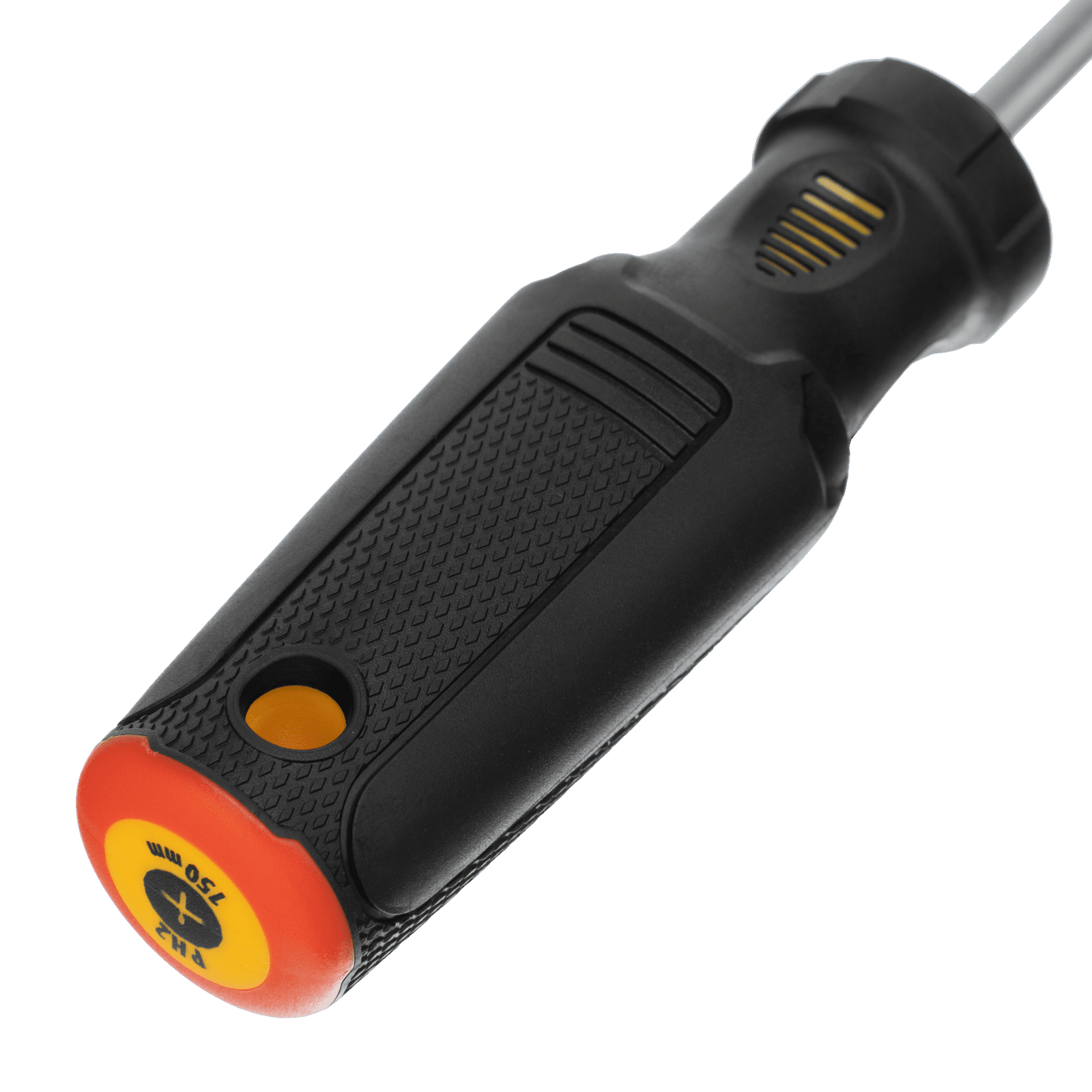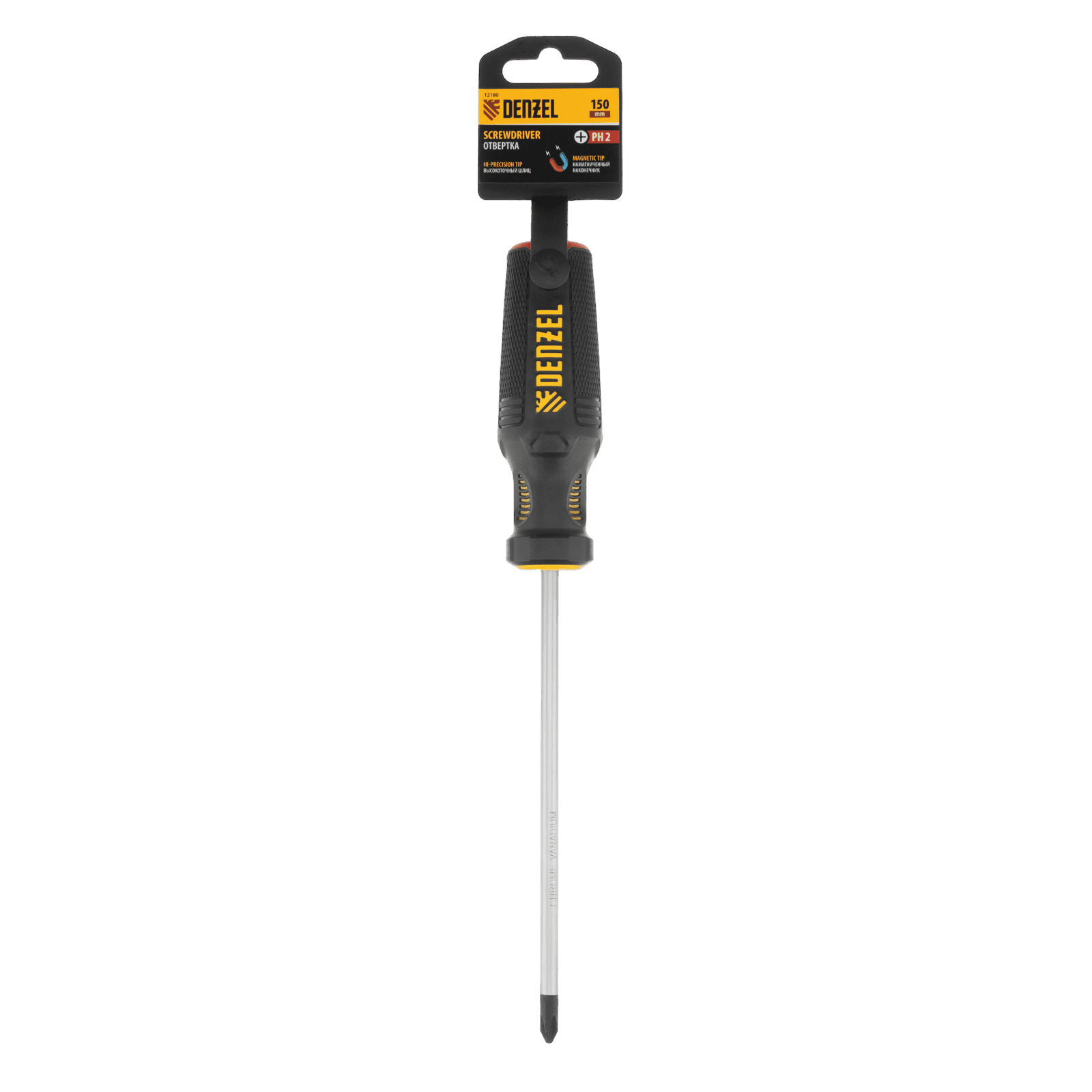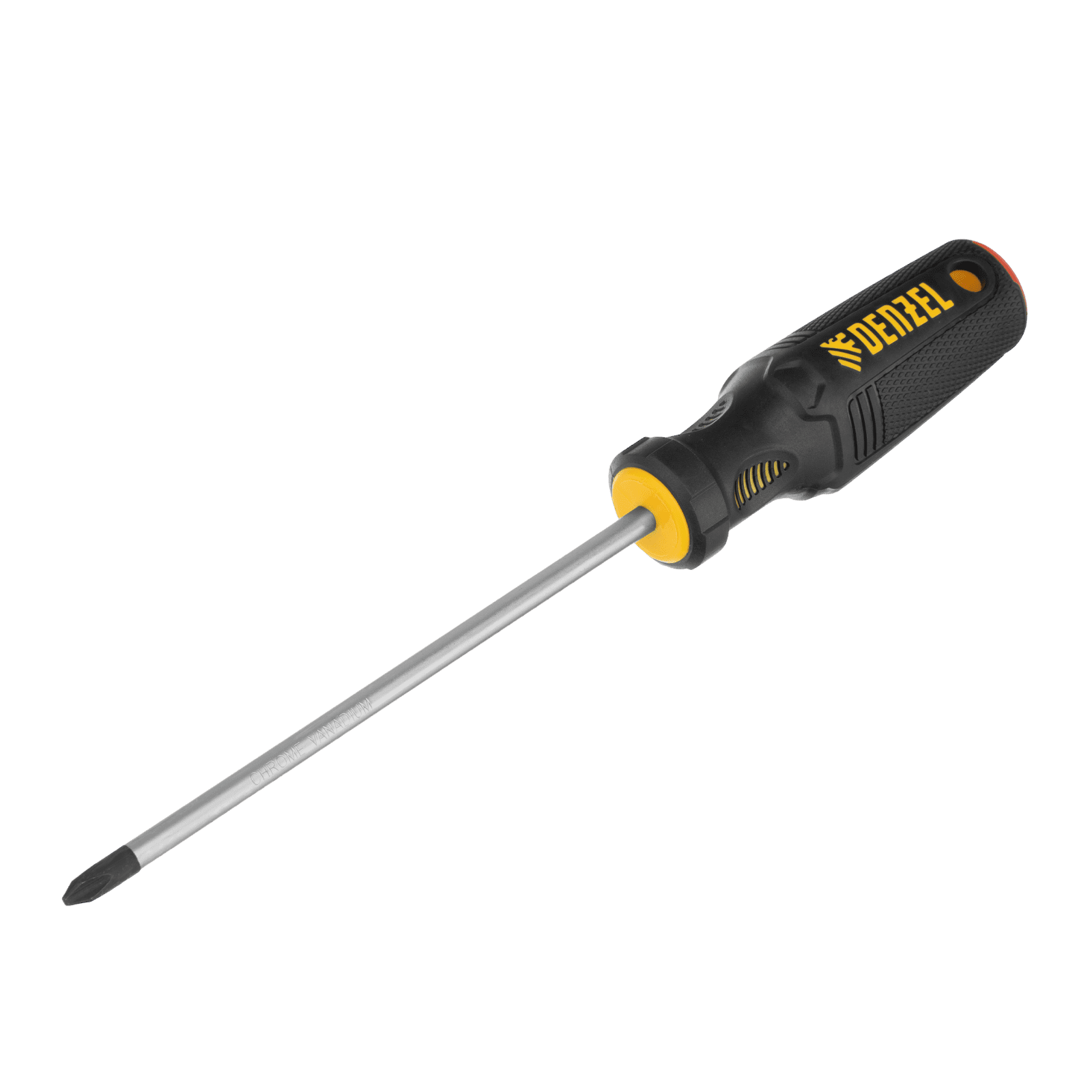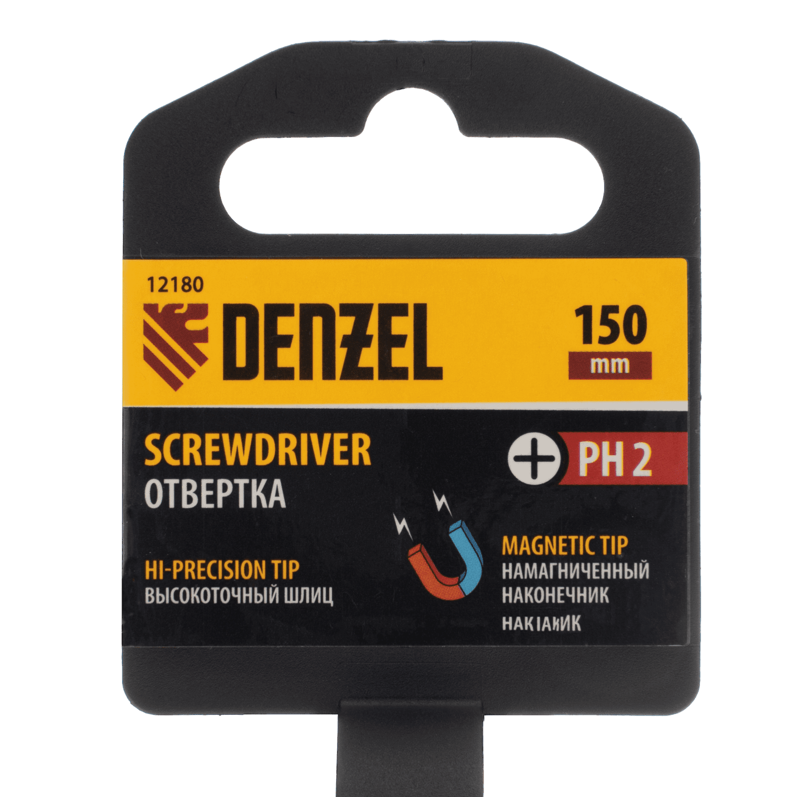 Отвертка PH2 х 150 мм Denzel 12180 из стали CrV, с трехкомпонентной рукояткой, предназначена для закручивания и откручивания резьбовых крепежей типа Philips. Шлиц намагничен, что избавляет от необходимости придерживать винт или саморез рукой. Отвертка рекомендована для профессионального использования.