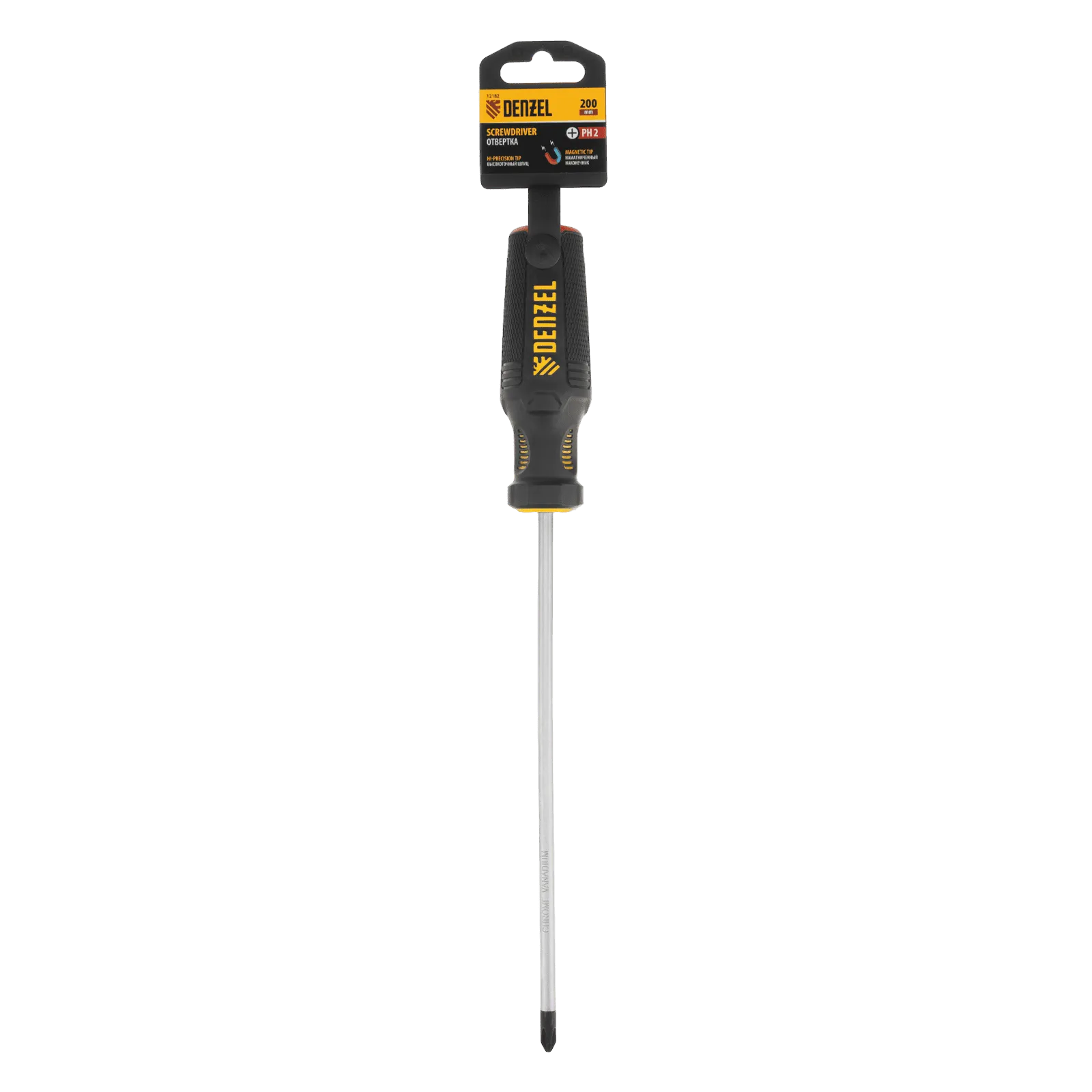 Отвертка PH2 х 200 мм Denzel 12182 из стали CrV, с трехкомпонентной рукояткой, предназначена для закручивания и откручивания резьбовых крепежей типа Philips. Шлиц намагничен, что избавляет от необходимости придерживать винт или саморез рукой. Отвертка рекомендована для профессионального использования.