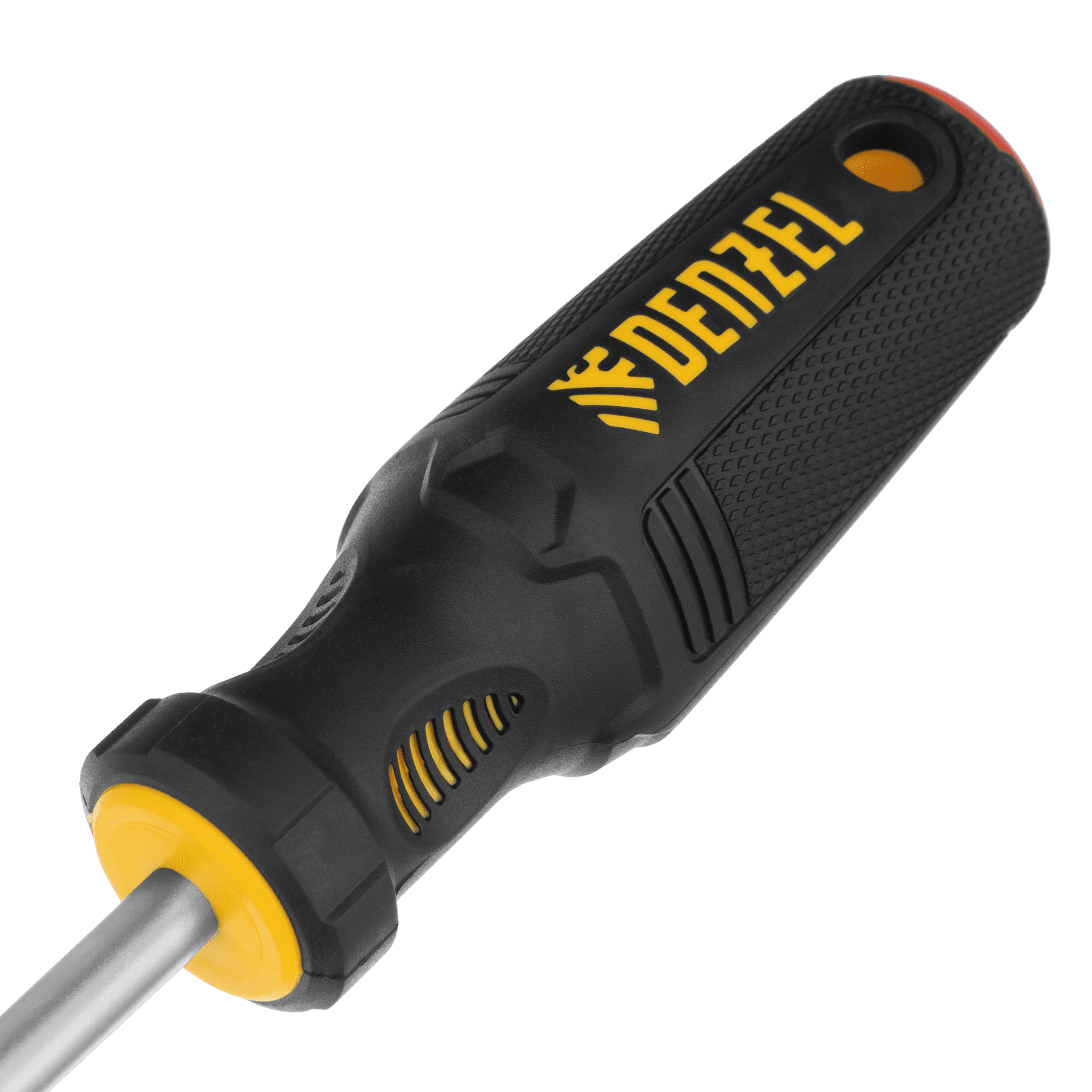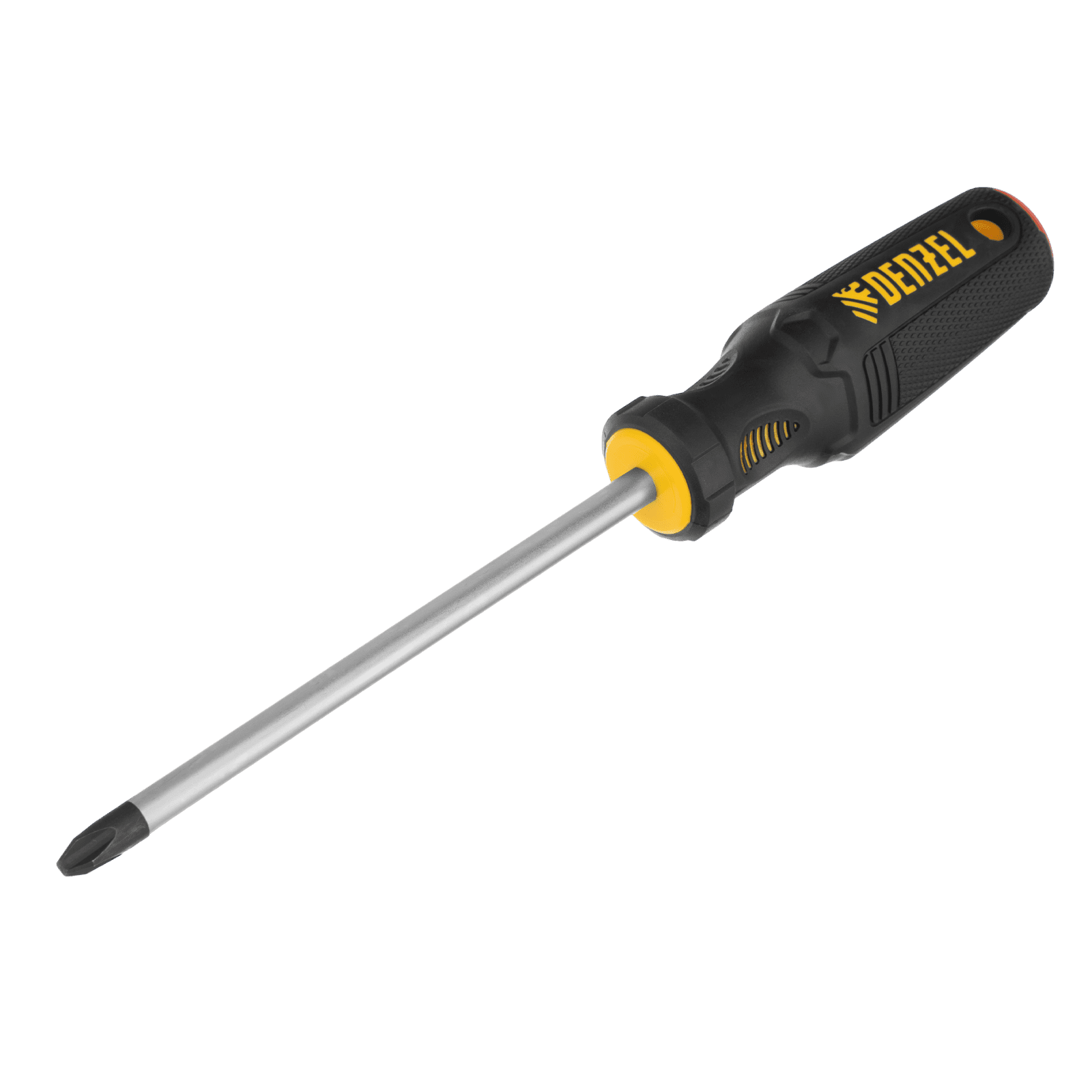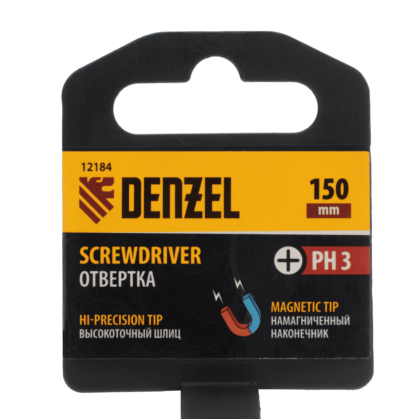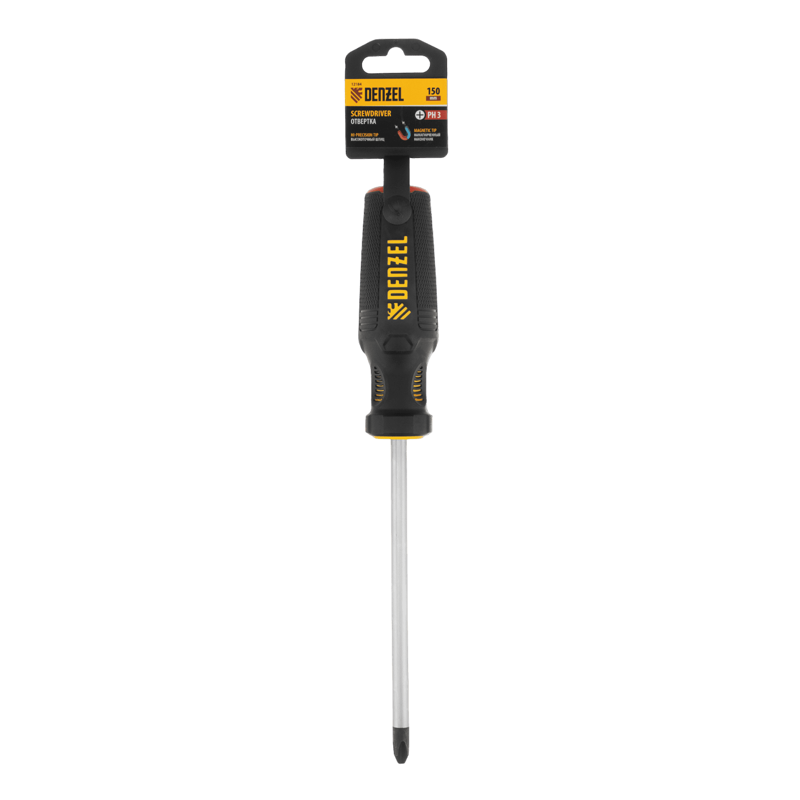 Отвертка PH3 х 150 мм Denzel 12184 из стали CrV, с трехкомпонентной рукояткой, предназначена для закручивания и откручивания резьбовых крепежей типа Philips. Шлиц намагничен, что избавляет от необходимости придерживать винт или саморез рукой. Отвертка рекомендована для профессионального использования.