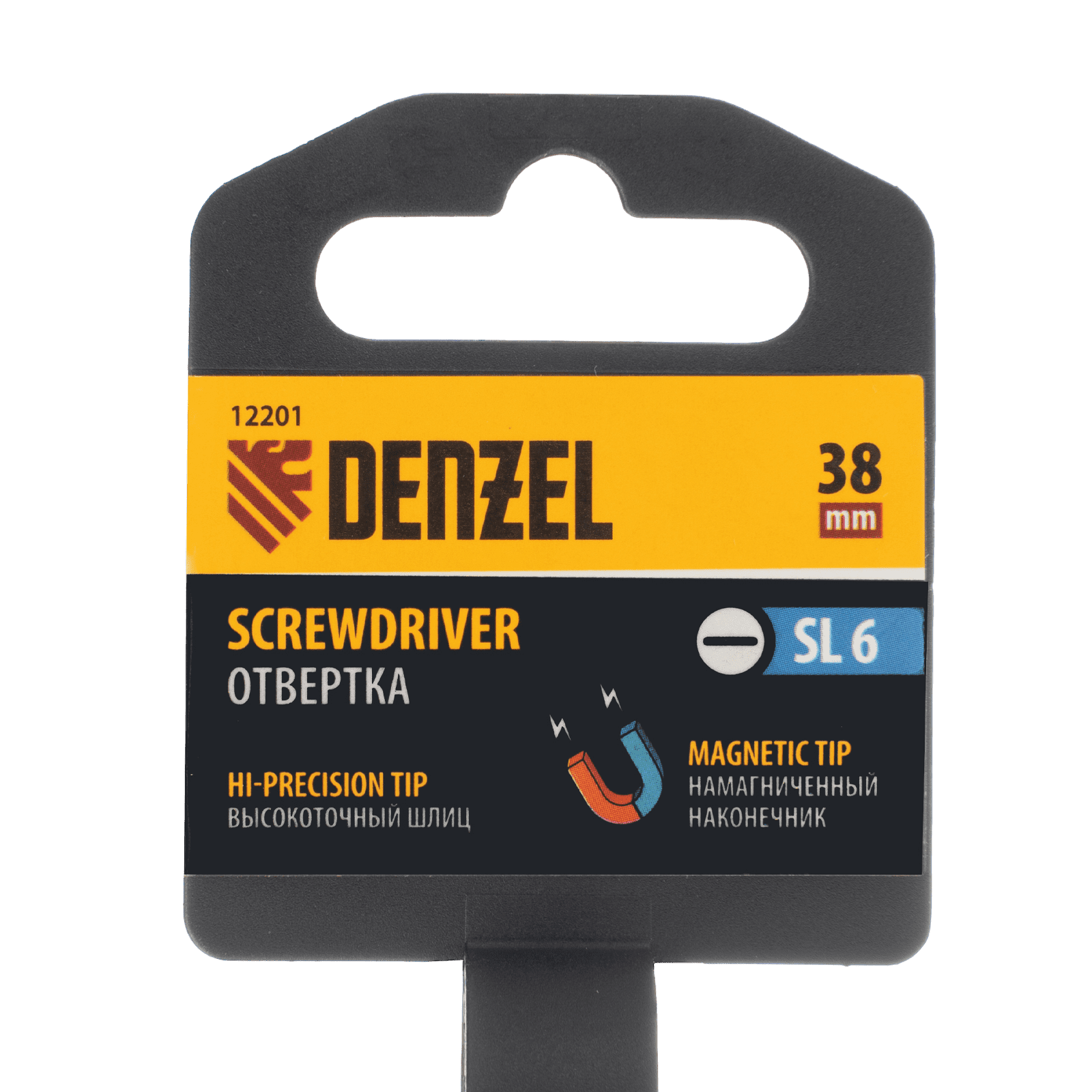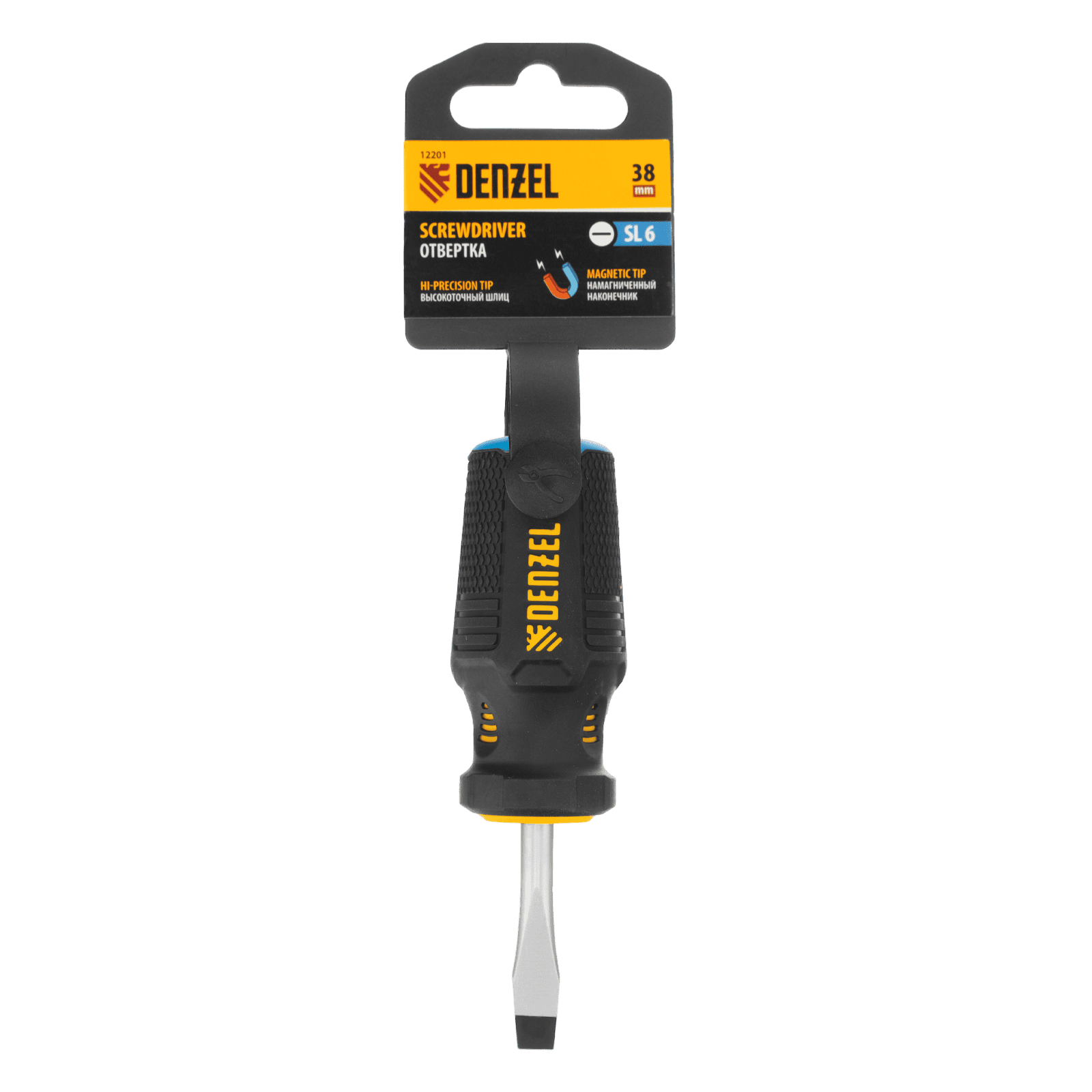 Отвертка SL6 х 38 мм Denzel 12201 из стали CrV, с трехкомпонентной рукояткой, используется для монтажа и демонтажа винтов и саморезов с прямым шлицем Slotted. Намагниченный шлиц крепко фиксируется в головке крепежа. Отвертка выдерживает интенсивное применение и предназначена для выполнения профессиональных ремонтных и монтажных работ.