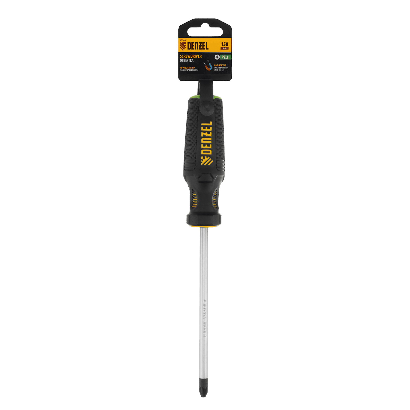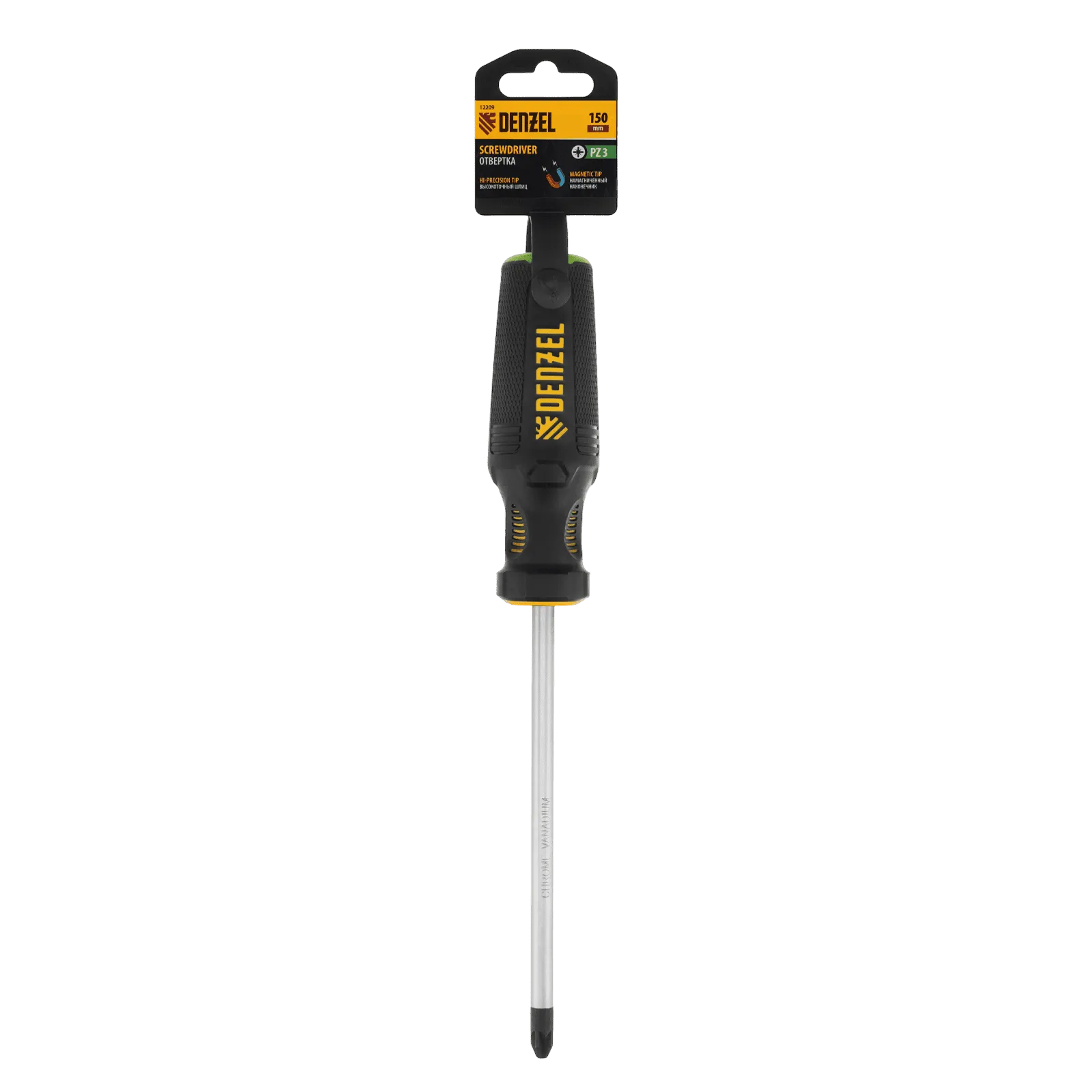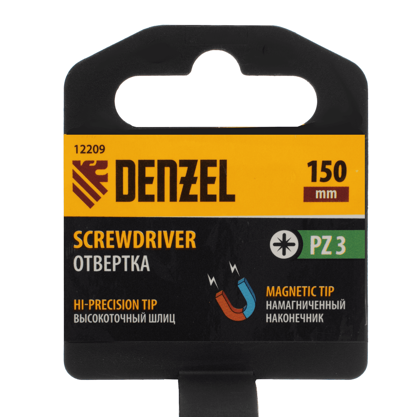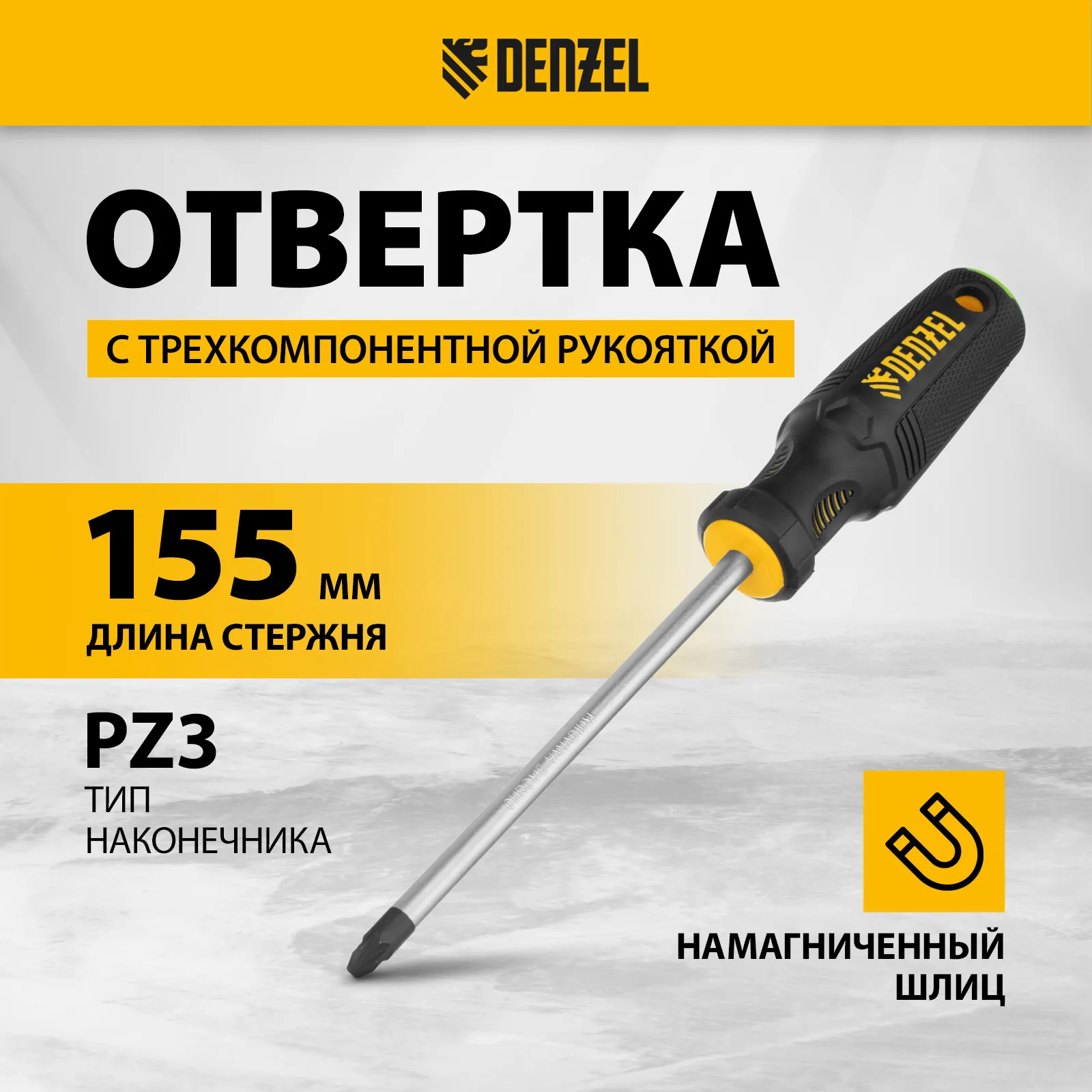 Отвертка PZ3 x 150 мм Denzel 12209 из стали CrV, c трехкомпонентной рукояткой, предназначена для монтажных и демонтажных работ с резьбовыми соединениями типа Pozidriv. Благодаря намагниченному шлицу отвертку с крепежом можно направлять одной рукой, удерживая другой закрепляемую деталь. Инструмент подходит для профессионального использования.