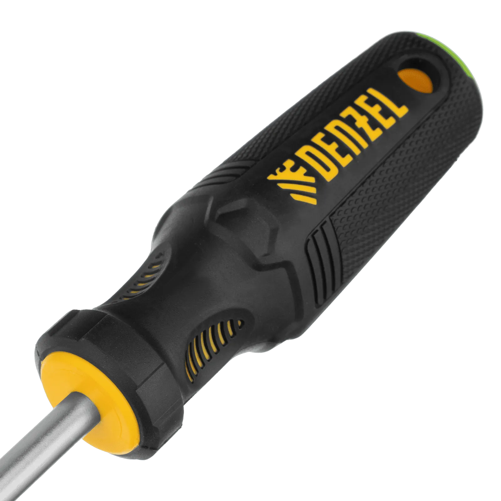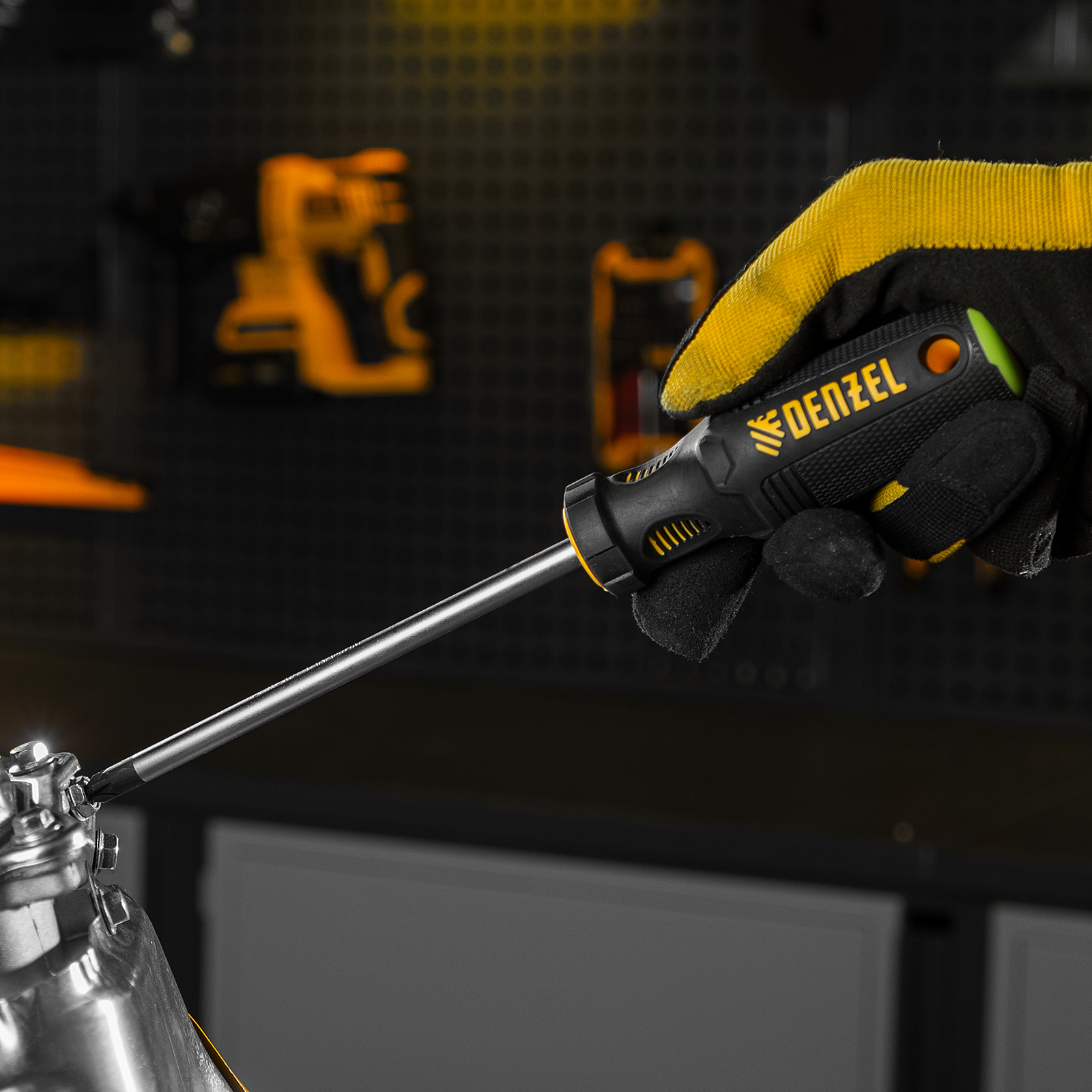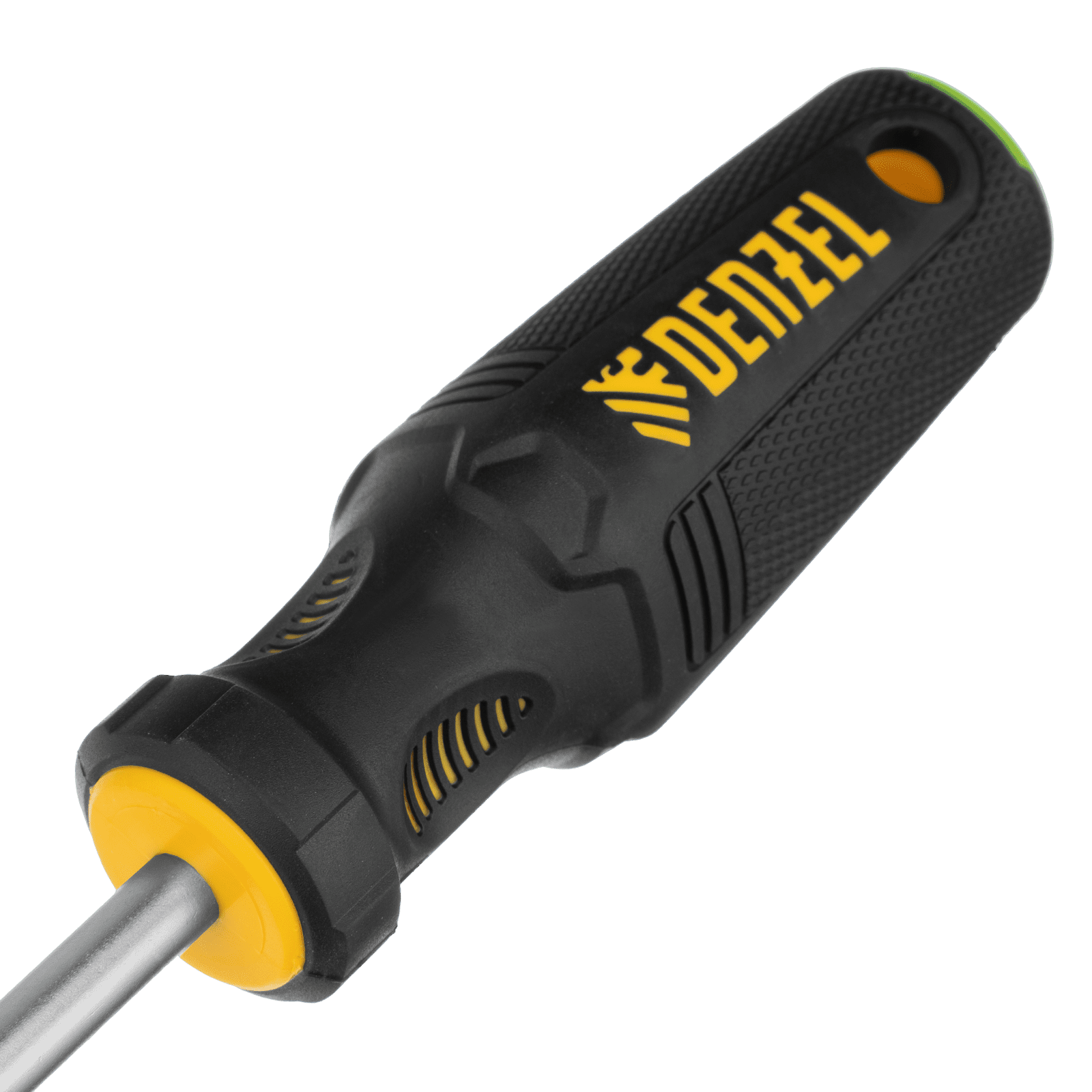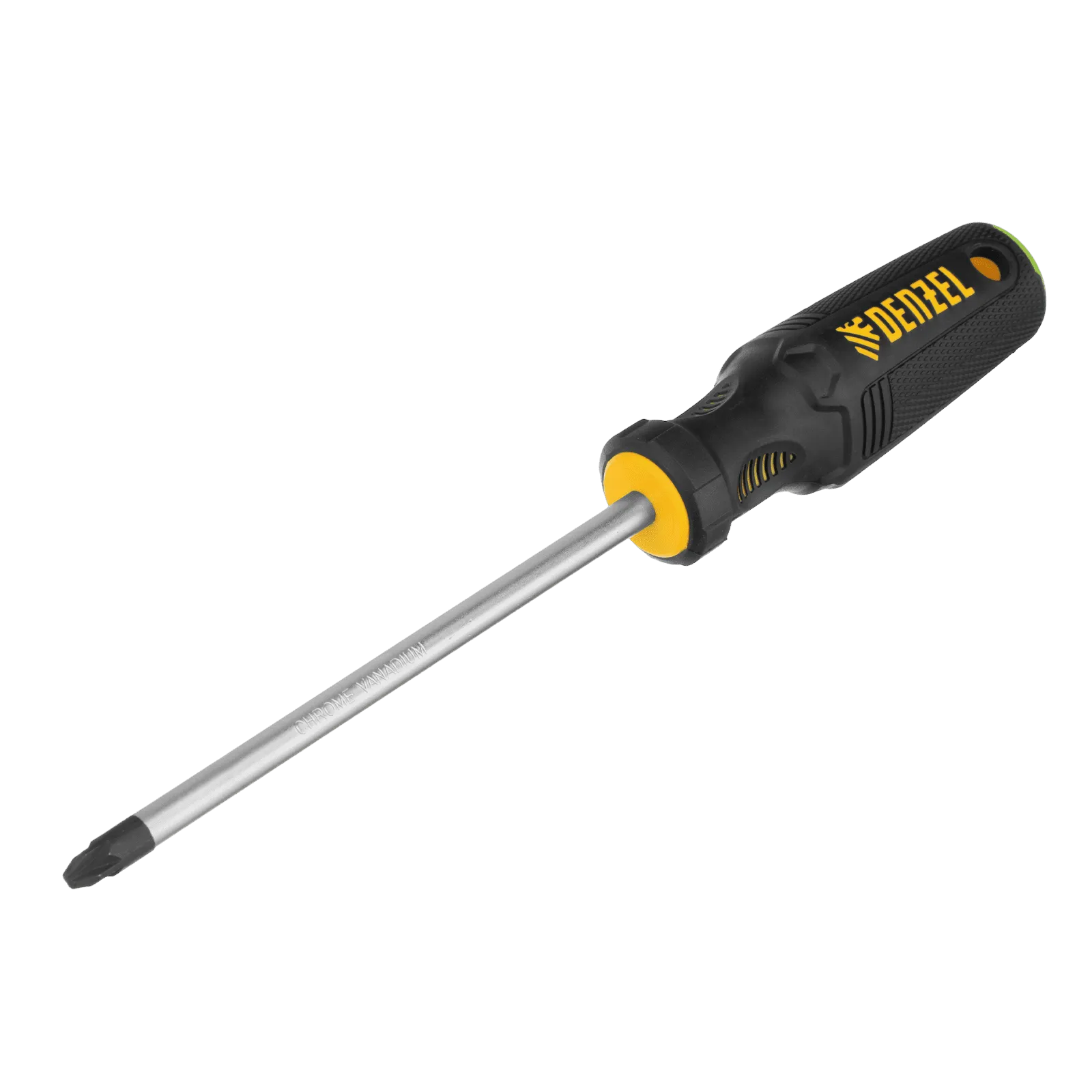 Отвертка PZ3 x 150 мм Denzel 12209 из стали CrV, c трехкомпонентной рукояткой, предназначена для монтажных и демонтажных работ с резьбовыми соединениями типа Pozidriv. Благодаря намагниченному шлицу отвертку с крепежом можно направлять одной рукой, удерживая другой закрепляемую деталь. Инструмент подходит для профессионального использования.