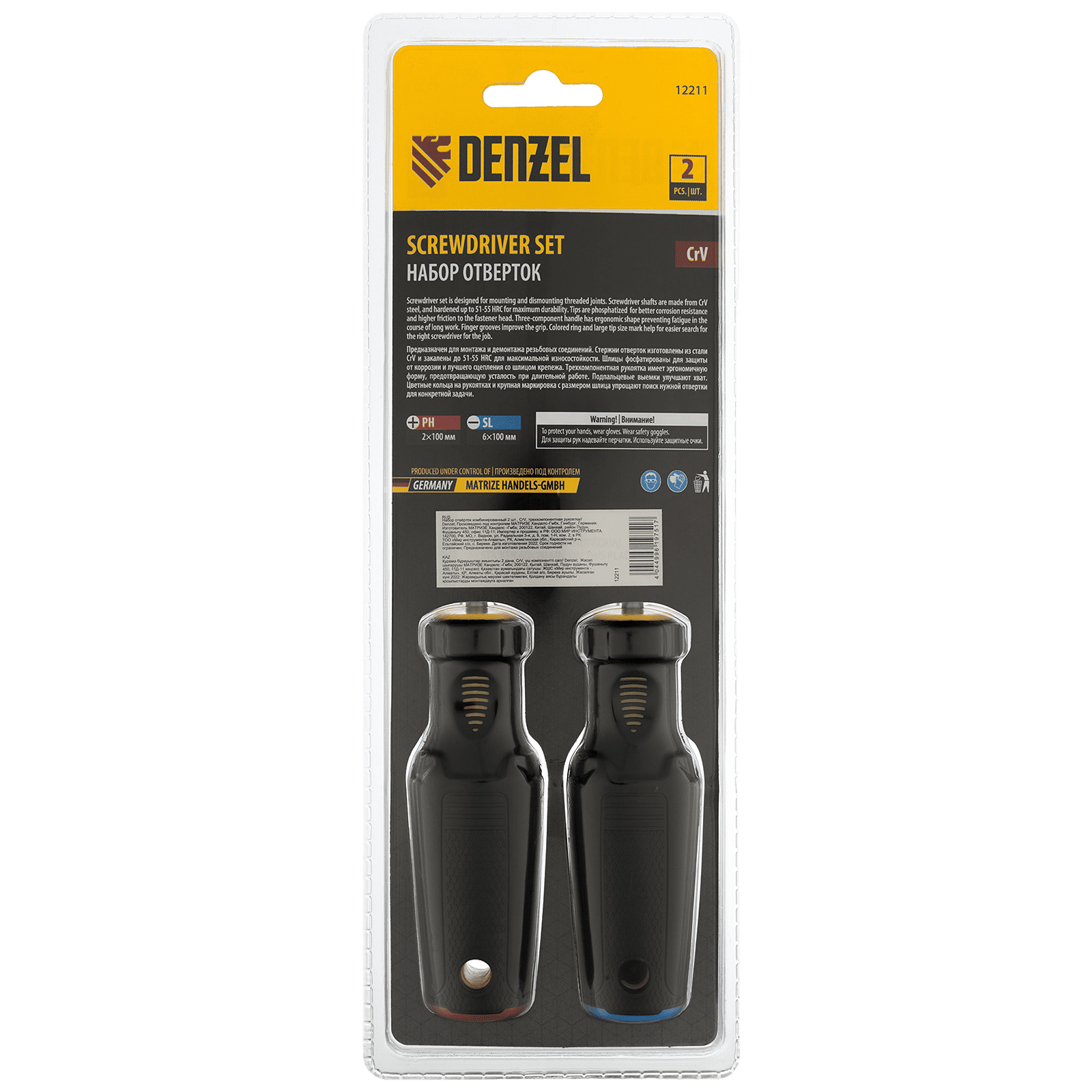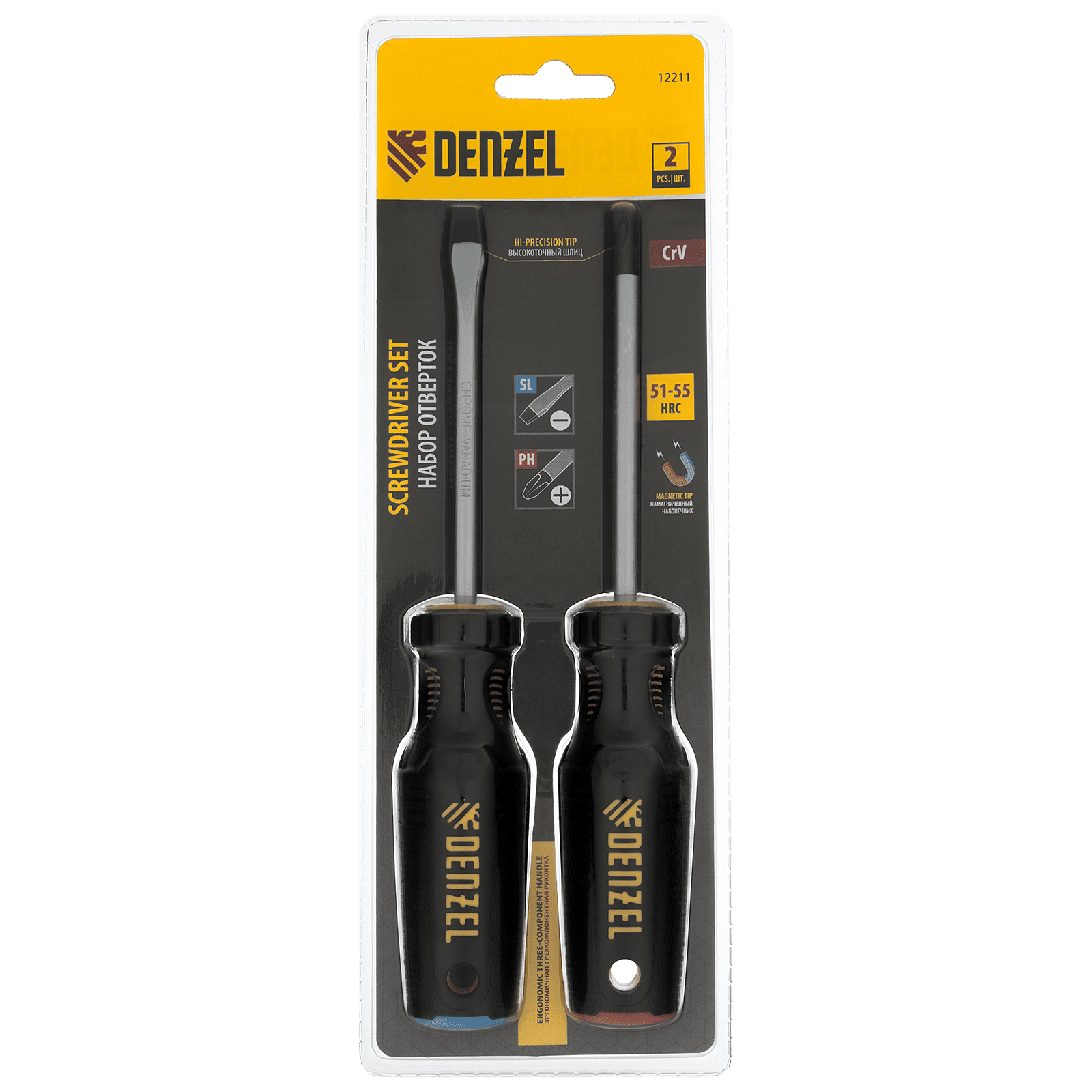 Комбинированный набор Denzel 12211 состоит из 2 отверток типоразмеров PH2 и SL6 длиной 100 мм, изготовленных из стали CrV, с трехкомпонентными рукоятками. Намагниченные шлицы позволяют направлять отвертку с крепежом одной рукой, а другой придерживать закрепляемую деталь. Набор предназначен для выполнения профессиональных монтажных и демонтажных работ с резьбовыми соединениями.