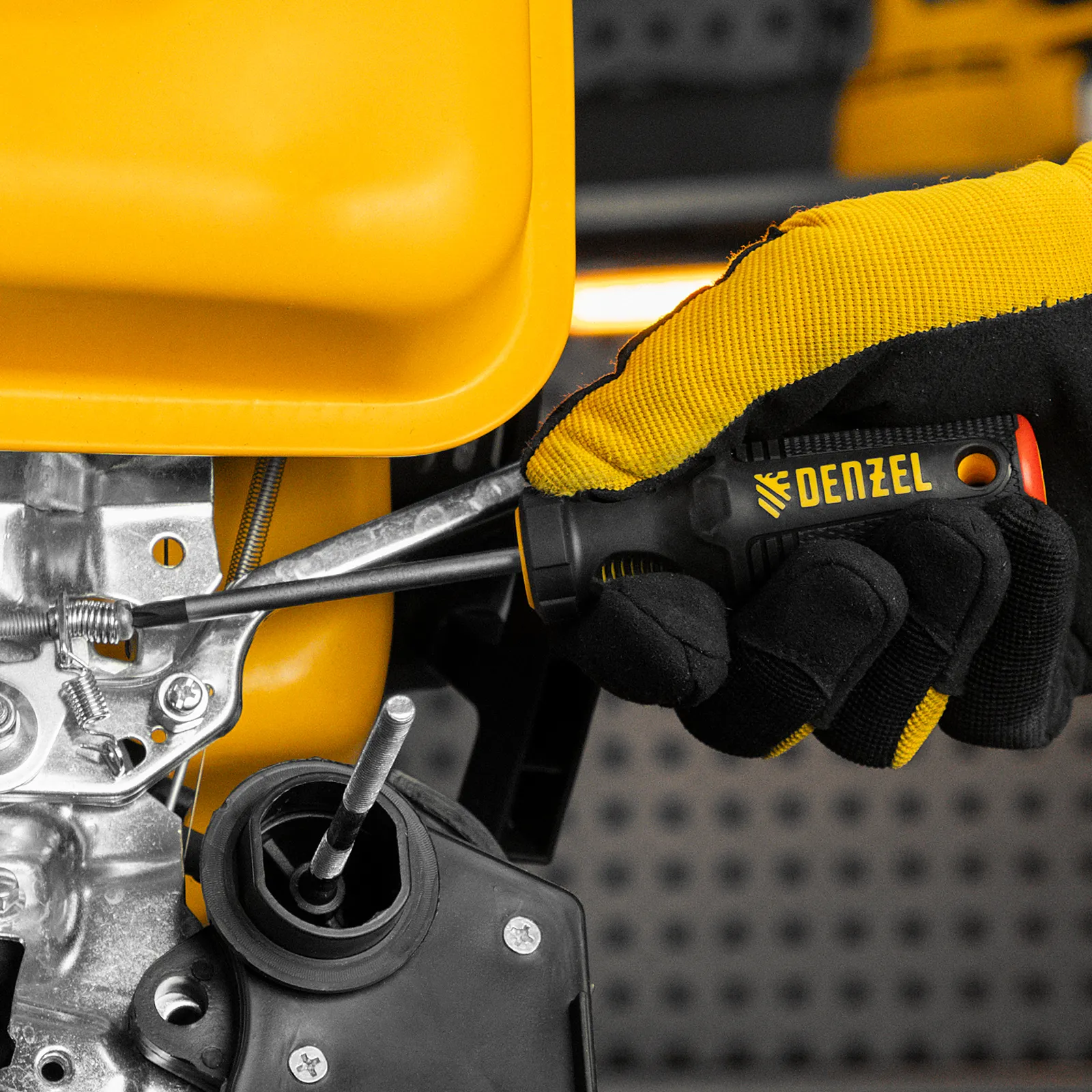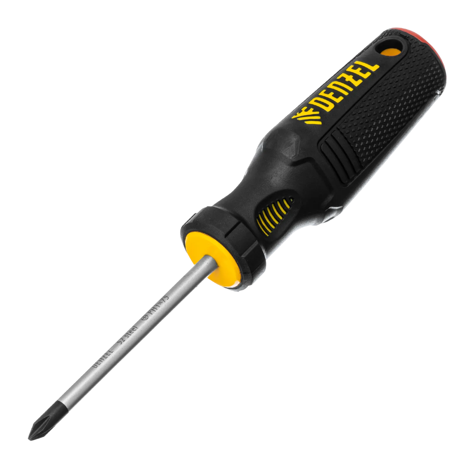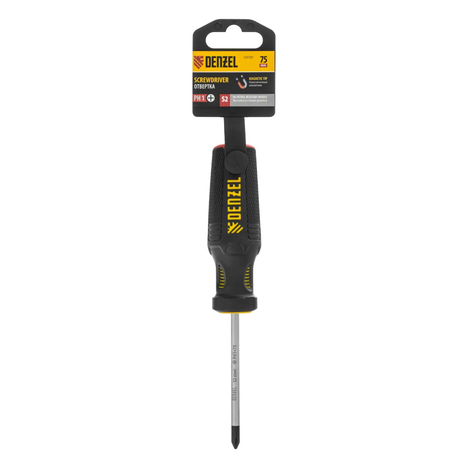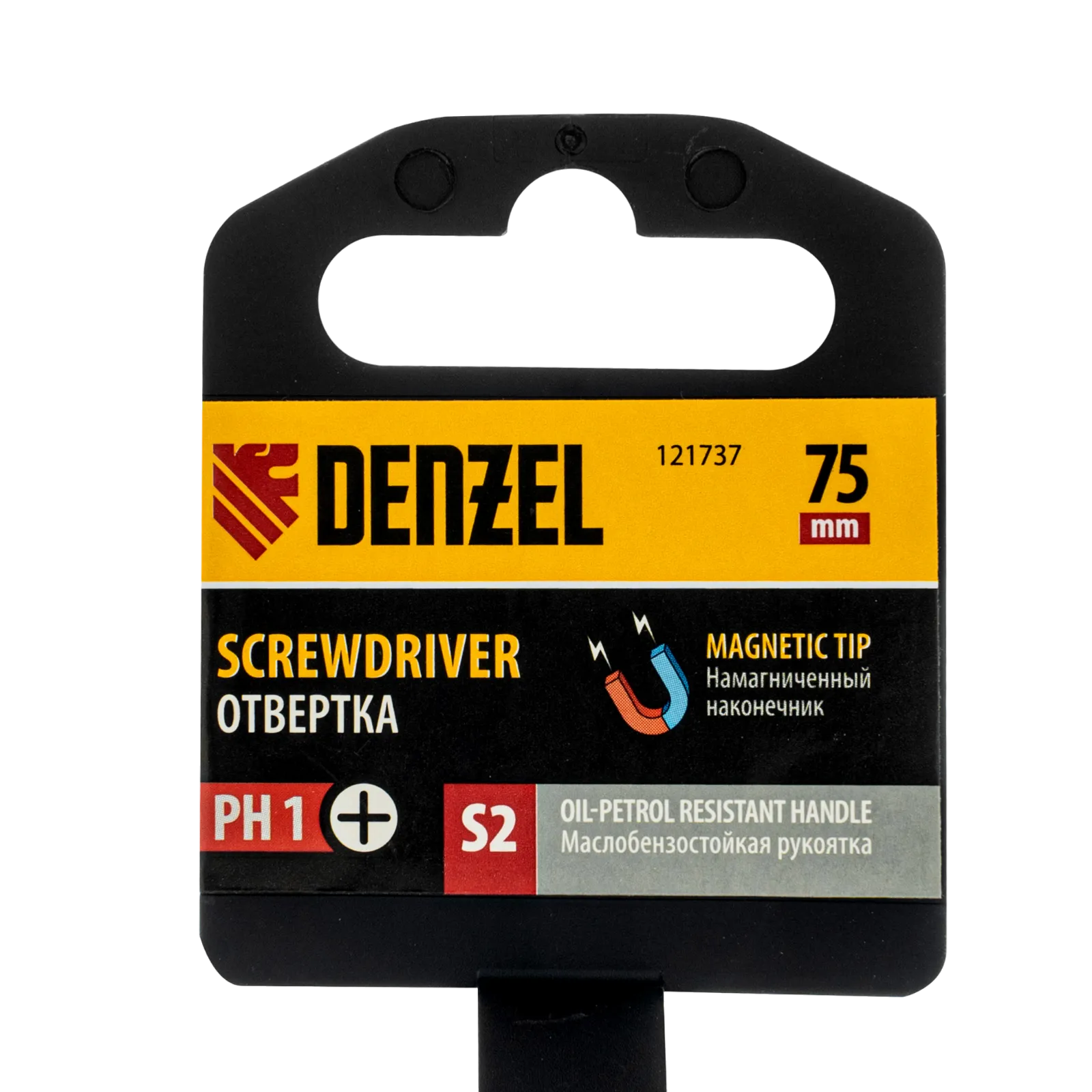Отвертка Denzel 121737 с трехкомпонентной рукояткой, со стержнем из стали S2, длиной 75 мм, предназначена для закручивания и откручивания резьбового крепежа типа PH1. Высокоточный намагниченный шлиц избавляет мастера от необходимости придерживать винт или саморез рукой. Отвертка рекомендована для профессионального использования.