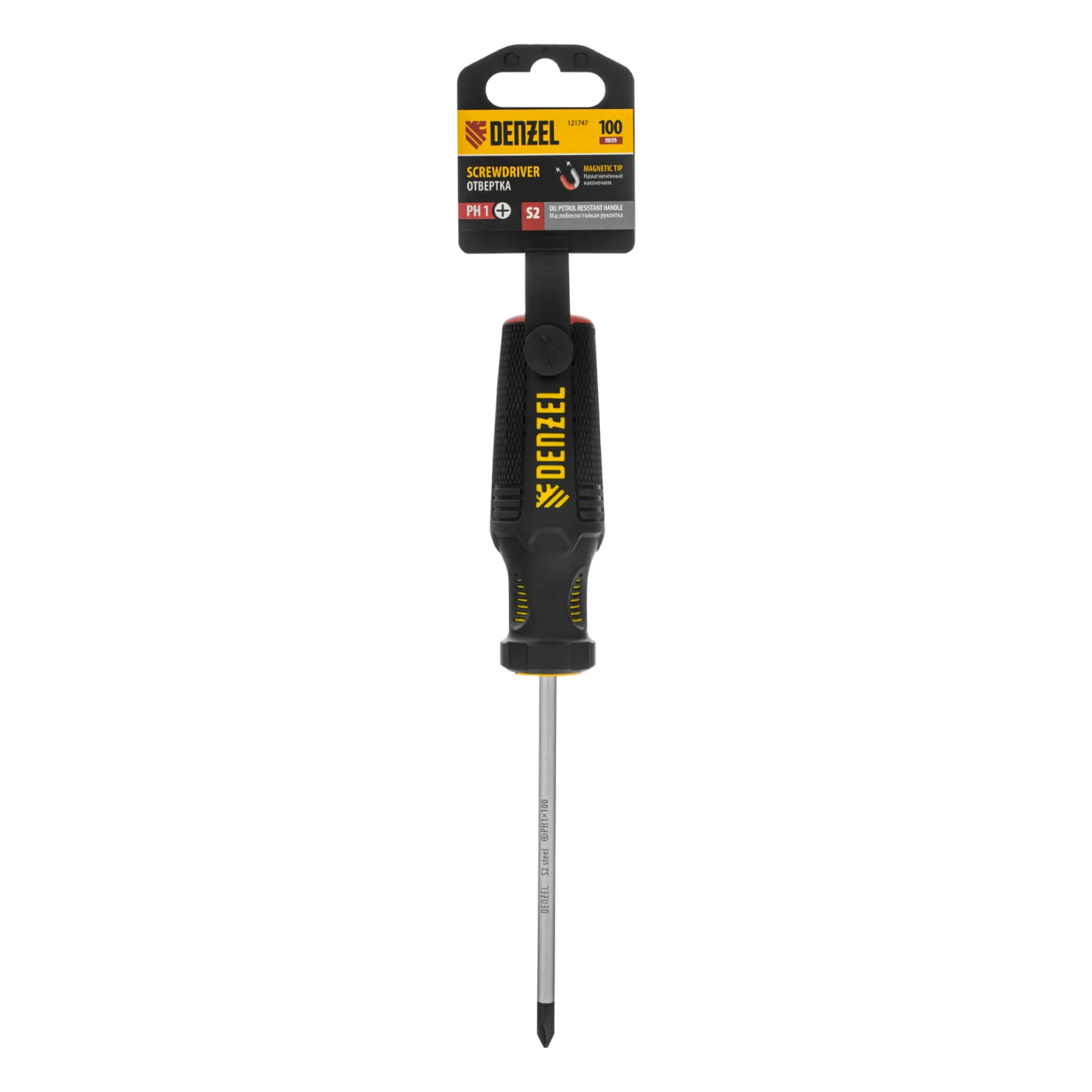 Отвертка Denzel 121747 с трехкомпонентной рукояткой, со стержнем из стали S2, длиной 100 мм, предназначена для закручивания и откручивания резьбового крепежа типа PH1. Высокоточный намагниченный шлиц избавляет мастера от необходимости придерживать винт или саморез рукой. Отвертка рекомендована для профессионального использования.