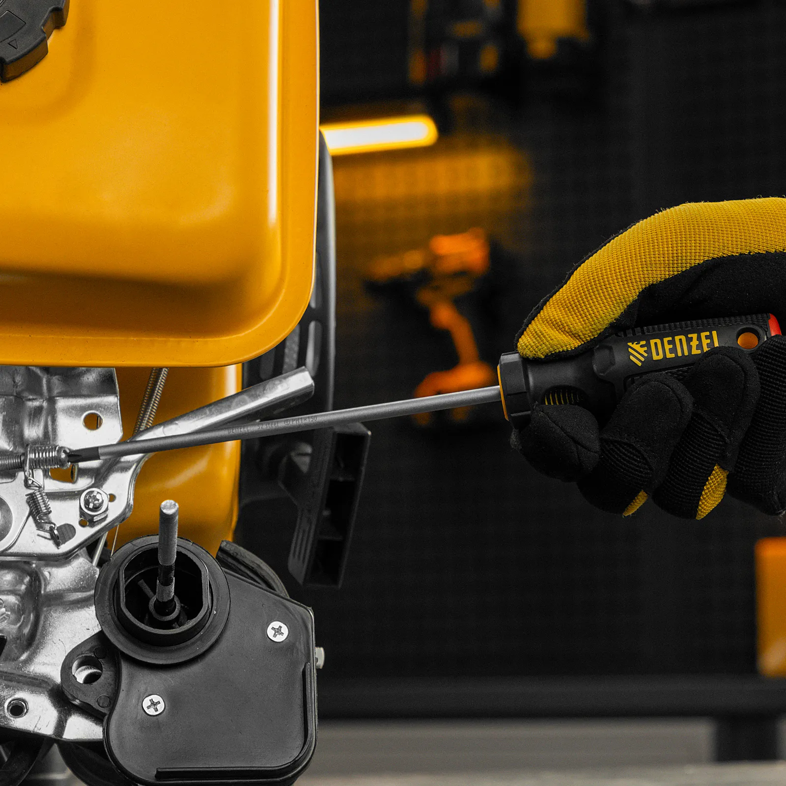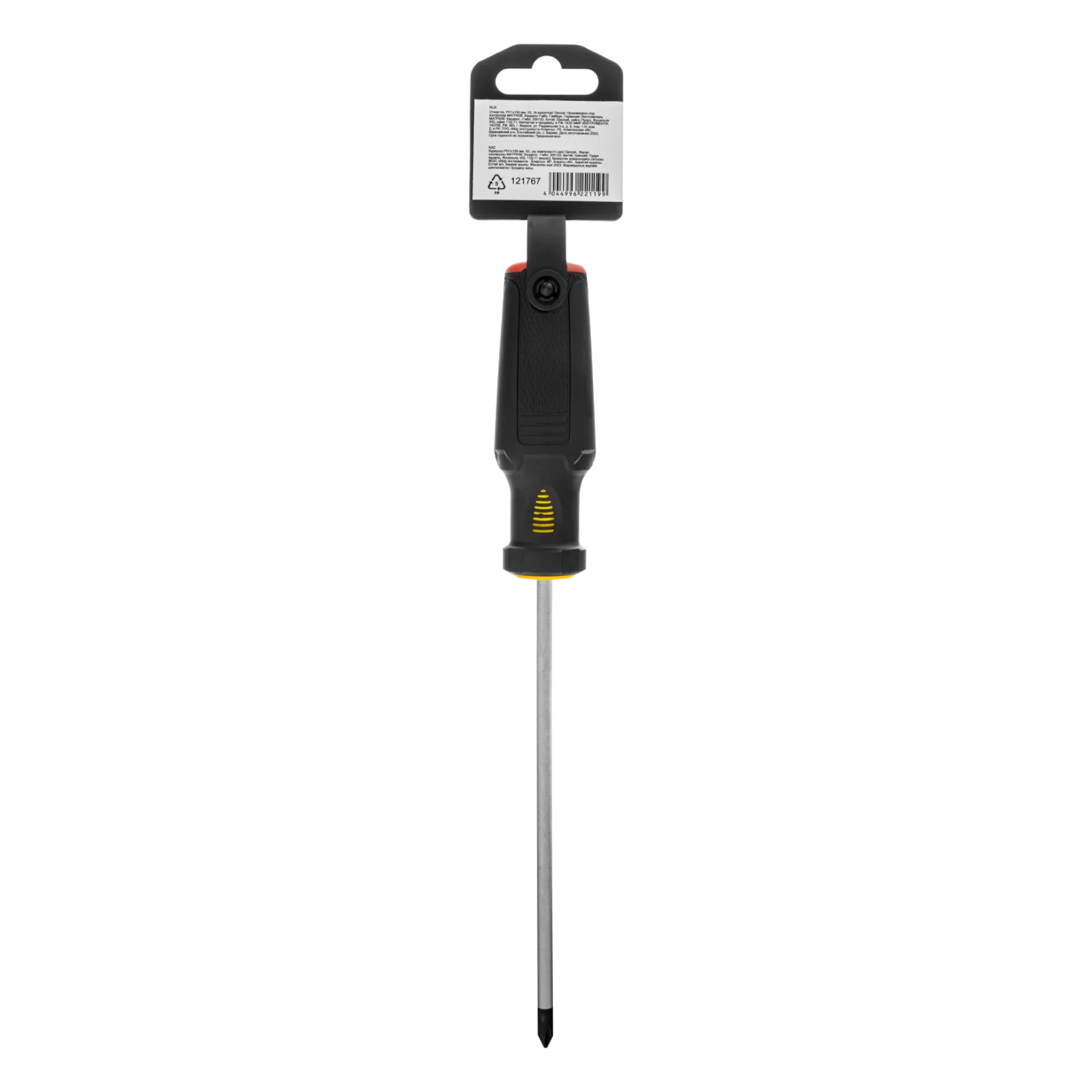 Отвертка Denzel 121767 с трехкомпонентной рукояткой, со стержнем из стали S2, длиной 150 мм, предназначена для закручивания и откручивания резьбового крепежа типа PH1. Высокоточный намагниченный шлиц избавляет мастера от необходимости придерживать винт или саморез рукой. Отвертка рекомендована для профессионального использования.