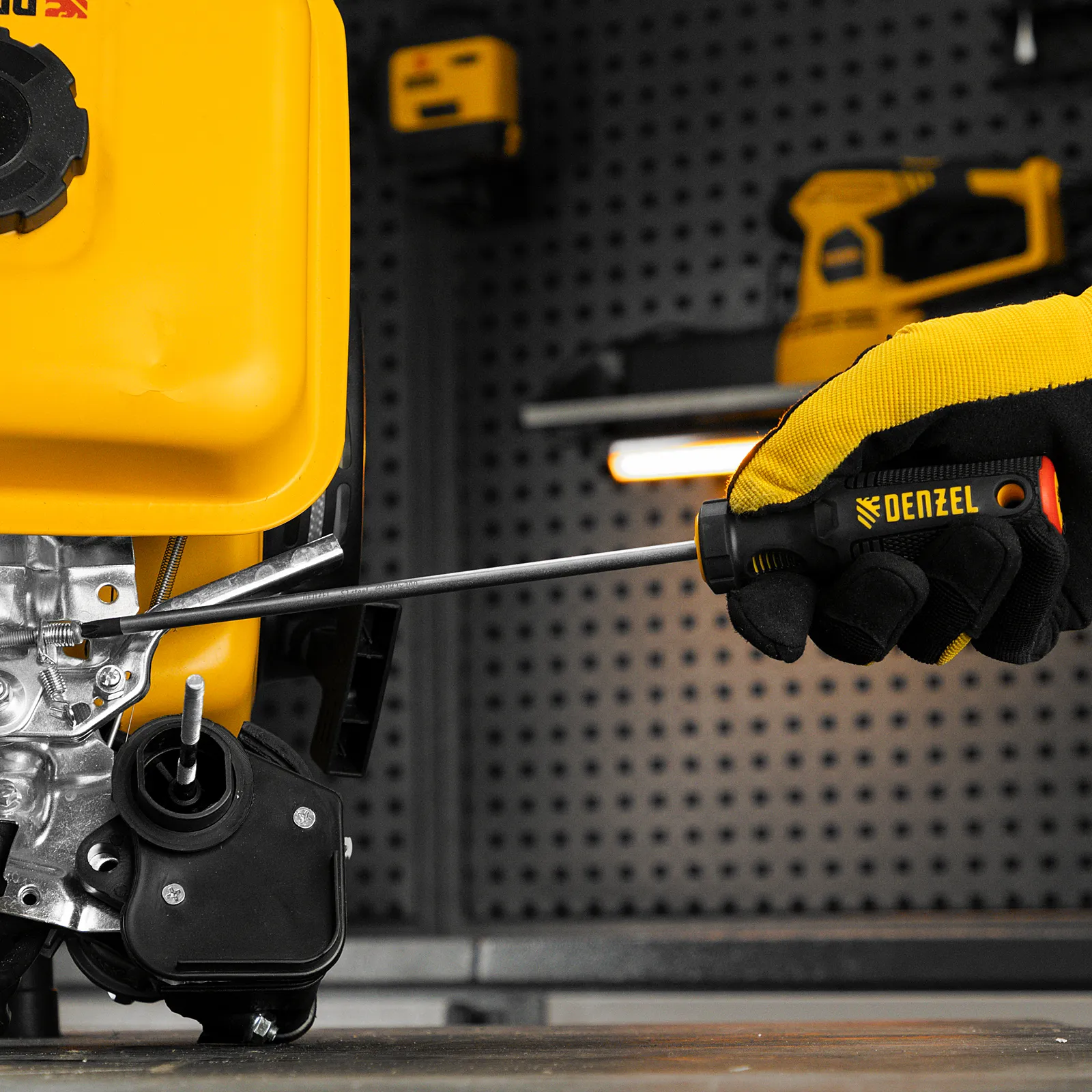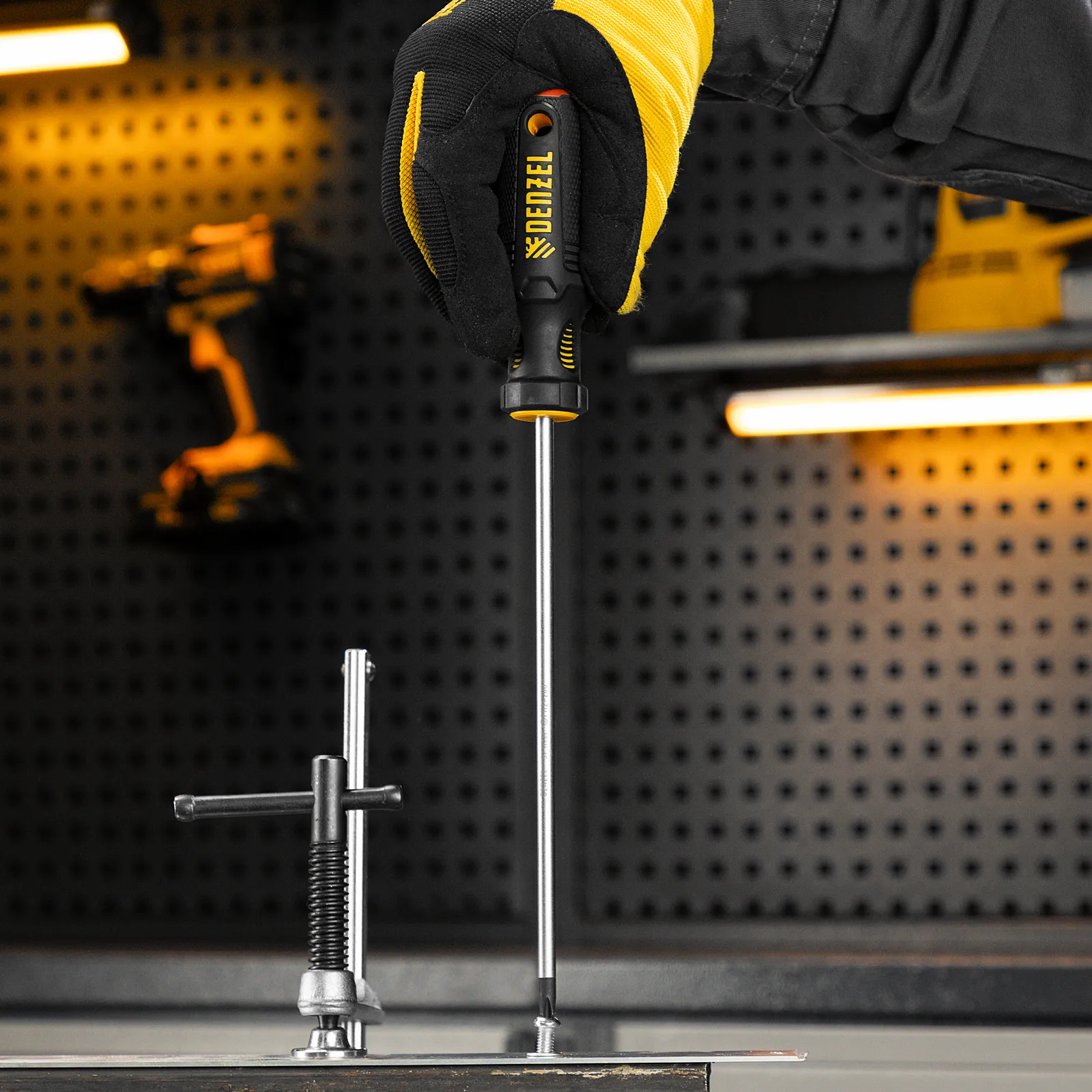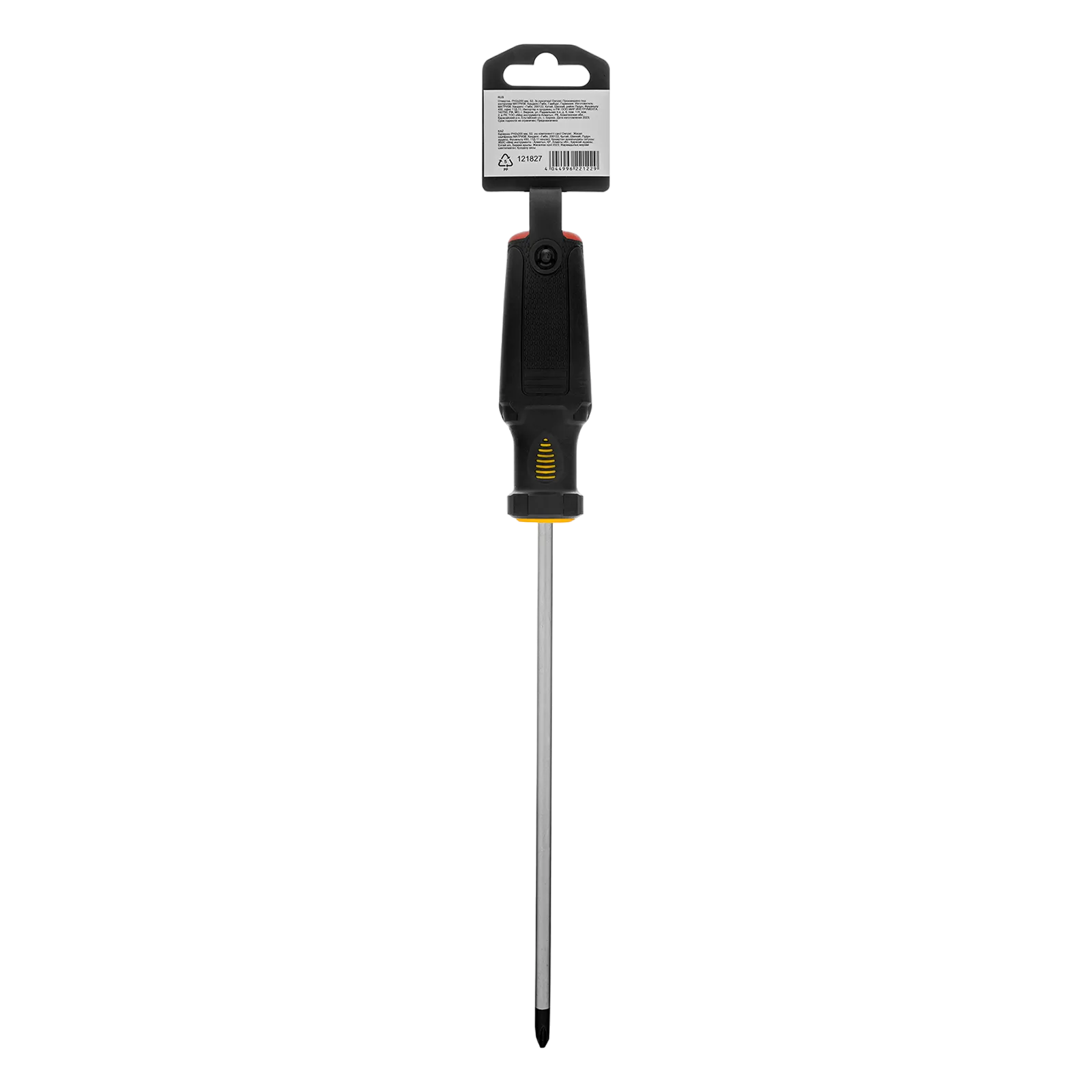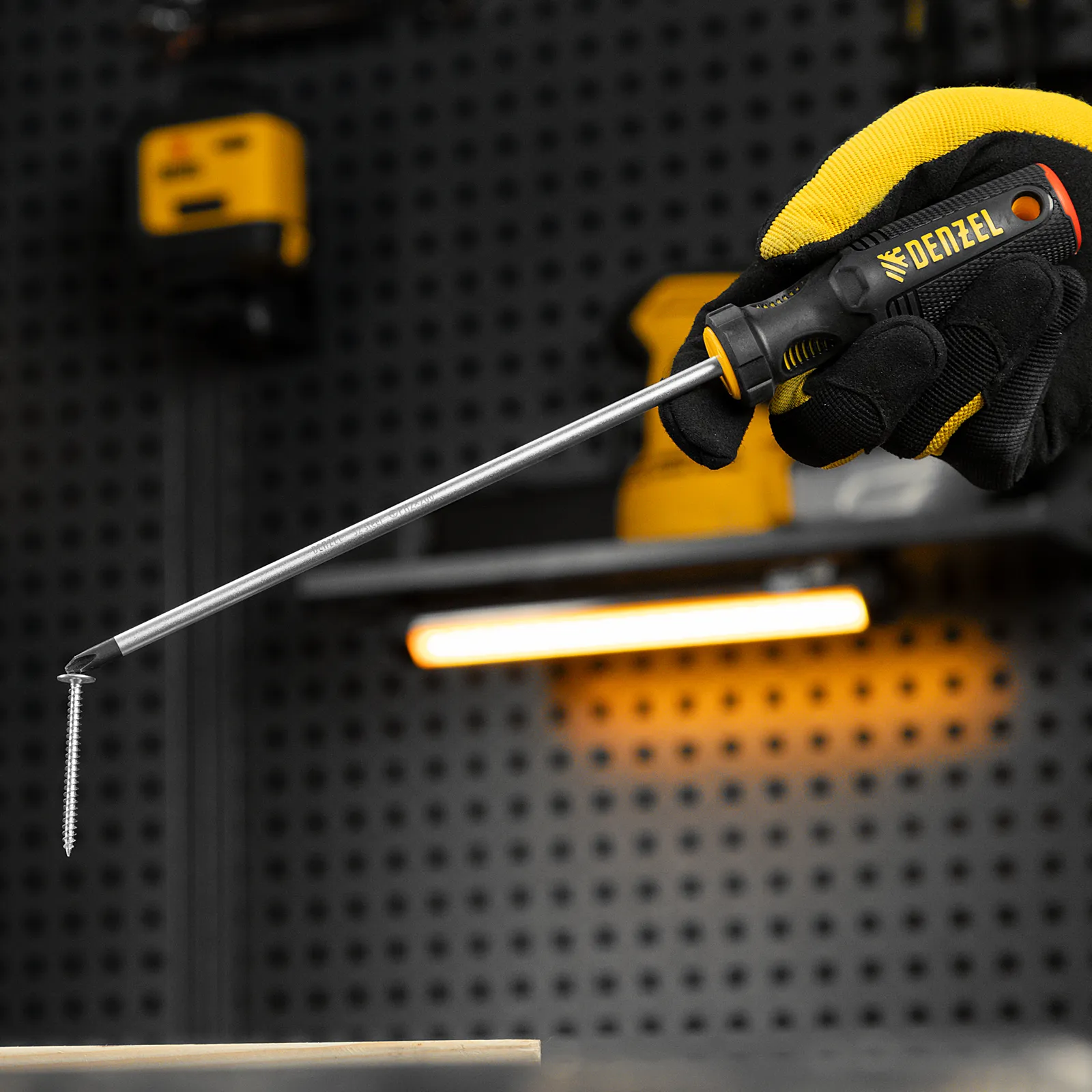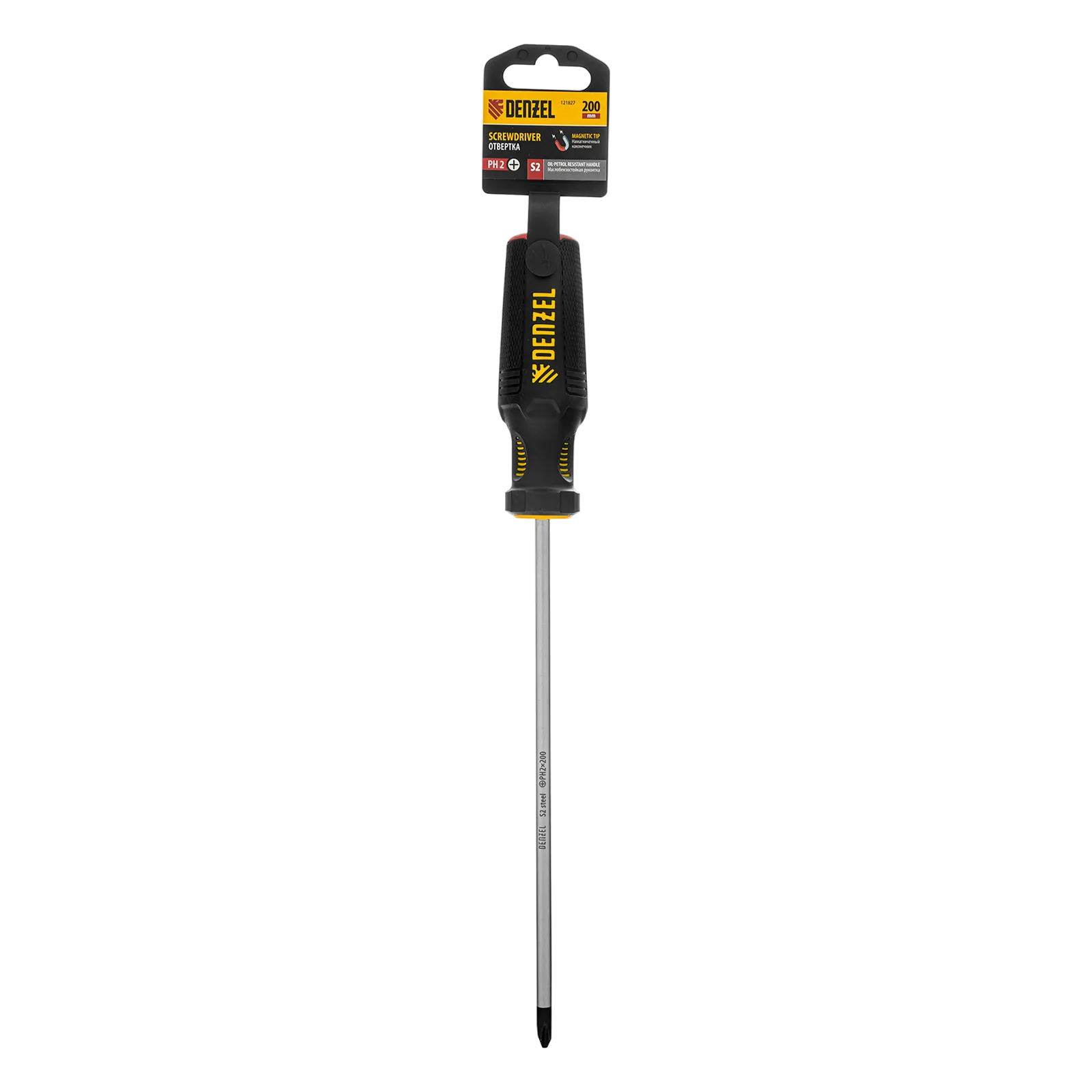 Отвертка Denzel 121827 с трехкомпонентной рукояткой, со стержнем из стали S2, длиной 200 мм, предназначена для закручивания и откручивания резьбового крепежа типа PH2. Высокоточный намагниченный шлиц избавляет мастера от необходимости придерживать винт или саморез рукой. Отвертка рекомендована для профессионального использования.