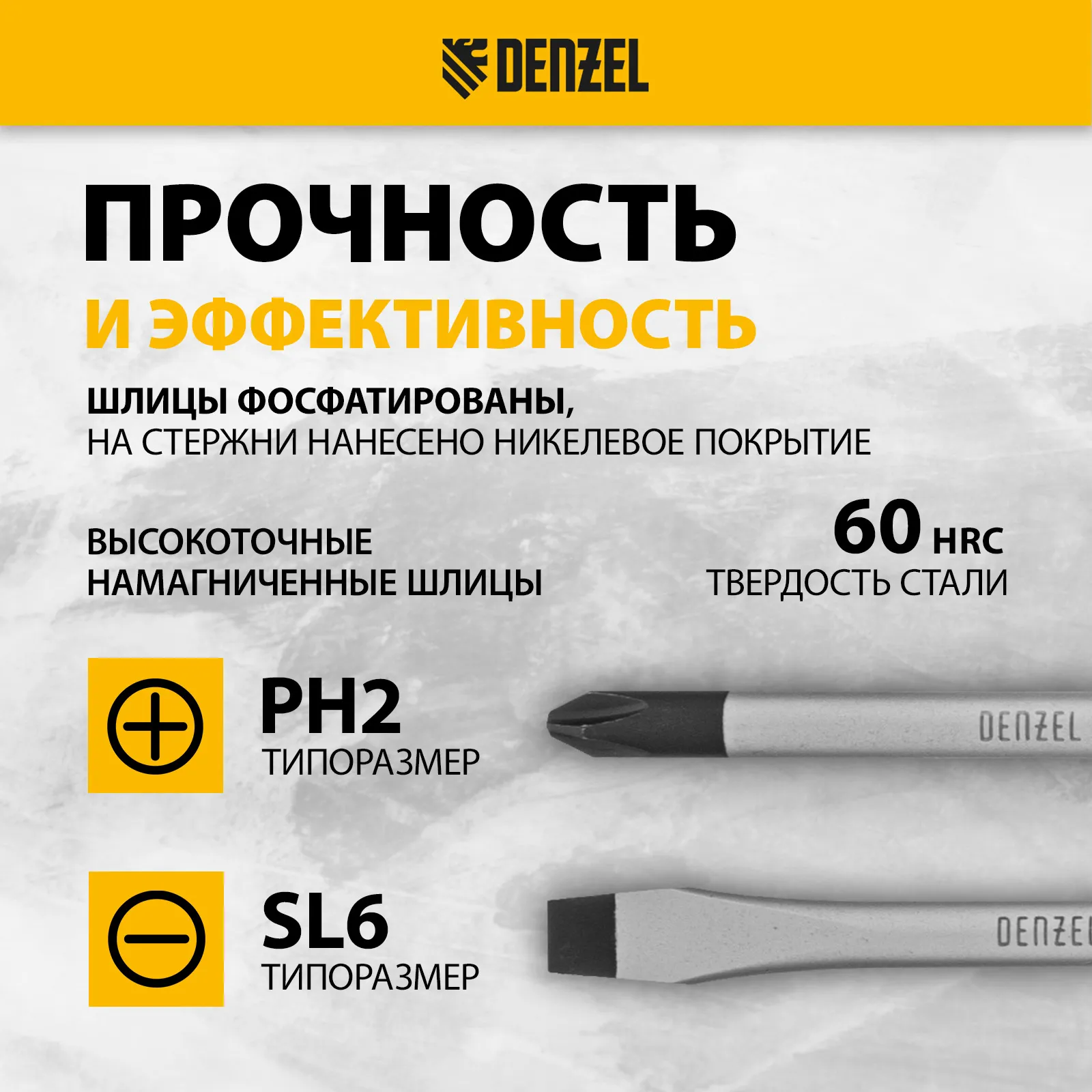 - Износостойкость и защита от коррозии — шлицы фосфатированы, на стержни нанесено никелевое покрытие.