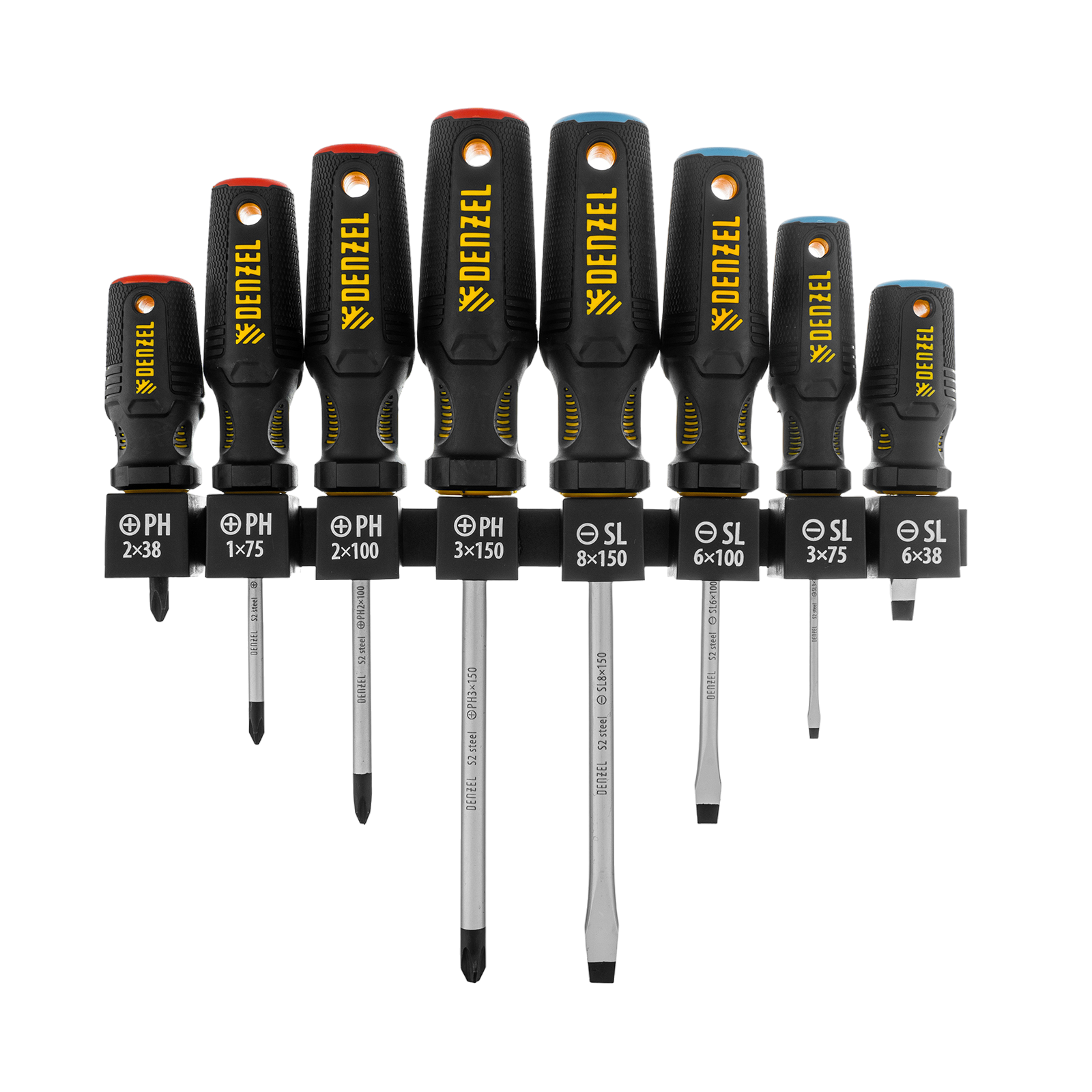 Отвертки SL3x75, SL6x100, SL6x38, SL8x150, PH1x75, PH2x38, PH2x100, PH3x150 - 8 шт