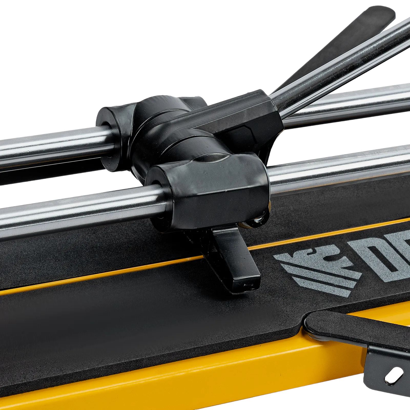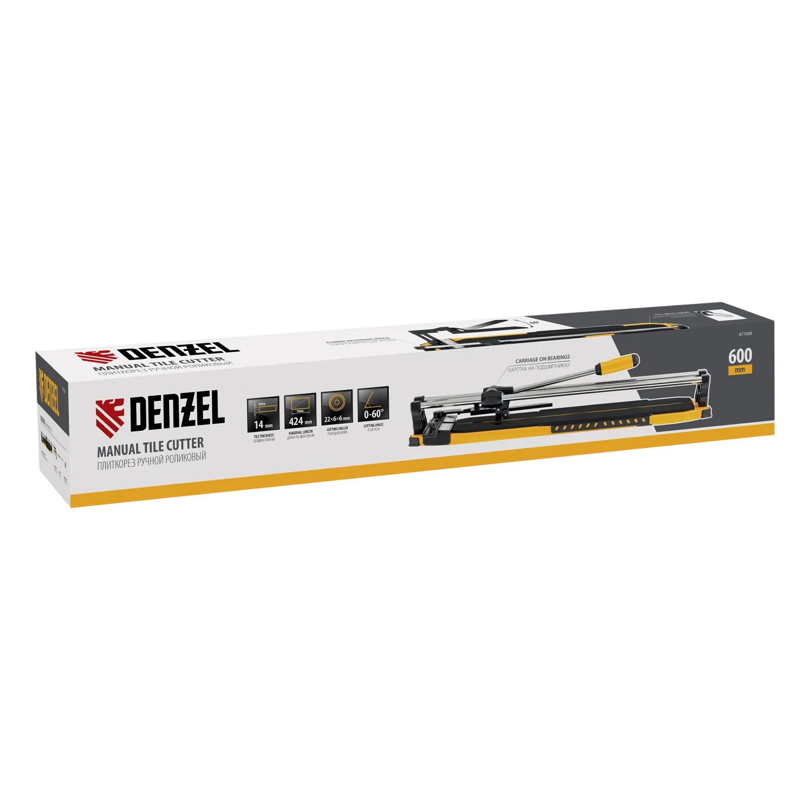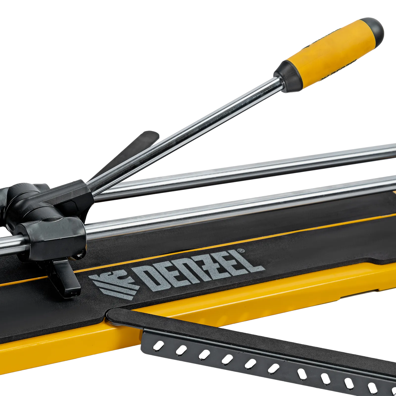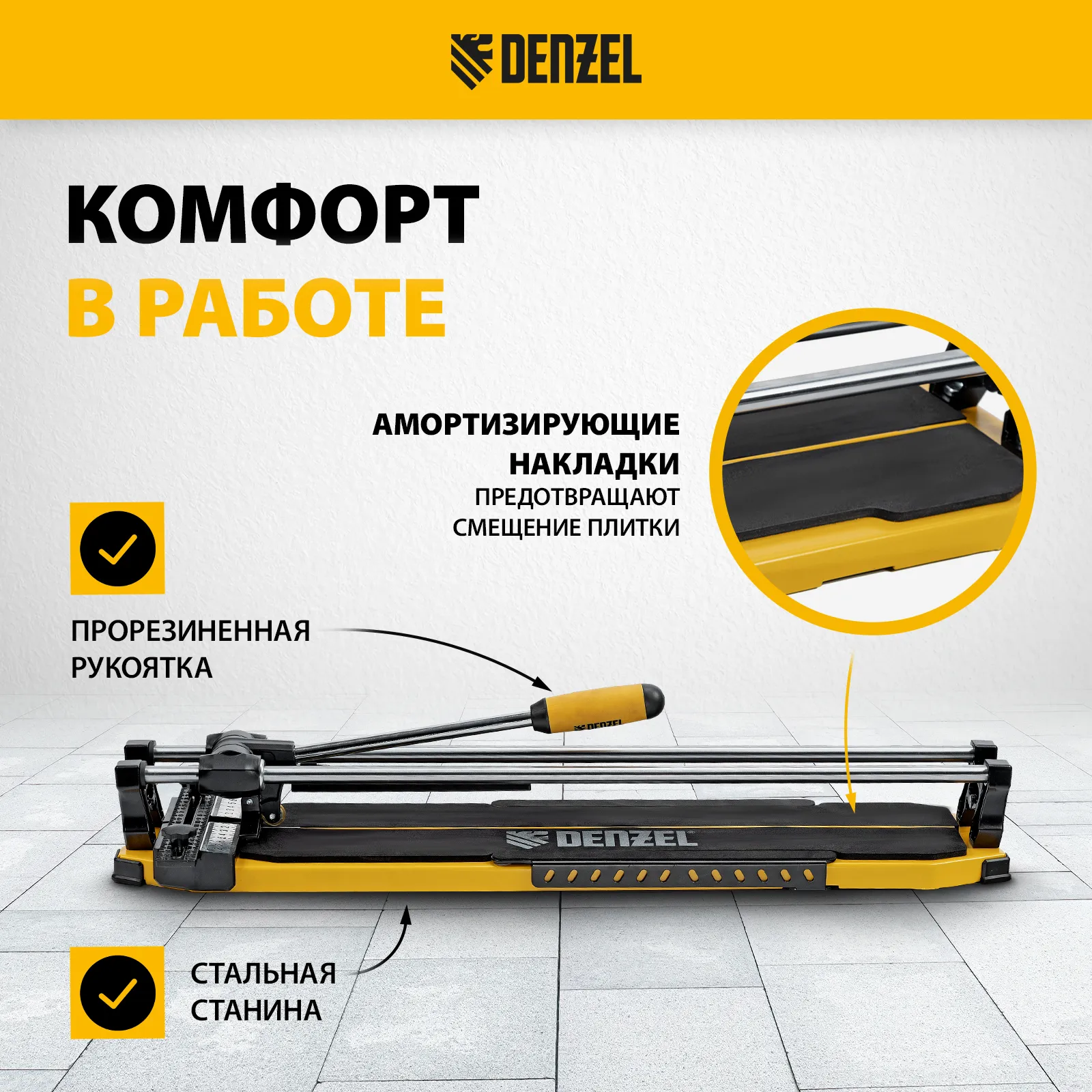 Ручной плиткорез Denzel 877008 с цельнометаллическими направляющими и стальной станиной, с кареткой на подшипниках и рукояткой-пеналом, предназначен для прямой и диагональной резки керамической плитки и керамогранита длиной до 600 мм и толщиной до 14 мм. Раздвижные упоры упрощают работу с плиткой большого размера. Инструмент используется для проведения отделочных работ.