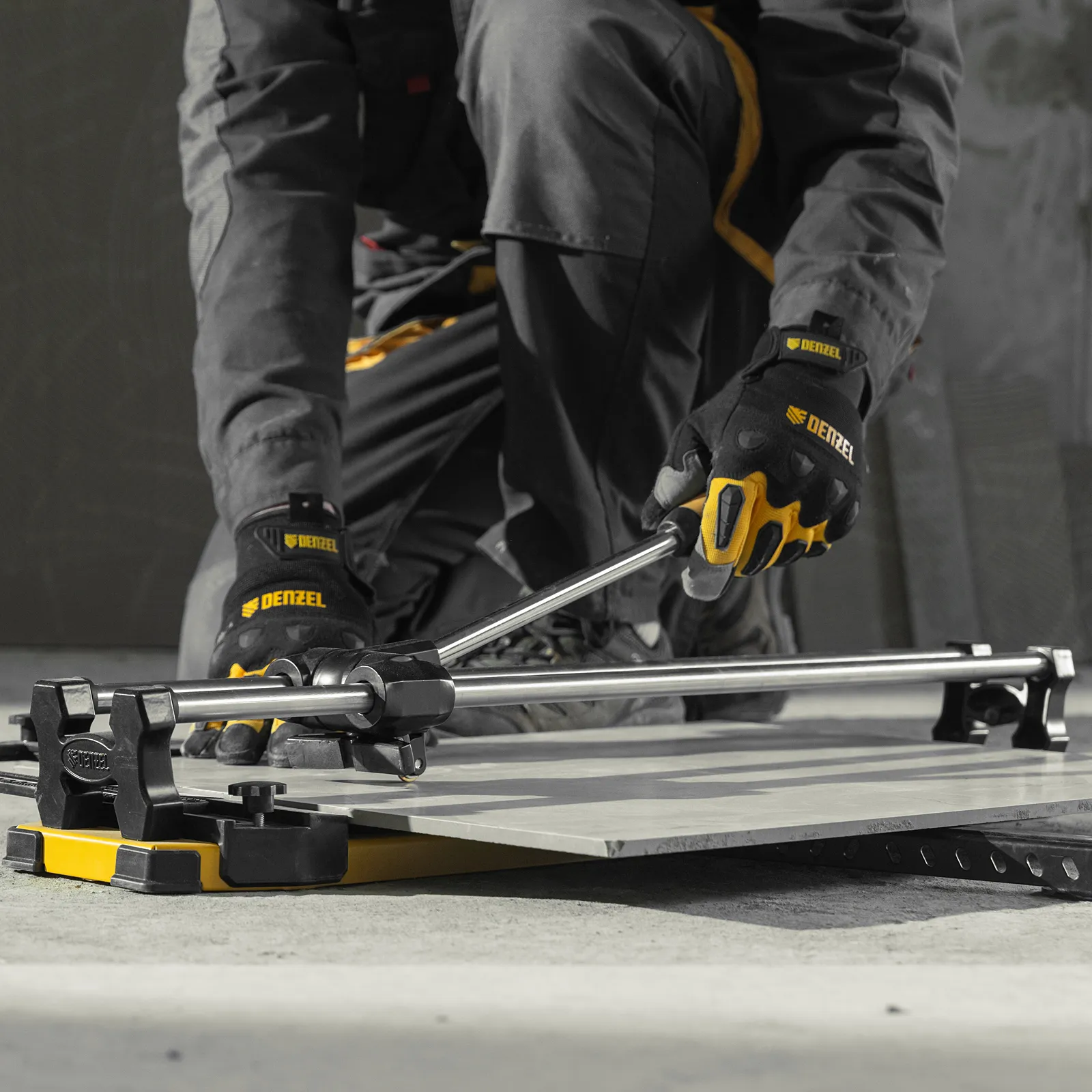 - Удобная работа — благодаря противоскользящим накладкам плиткорез не смещается даже на гладких поверхностях.